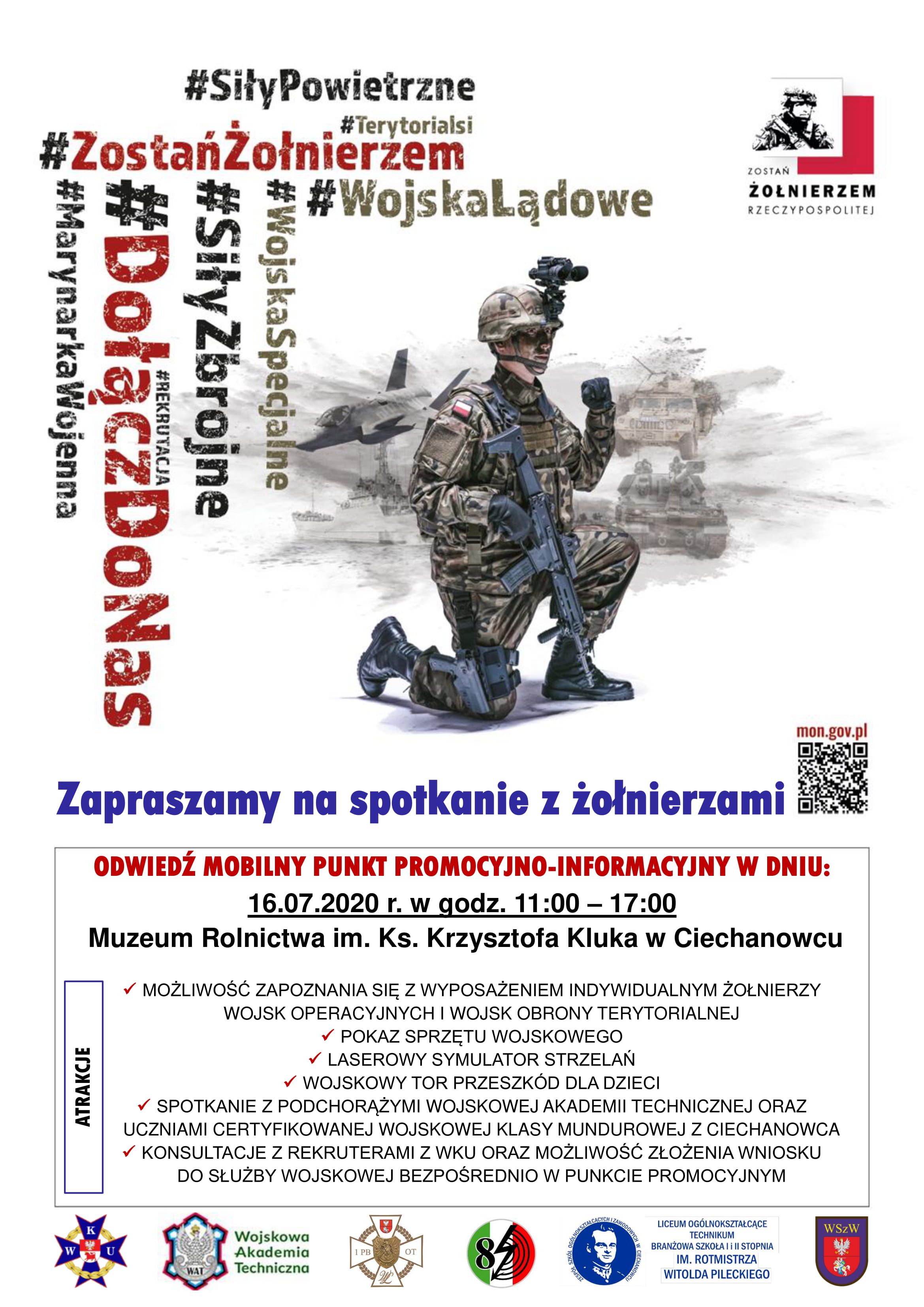 Zaproszenie na spotkanie z żołnierzami - mobilny punkt promocyjno-informacyjny w Muzeum Rolnictwa w Ciechanowcu