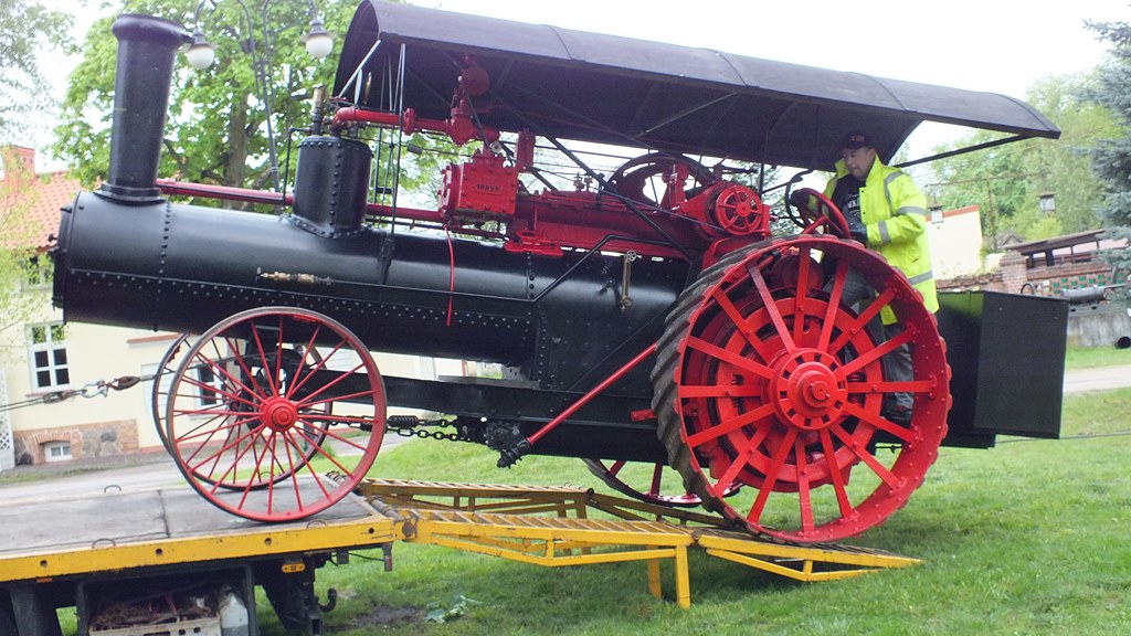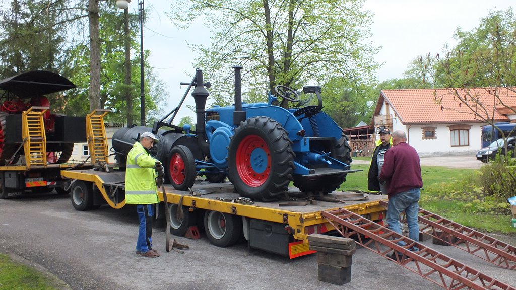 11 maja br. - w poniedziałek - przyjechały do Muzeum Rolnictwa w Ciechanowcu dwa bardzo cenne eksponaty - jedyna w Polsce samobieżna lokomobila parowa Frick Eclipse oraz wyjątkowy ciągnik Lanz Bulldog HR8.