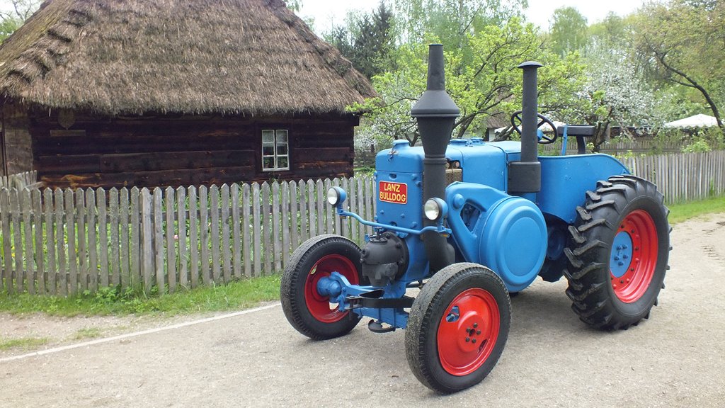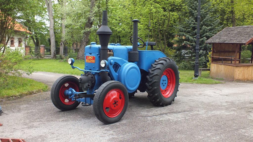 Drugim eksponatem, niezwykle ważnym dla rozwoju polskiej myśli technicznej, jest ciągnik Lanz Bulldog HR8 z 1940 r. Podkreślić należy, że po II wojnie światowej właśnie ten model ciągnika Lanz posłużył polskim konstruktorom z Zakładów Mechanicznych "Ursus" w Ursusie do budowy pierwszego, polskiego ciągnika Ursus C-45, którego wstępną produkcję uruchomiono w marcu 1947 r. Ciągnik Lanz Bulldog HR8 został wyprodukowany w niemieckiej firmie "Heinrich Lanz AG" w Mannheim. Wyposażony jest w leżący, dwusuwowy silnik średnioprężny o pojemności 10,3 l i mocy aż 45 KM. Jego silnik współpracuje z 8-stopniową skrzynią biegów. Posiada 6 prędkości do przodu i 2 do tyłu. Ciągnik może rozwinąć prędkość do 17 km/h. Produkcja tego modelu trwała w Niemczech w latach 1935 - 1944.