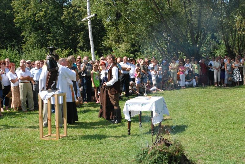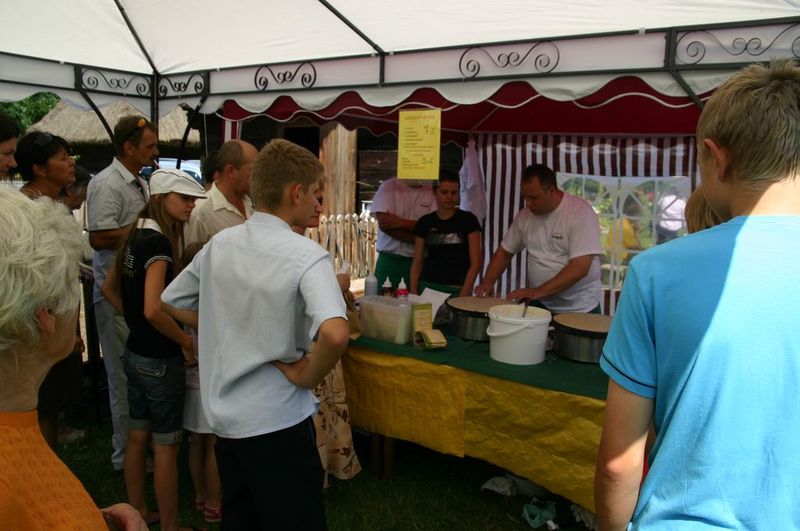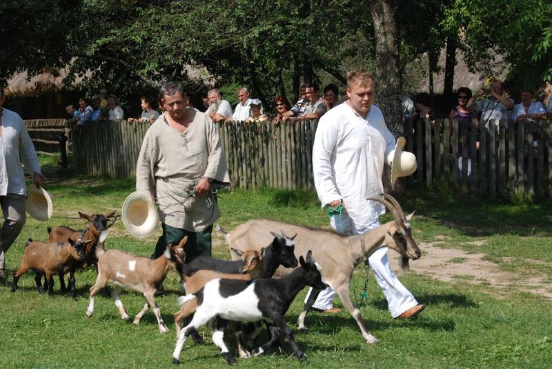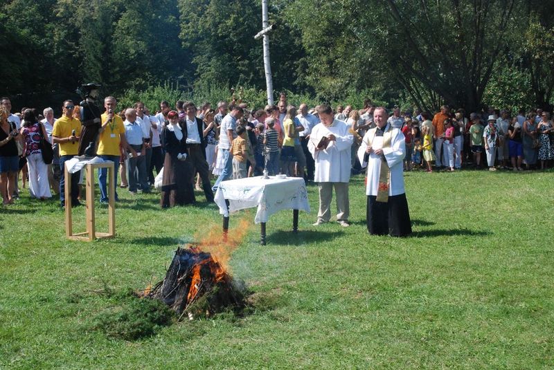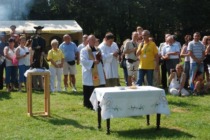 Obok stoisk z jadłem regionalnym na terenie skansenu na wygonie przy studni odbył się pokaz Święcenia Zwierząt. Modlitwę odmówił i dokonał pokropienia zwierząt przechodzących w dymie z płonącego ogniska Proboszcz Parafii pw. Matki Bożej z Fatimy ks. Grzegorz Śniadach.