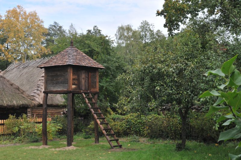 Wymarzonym miejscem w skansenie do posadowienia rekonstruowanego obiektu był maleńki sadek obok szlacheckiego dworku z 1840 roku, który odpowiada okresowi opisywanego obiektu przez Z. Glogera.
