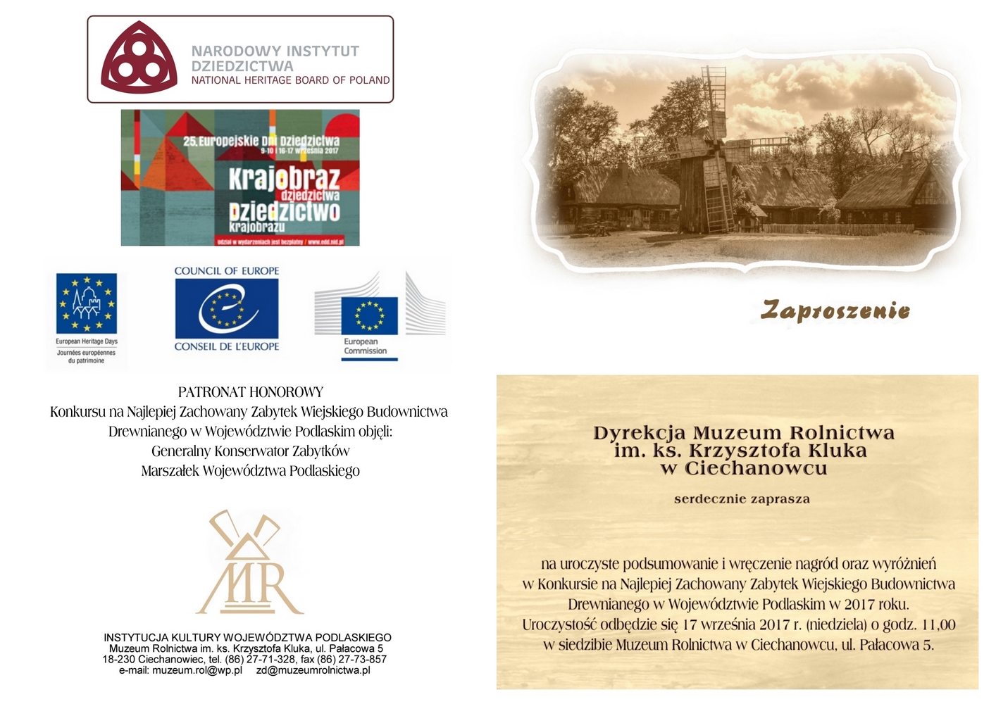 Podsumowanie Konkursu na Najlepiej Zachowany Zabytek Wiejskiego Budownictwa Drewnianego w Woj. Podlaskim w 2017 r.