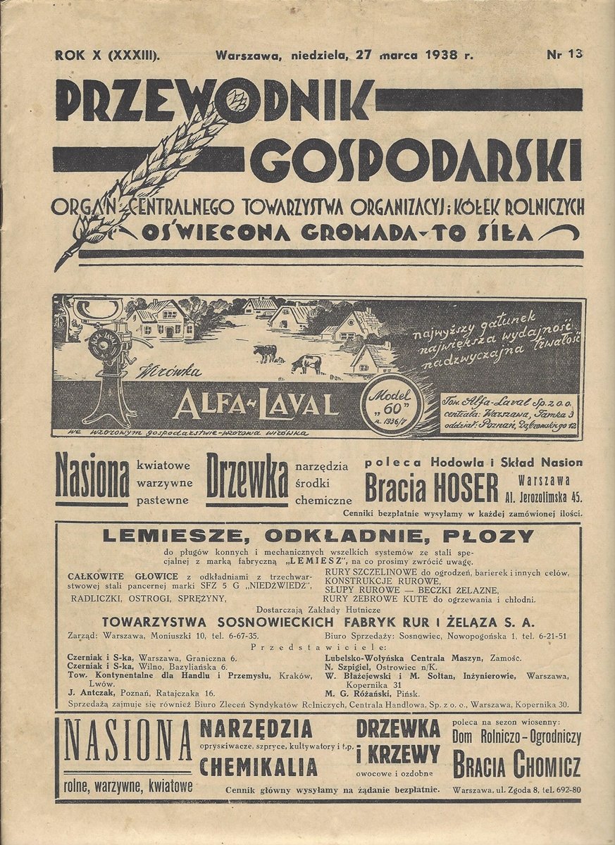 Przewodnik gospodarski 27.03.1938 Nr 13 // zbiory archiwalne Muzeum Rolnictwa w Ciechanowcu