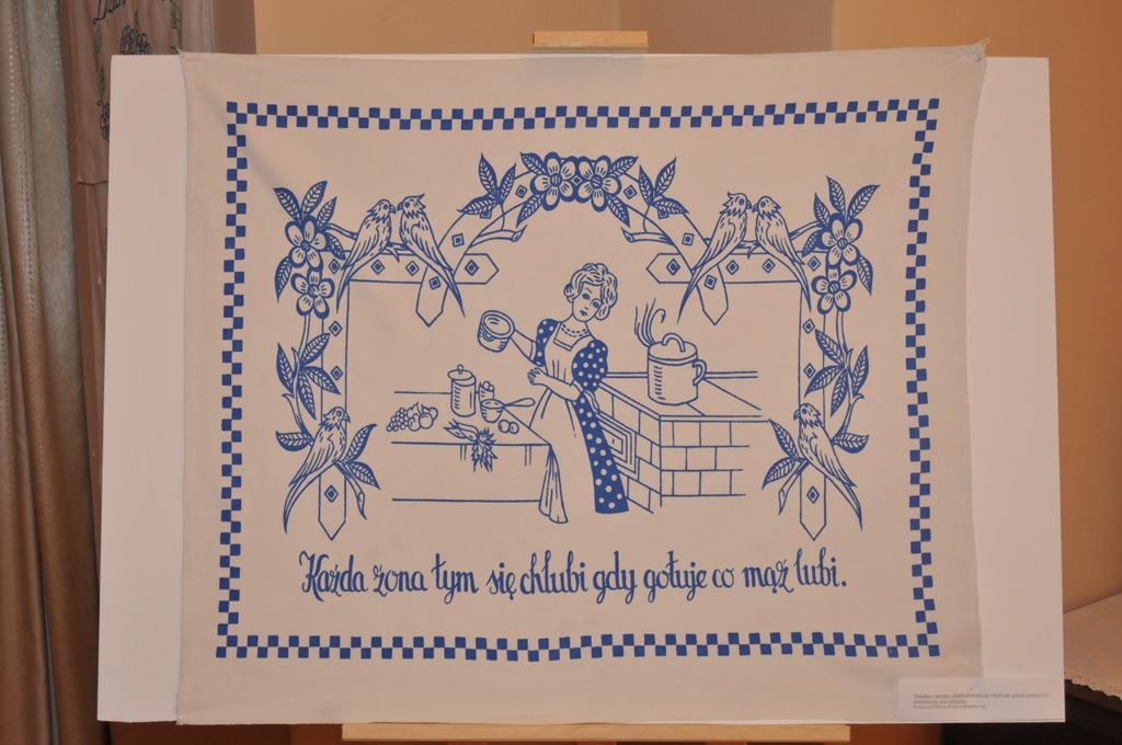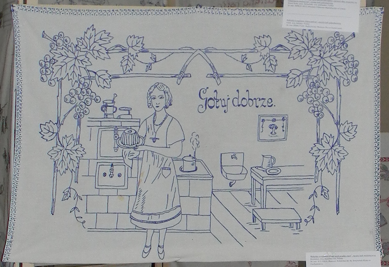Kobieta przedstawiana była na makatkach zwykle jako dobra gospodyni, kucharka, żona i matka, dbająca o ład, porządek i czystość, np. Dobra gospodyni, dom wesołym czyni; Gospodyni, która o porządek i czystość dba, wszystko na miejscu ma!; Co ja ugotuję, każdemu smakuje.