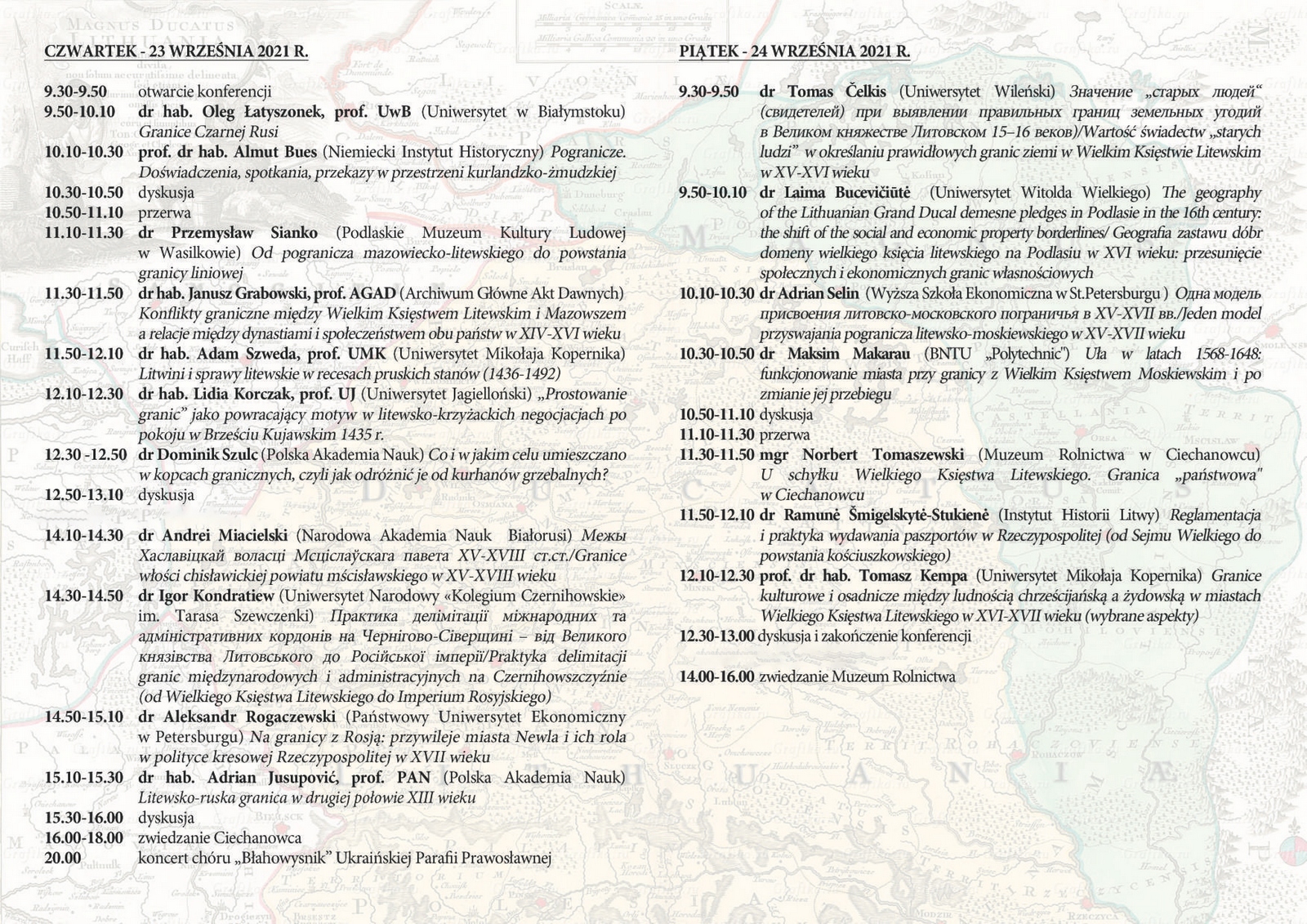 Serdecznie zapraszamy do zdalnego udziału w konferencji "Realne i wyobrażone granice i rubieże Wielkiego Księstwa Litewskiego", która odbędzie się w dniach 23-24 września 2021 roku w Muzeum Rolnictwa im. ks. Krzysztofa Kluka w Ciechanowcu. Zalecamy zainstalowanie aplikacji Microsoft Teams. Aby dołączyć do spotkania należy kliknąć w poniższe łącze -> KONFERENCJA ONLINE