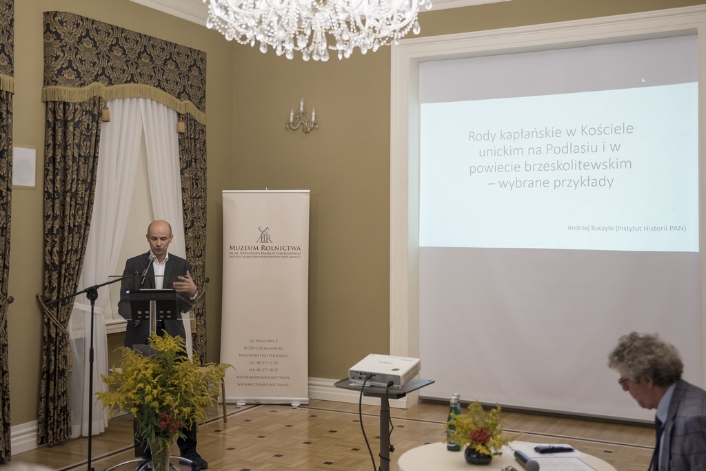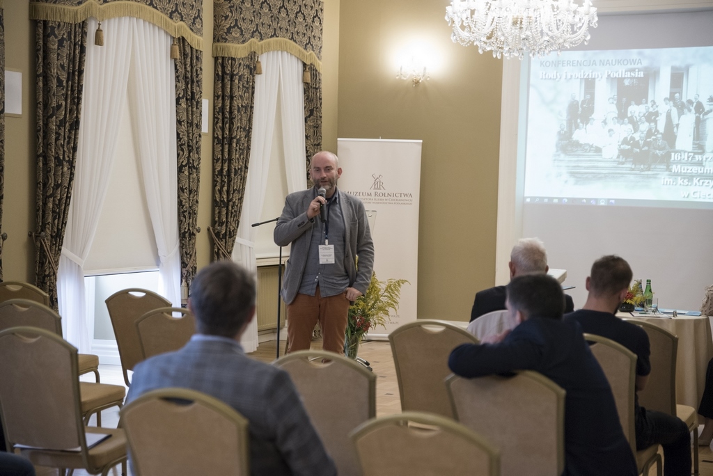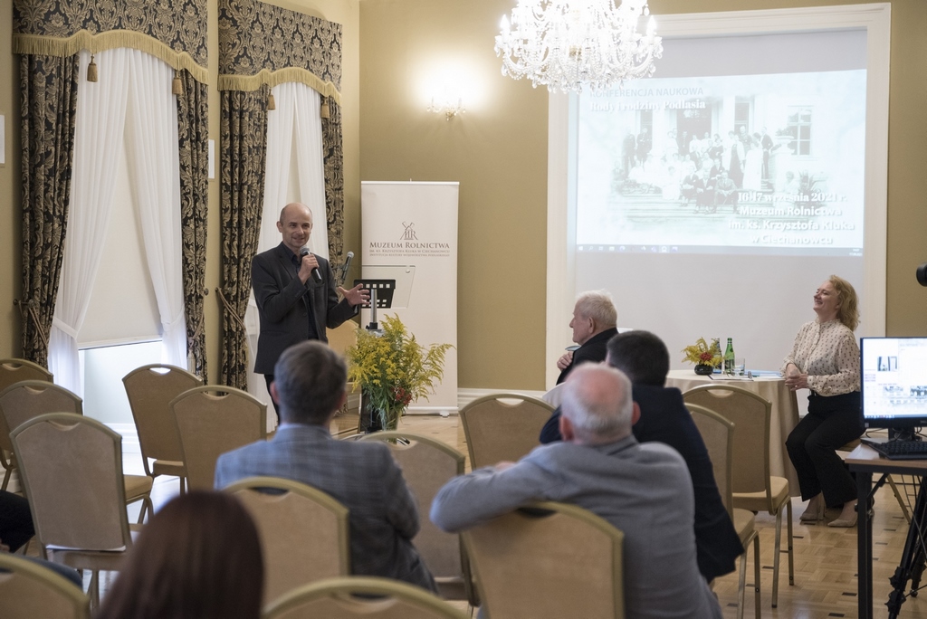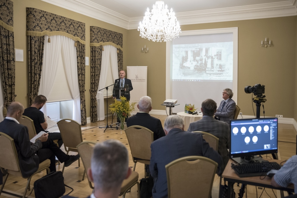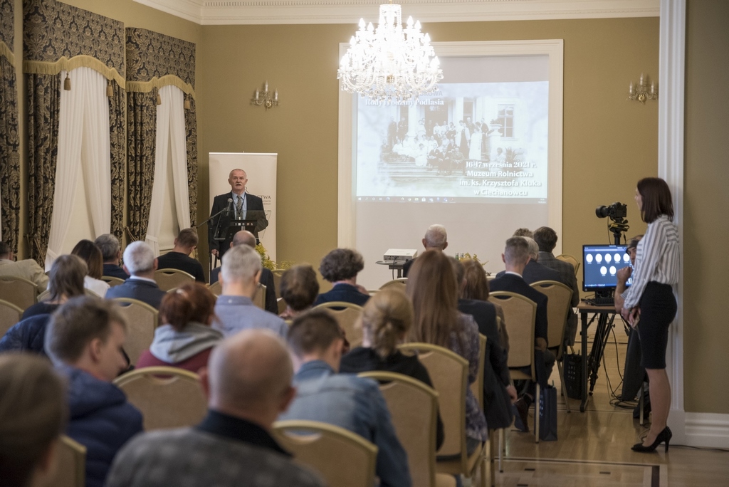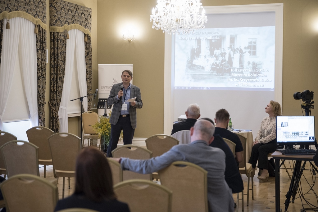 Konferencja pn. ‘’Rody i rodziny Podlasia’’, odbyła się w Muzeum Rolnictwa w Ciechanowcu, w dniach 16-17 września 2021 roku, podjęła temat trochę zaniedbany, nieco zapomniany, przez badaczy i dlatego niezwykle ciekawy. W ciągu 2 dni 18 badaczy przedstawiło swoje referaty, które z powodów praktycznych podzielono na cztery panele tematyczne. Nie było, wbrew zastrzeżeniu zawartym w tytule konferencji ograniczeń terytorialnych, gdyż emigracje Podlasian ‘’za chlebem’’, rekrutacja do obu armii, deportacje i inne przypadki losowe, powodowały oddalenie od rodzinnej ziemi. To podejście umożliwiało obszerne omówienie różnych aspektów związanych z rodami i rodzinami podlaskimi. Najważniejsza była prezentacja wielkich rodów, zajmujących dominującą rolę w życiu Podlasia. Zarówno gospodarczą, jak też społeczno-polityczną, mającą wpływ na kierunki rozwoju tej ziemi. Ale również mniejsze rodziny, czasem przybyłe na Podlasie z innych ziem Rzeczypospolitej, czasem przedwcześnie zgasłe, odcisnęły swoje piętno na życiu regionu. Temu zadaniu służyły referaty poświęcone sferze prywatnej oraz polityce i ekonomii ( zarówno na poziomie wielkich majątków, jak też domowych gospodarstw) przybliżyły słuchaczom wiedzę na tematy niezbyt znane i nieczęsto prezentowane. Nad przebiegiem konferencji czuwali Panowie Profesorowie: Cezary Kuklo, Adam Czesław Dobroński, Jan Tęgowski i Piotr Guzowski. Wygłoszone referaty ukażą się w przygotowanym natychmiast po konferencji wydawnictwie okolicznościowym. Będzie więc okazja (dla osób które nie były na konferencji), do zapoznania się z bardzo ciekawym i wartościowym materiałem.