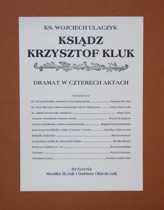 Innym wydarzeniem teatralnym w 2009 r. była inscenizacja dramatu w czterech aktach pt. „Ksiądz Krzysztof Kluk” autorstwa ks. Wojciecha Ulaczyka, w wykonaniu uczniów Zespołu Szkół Ogólnokształcących i Zawodowych w Ciechanowcu, w reżyserii nauczycieli Moniki Ilczuk i Dariusza Okieńczuka. Spektakl z wielkim zaangażowaniem i pasją był wystawiony podczas sesji naukowej „Ks. Jan Krzysztof Kluk (1739-1796). Życie i dorobek naukowy”, zorganizowanej w 270. rocznicę urodzin patrona Muzeum Rolnictwa.