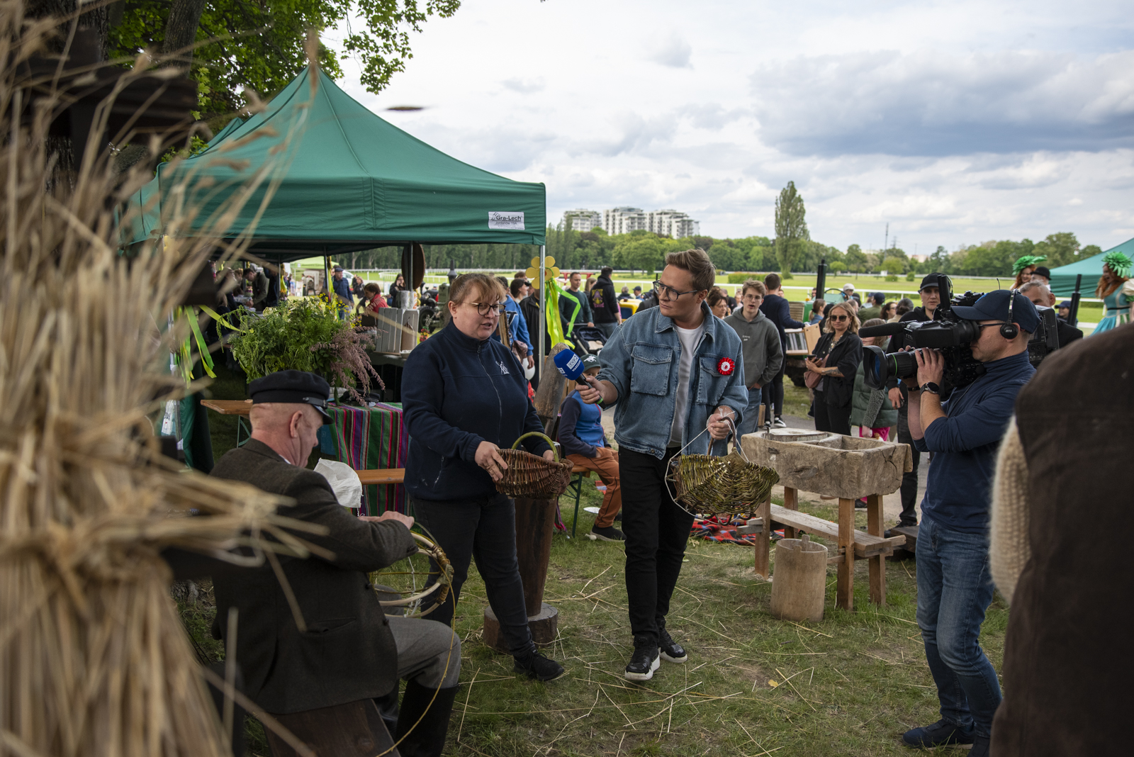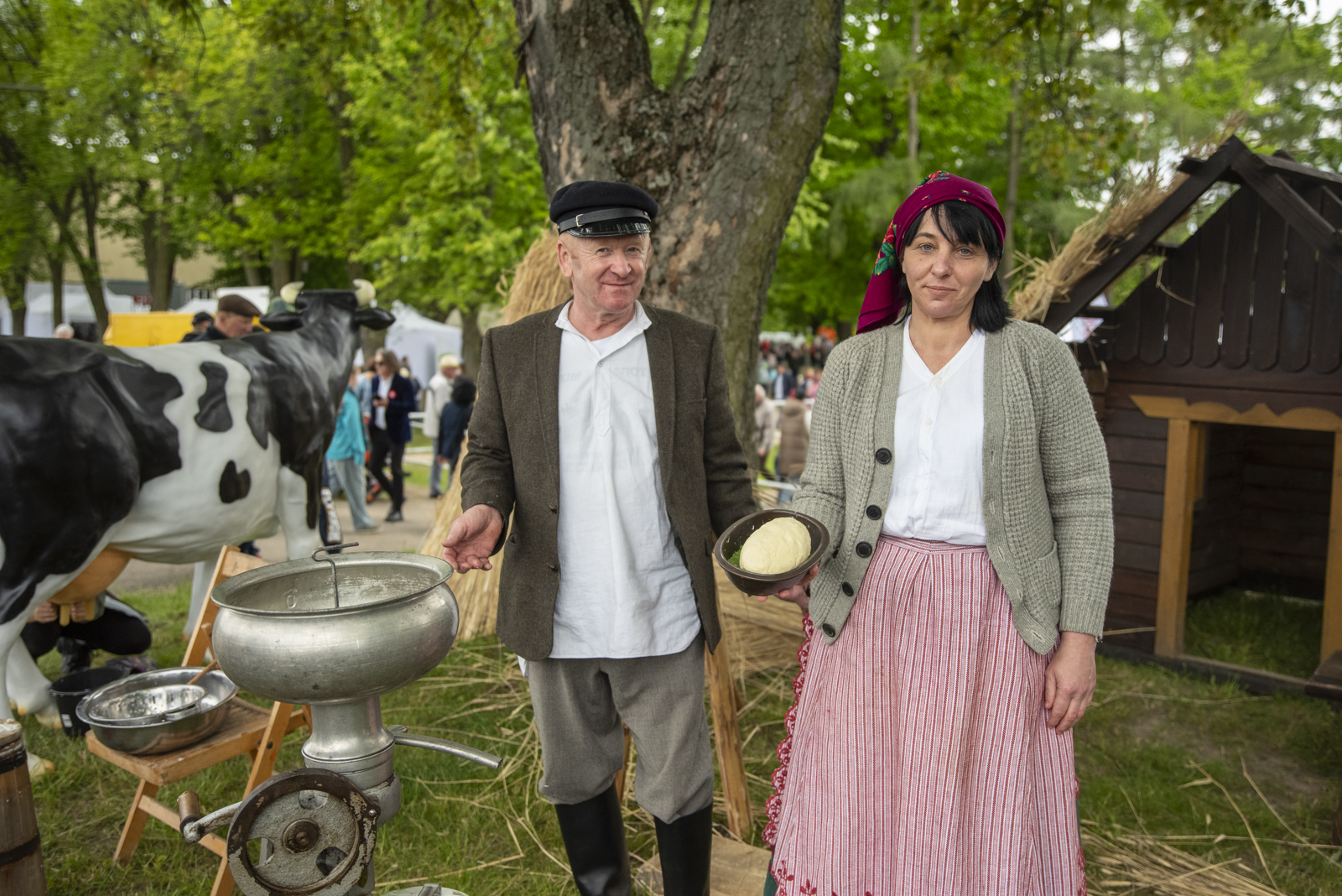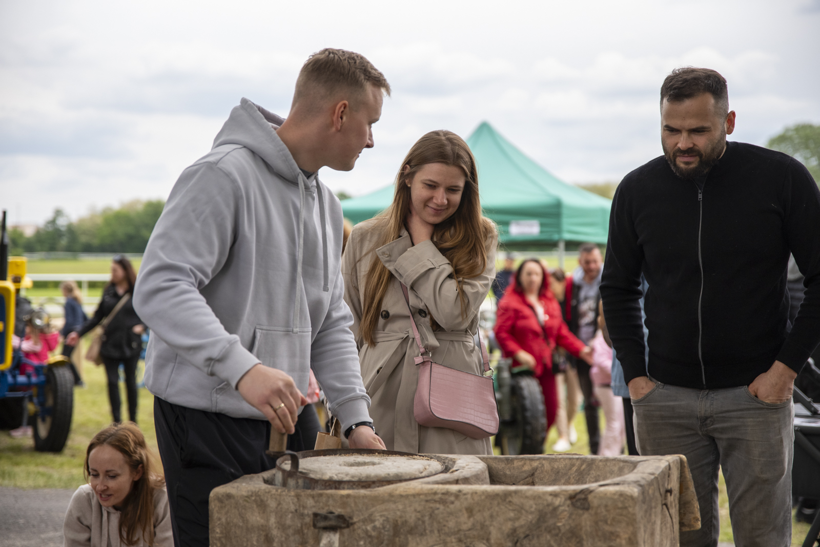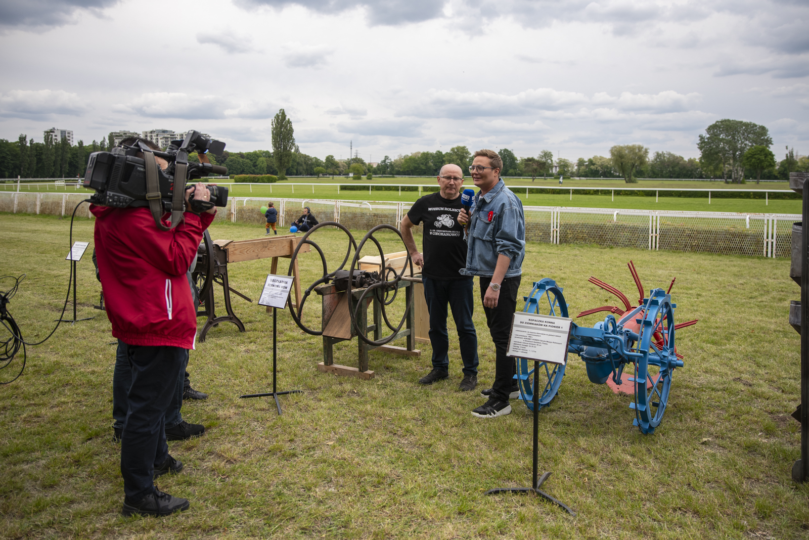24 maja 2025 r. nasze muzeum na zaproszenie Ministerstwa Rolnictwa i Rozwoju Wsi uczestniczyło w „Pikniku Poznaj Dobrą Żywność” organizowanym na Torze Wyścigów Konnych Służewiec w Warszawie. Nasze stoisko cieszyło się bardzo dużym zainteresowaniem uczestników imprezy, a także mediów ogólnopolskich i lokalnych. Szczególny entuzjazm wśród dorosłych i dzieci wzbudziły przywiezione przez nas zabytkowe ciągniki w liczbie 9 szt. (polskie Ursusy, Porsche, Lanz), na których można było zrobić pamiątkowe zdjęcie, jak również zobaczyć je w ruchu. Przygotowane przez nas interaktywne stoiska etnograficzne (obróbka ziarna w żarnach na mąkę i w stępie na kaszę, tkanie gobelinu, składanie wiejskiej chaty, kręcenie snopków i słomianych warkoczy, wyplatanie koszyków, dojenie krowy, odwirowywanie śmietany i robienie masła, wyplatanie lin i sznurów, degustacja naszego piwa jałowcowego, ciechanowieckiego chleba i podlaskich wędlin) nie mogły opędzić się od zainteresowanych.