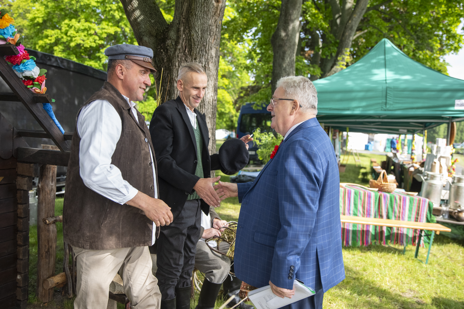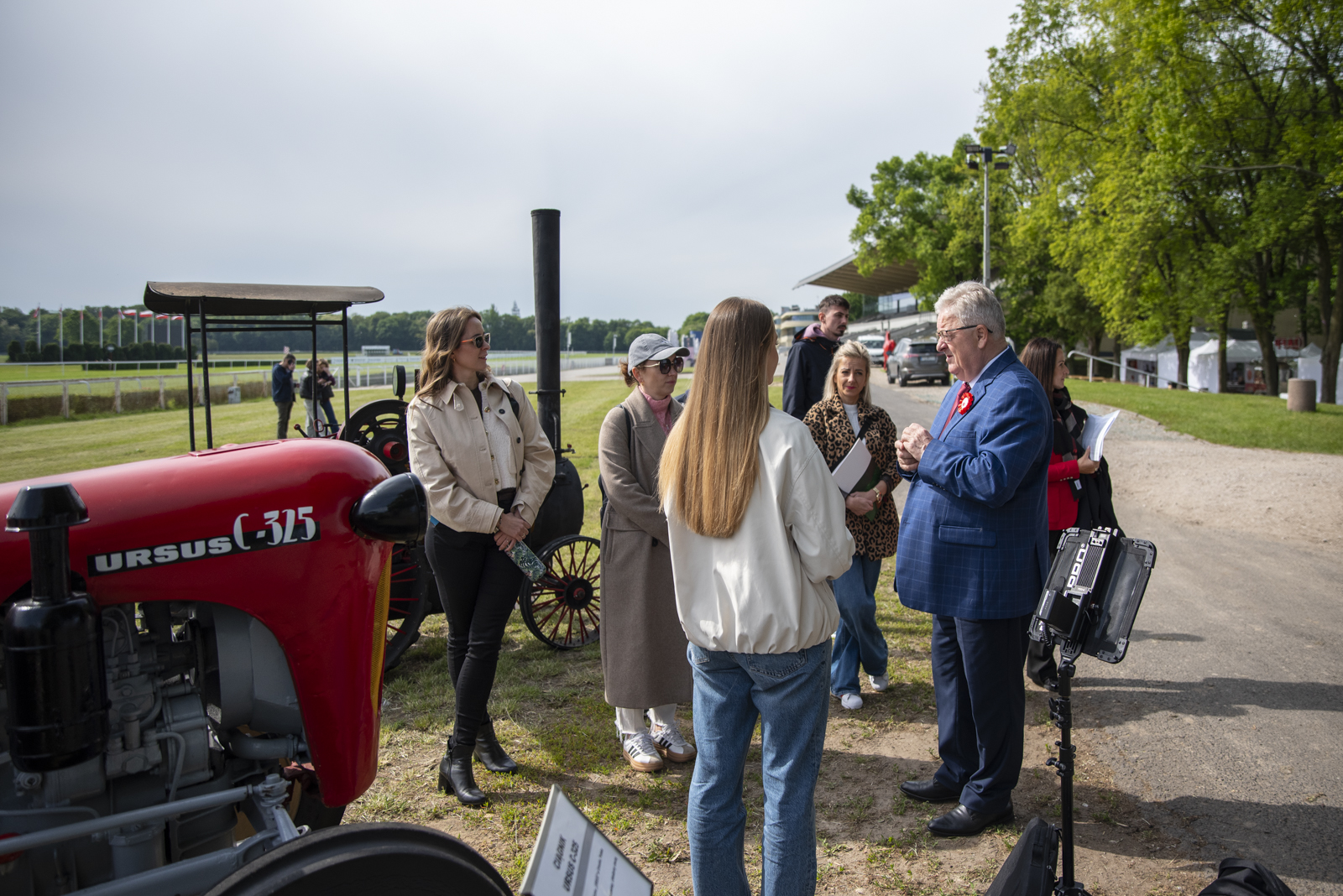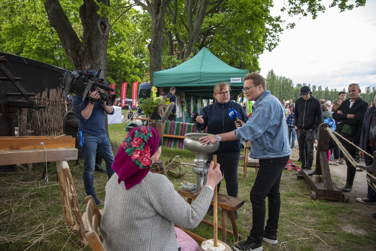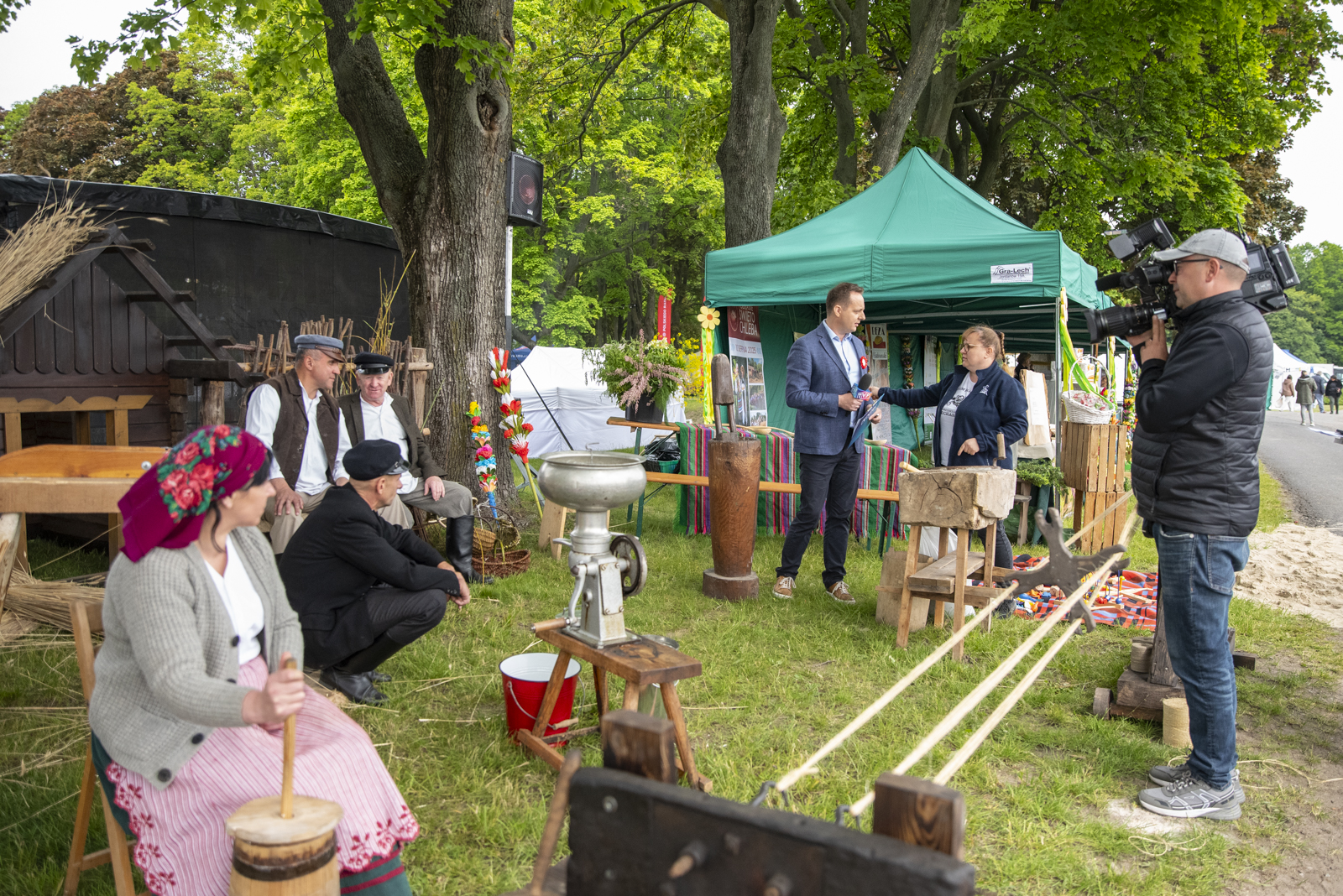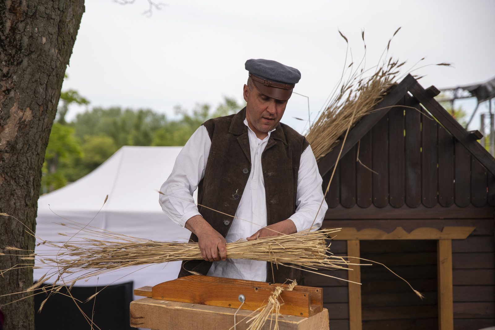24 maja 2025 r. nasze muzeum na zaproszenie Ministerstwa Rolnictwa i Rozwoju Wsi uczestniczyło w „Pikniku Poznaj Dobrą Żywność” organizowanym na Torze Wyścigów Konnych Służewiec w Warszawie. Nasze stoisko cieszyło się bardzo dużym zainteresowaniem uczestników imprezy, a także mediów ogólnopolskich i lokalnych. Szczególny entuzjazm wśród dorosłych i dzieci wzbudziły przywiezione przez nas zabytkowe ciągniki w liczbie 9 szt. (polskie Ursusy, Porsche, Lanz), na których można było zrobić pamiątkowe zdjęcie, jak również zobaczyć je w ruchu. Przygotowane przez nas interaktywne stoiska etnograficzne (obróbka ziarna w żarnach na mąkę i w stępie na kaszę, tkanie gobelinu, składanie wiejskiej chaty, kręcenie snopków i słomianych warkoczy, wyplatanie koszyków, dojenie krowy, odwirowywanie śmietany i robienie masła, wyplatanie lin i sznurów, degustacja naszego piwa jałowcowego, ciechanowieckiego chleba i podlaskich wędlin) nie mogły opędzić się od zainteresowanych.