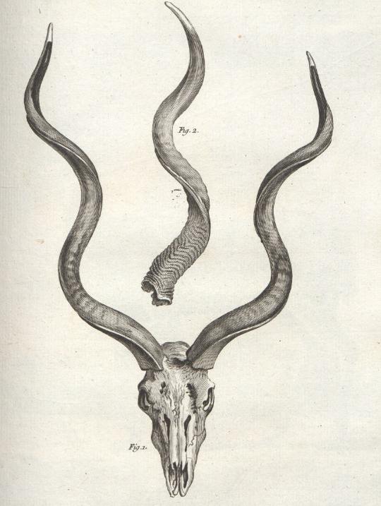 Ryc. 1 Grafika przedstawiająca wspomniane w liście R. Gralath rogi – ilustracja z Histoire naturelle, générale et particuliére, Paryż 1764, t. 12, tablica XXXIX