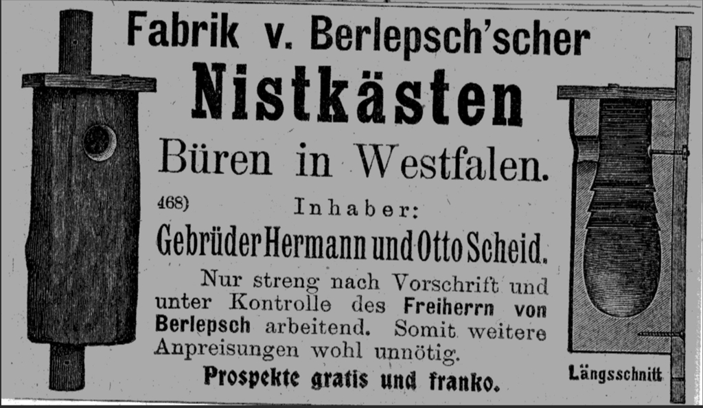 Fot. 9 Reklama prasowa sztucznych dziupli pomysłu Berlepscha.