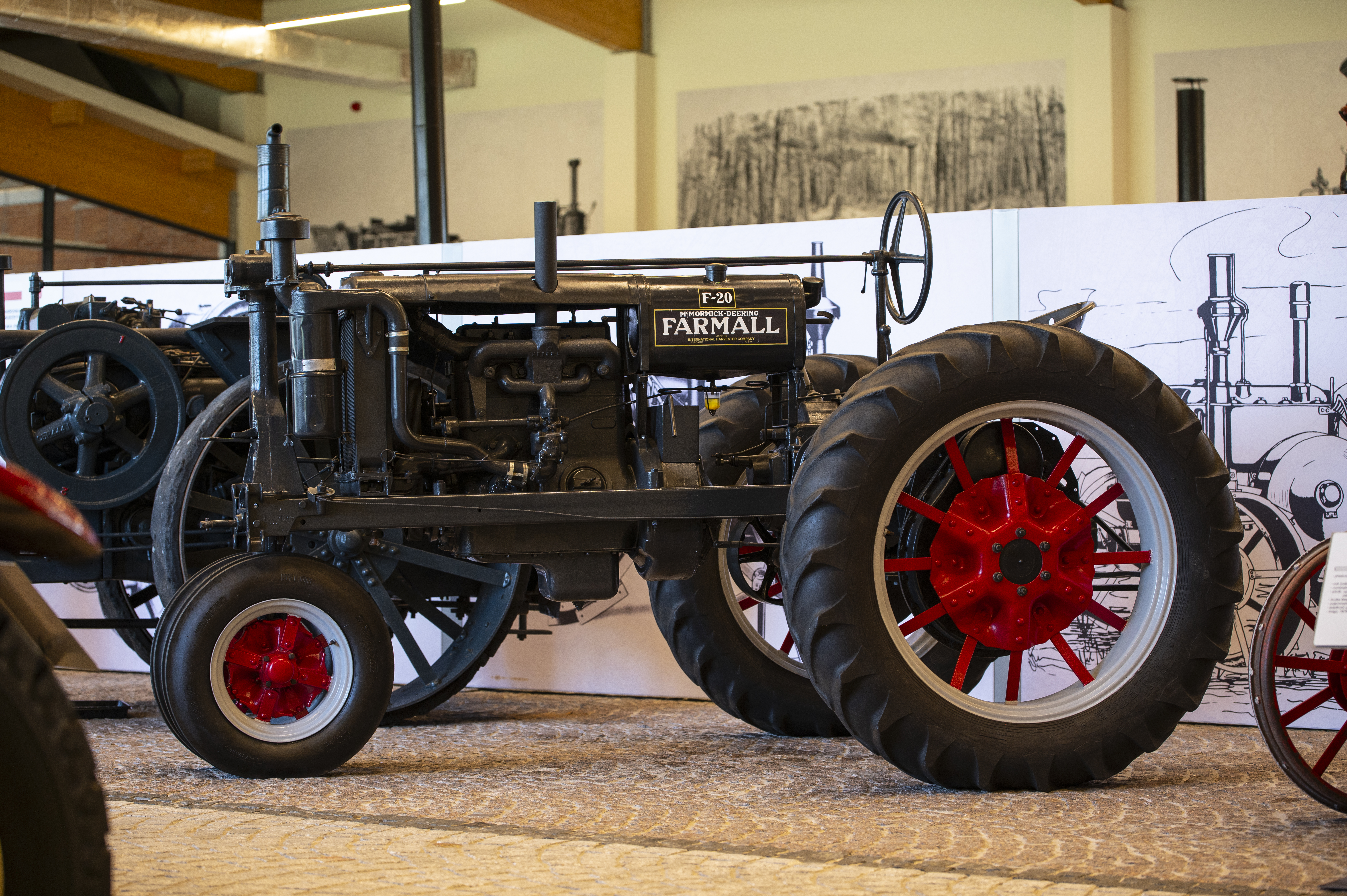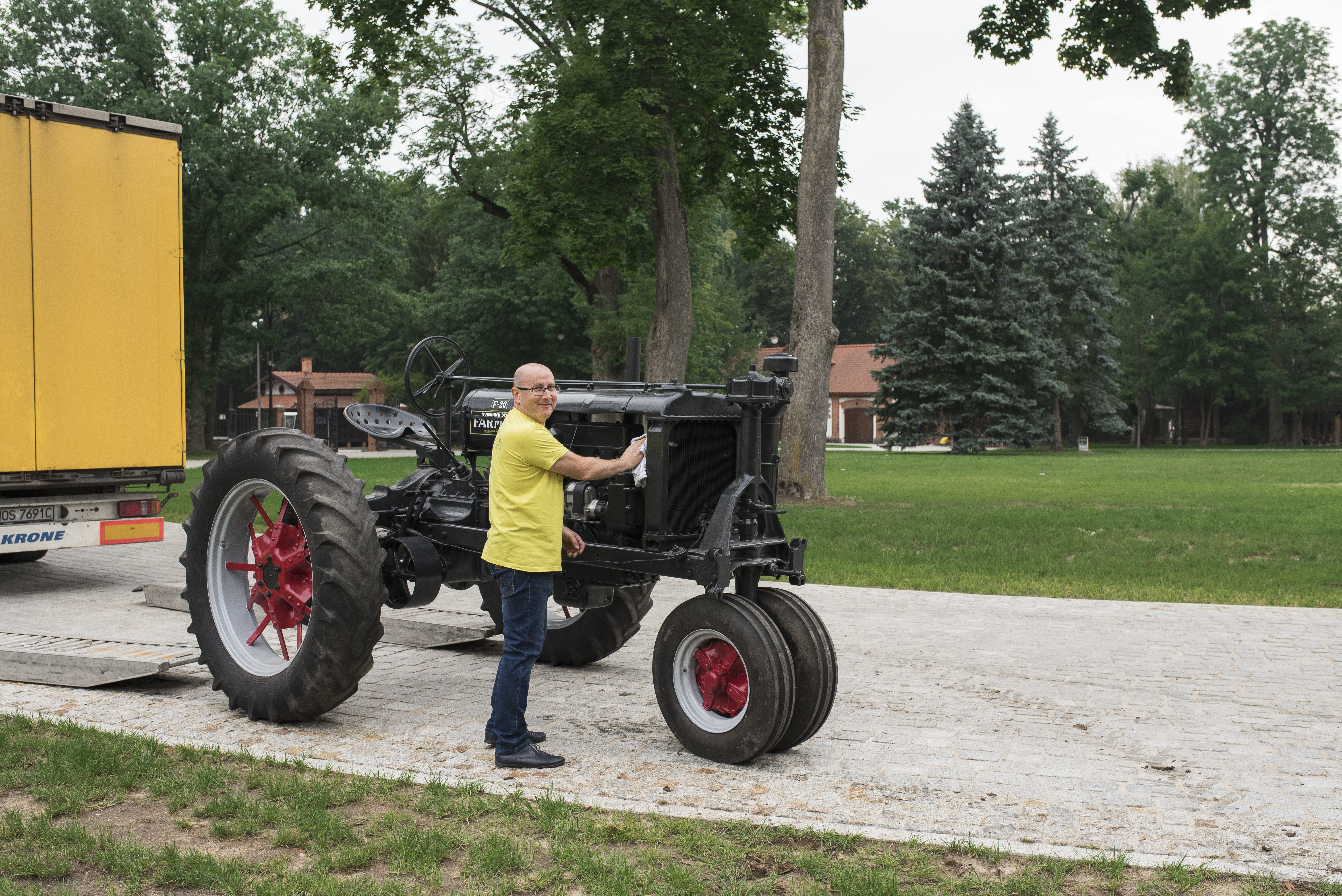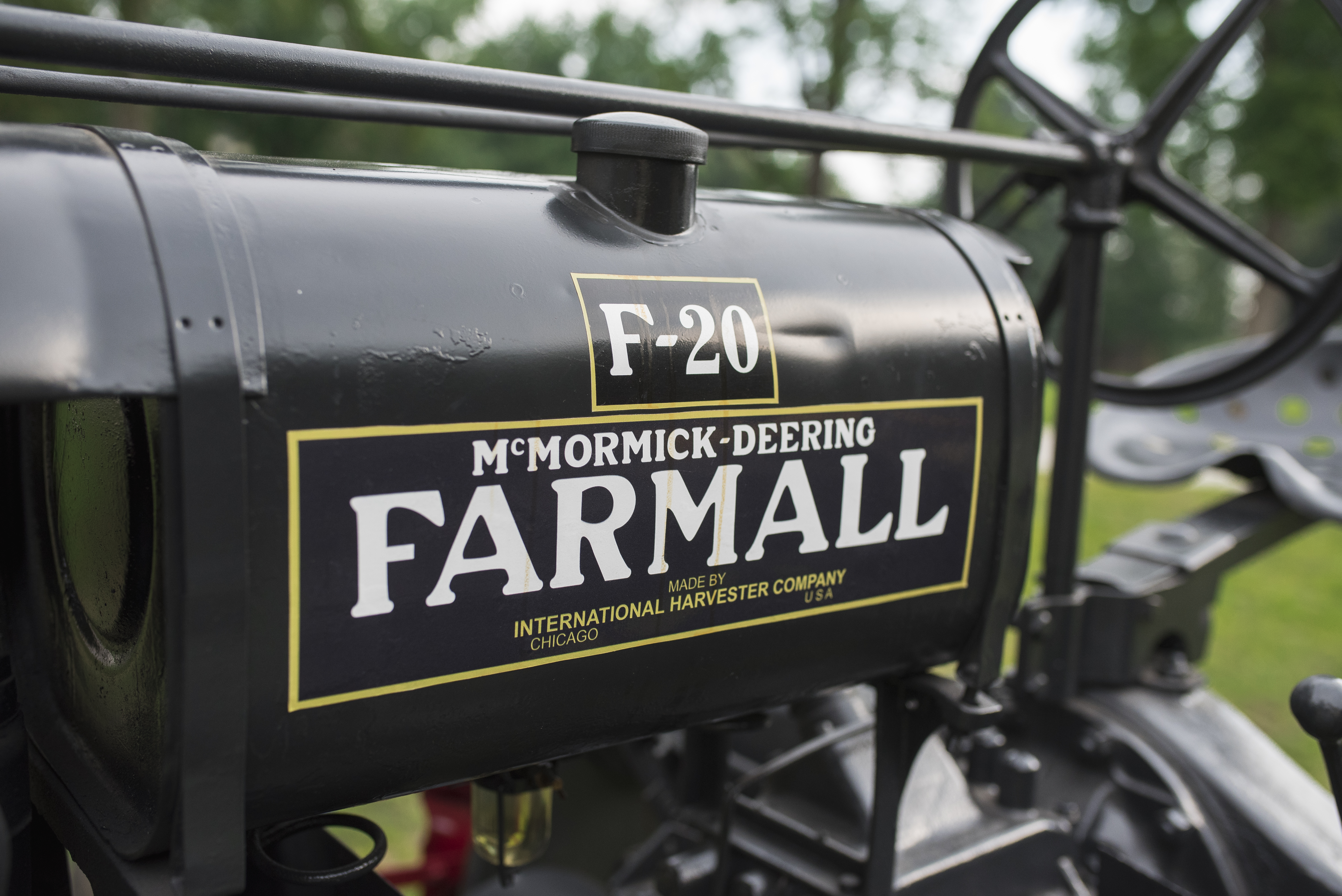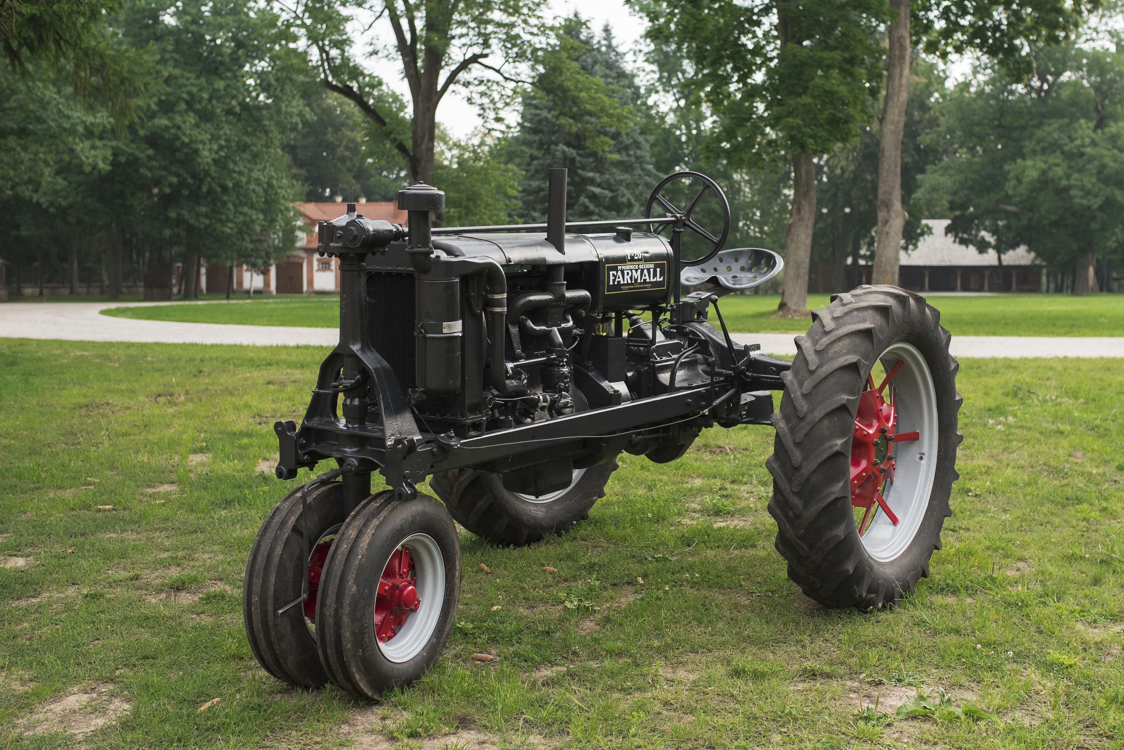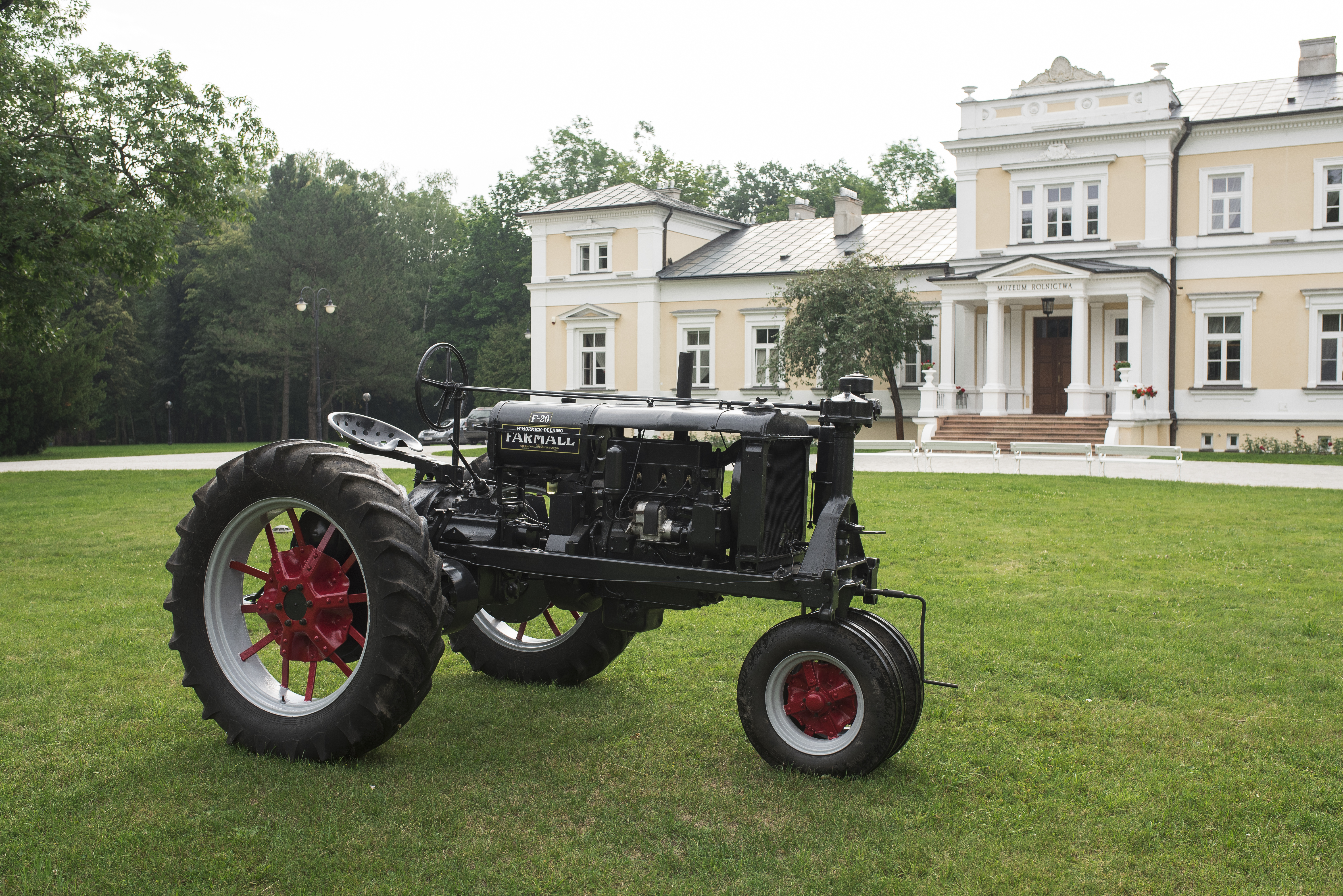 Dziś kolejny amerykański przedstawiciel z naszej kolekcji. Jest to ciągnik Farmall F 20 z 1936 r. wyprodukowany w firmie “International Harvester Company” (IHC) w Chicago. Udało się sprecyzować bardzo dokładną datę jego powstania. Jest to pierwszy tydzień kwietnia 1936 r. Ustalono ją na podstawie numeru seryjnego ciągnika i dostępnych danych o produktach firmy IHC. Model służył przede wszystkim do prac pielęgnacyjnych. Nasz egzemplarz ma 200 cm wysokości, 225 cm szerokości oraz 330 cm długości. Waży 1995 kg. Ciągnik posadowiony jest na ogumionych, szprychowych kołach. Posiada budowę ramową. Dwa przednie koła skrętne ustawione są jako bliźniacze. Wyposażony jest w 4-suwowy, pionowy, chłodzony cieczą, 4-cylindrowy silnik gaźnikowy o pojemności 3600 cm3, mocy 20 KM (14,7 kW) i maksymalnych obrotach 1350/min. Silnik dostosowany jest do spalania benzyny i nafty.