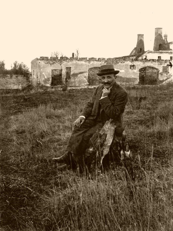 Prawdopodobnie Marian Bachórzewski na tle ruin ciechanowieckiego szpitala, fotografię wykonano w 1915 r. W zbiorach Muzeum Rolnictw im. ks. Krzysztofa Kluka w Ciechanowcu, sygn. III/4757.