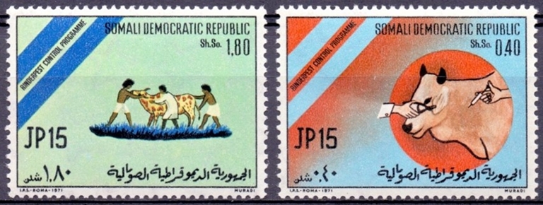 Seria znaczków – Somalia, 1971, nr kat. Michel SO 185-186, Rinderpest Control Programme, JP15.