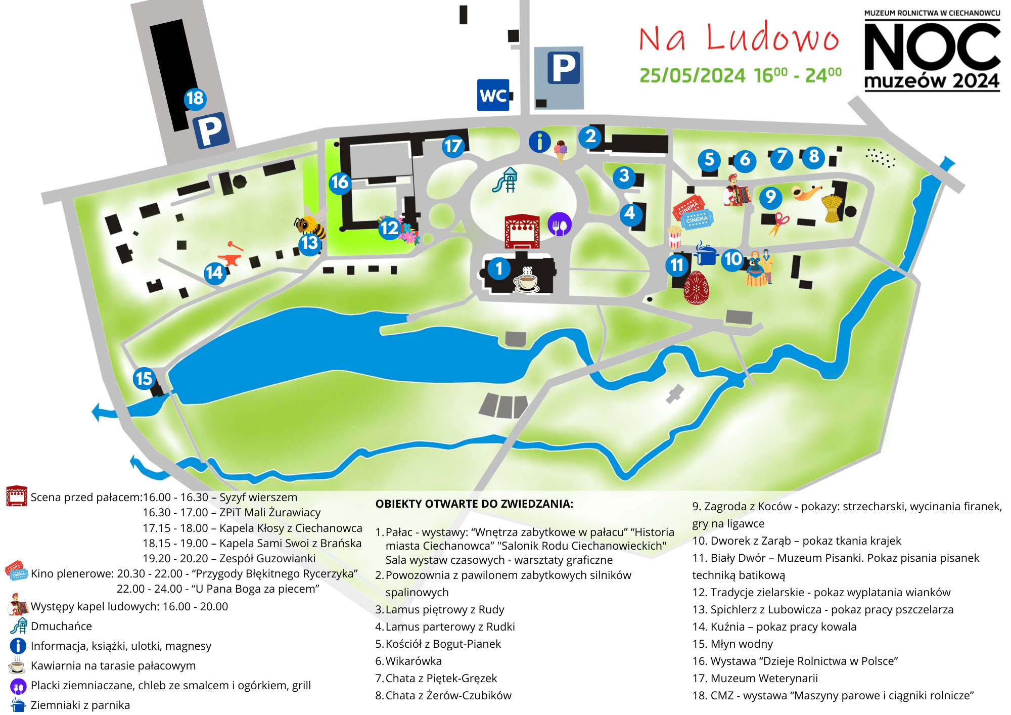 Noc Muzeów "Na ludowo" - 25 maja 2024 r. - plan sytuacyjny wydarzenia