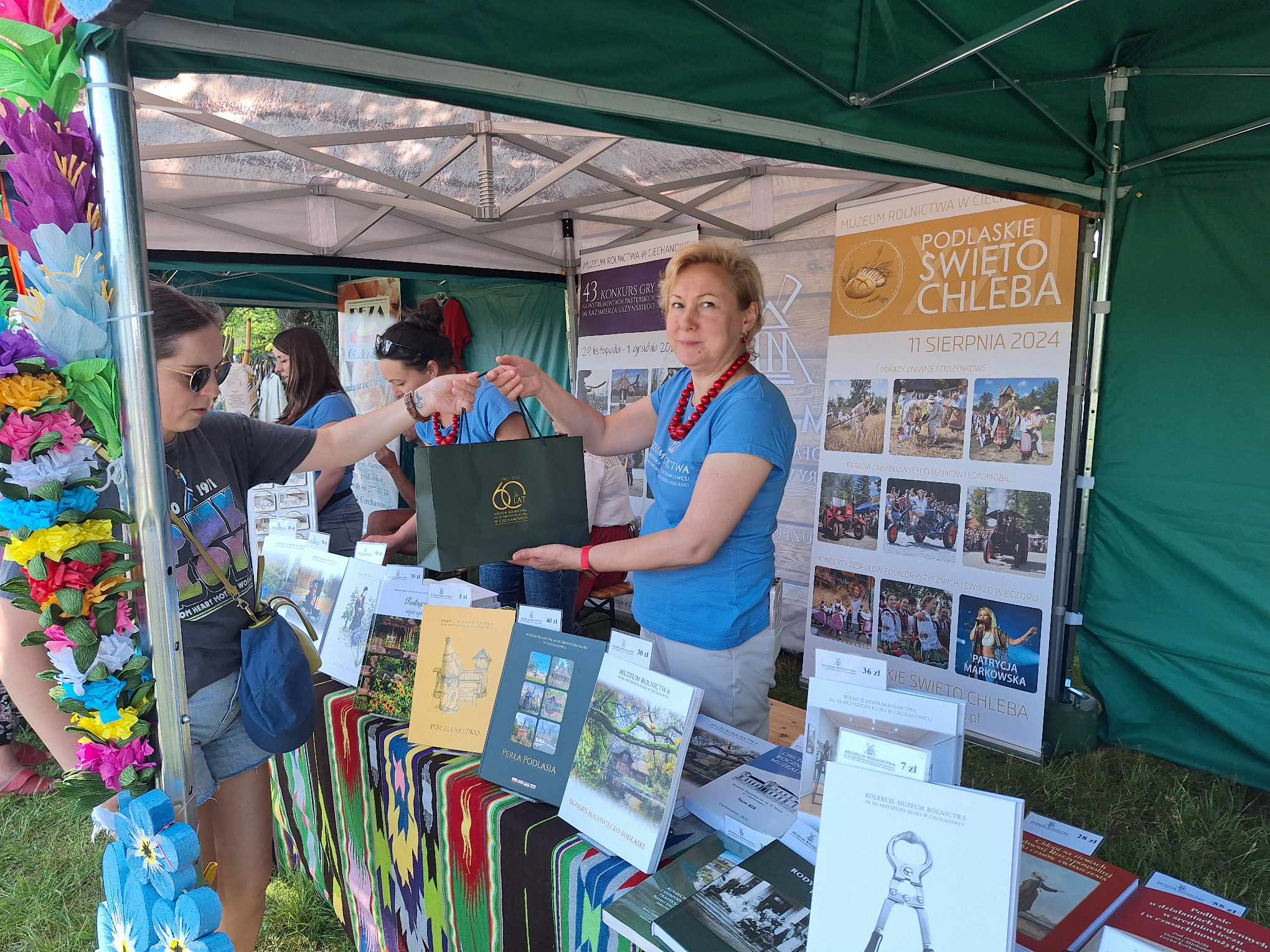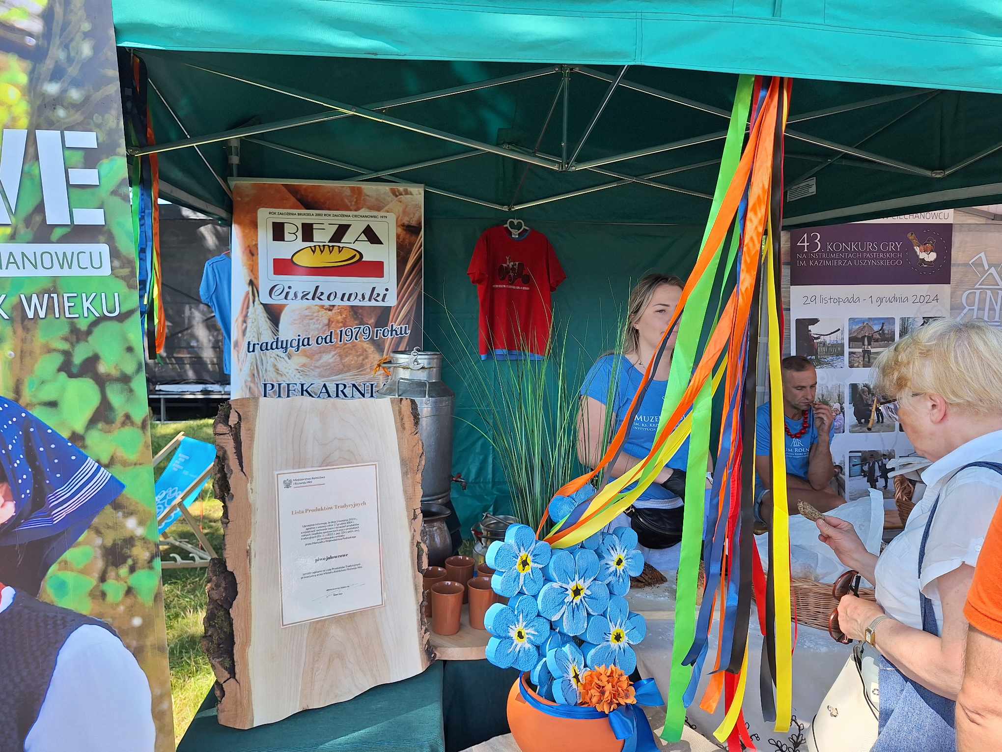 Na stoiskach natomiast promujemy lokalną, zdrową żywność taką jak mąka z Młyna Ciechanowiec, chleby z tradycyjnej piekarni BEZA Ciechanowiec oraz piwo jałowcowe, które staraniami Muzeum Rolnictwa zostało w 2023 r. wpisane na Listę Produktów Tradycyjnych Ministra Rolnictwa i Rozwoju Wsi.