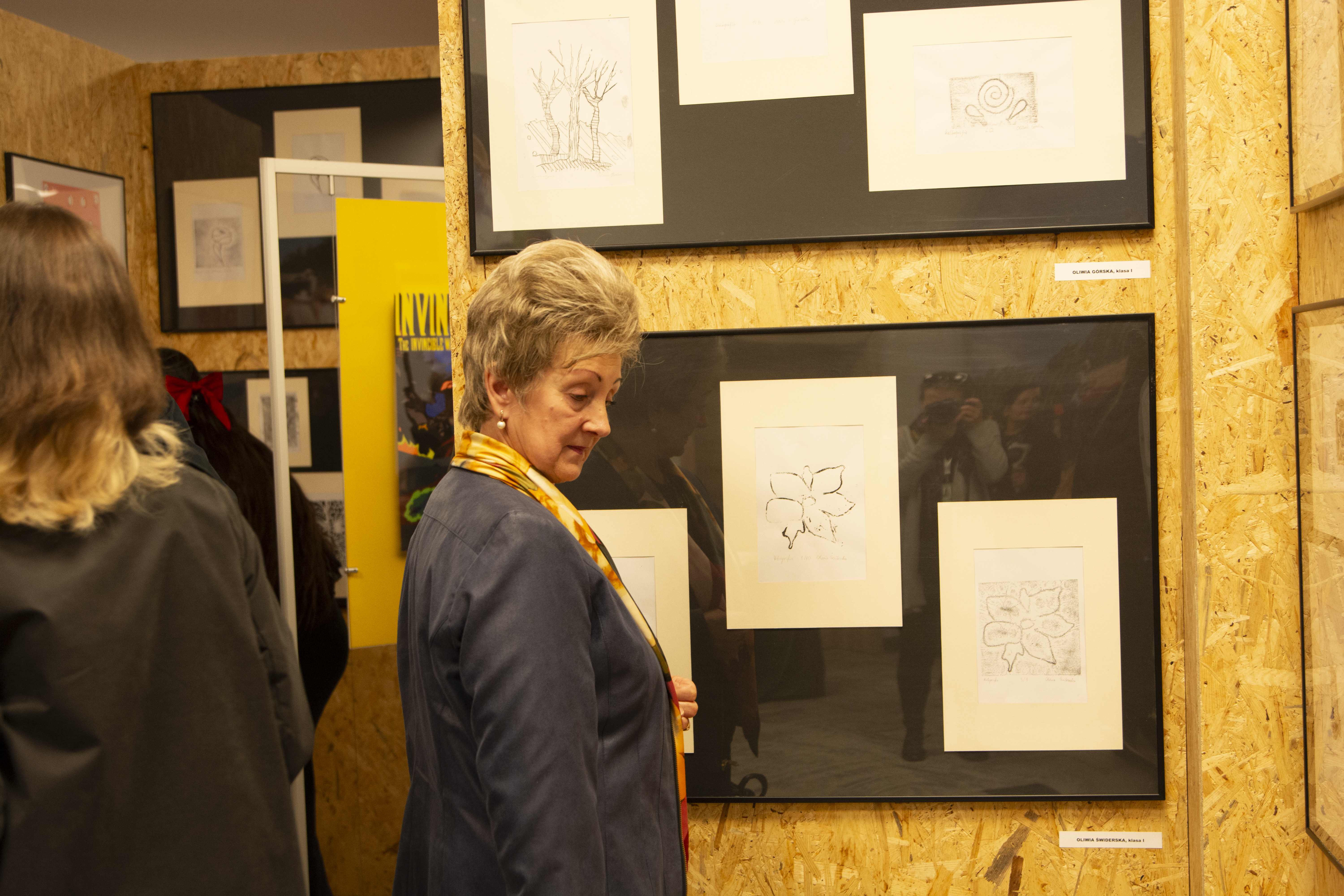 Na wystawie możemy podziwiać efekt wielogodzinnego procesu twórczego niemal każdego z uczniów klasy pierwszej, drugiej i trzeciej, którzy na zajęciach szkolnych pod kierunkiem Barbary Pełszyk poznawali arkana jednego z podstawowych działów sztuk plastycznych, jakim jest grafika artystyczna zwana też warsztatową lub niezależną.