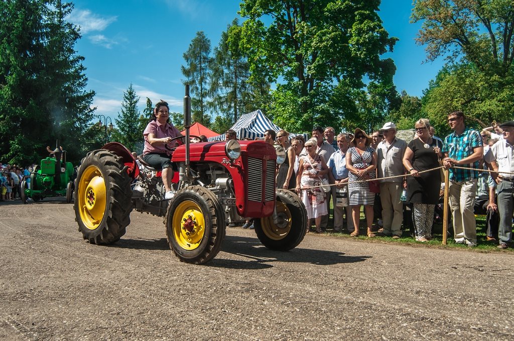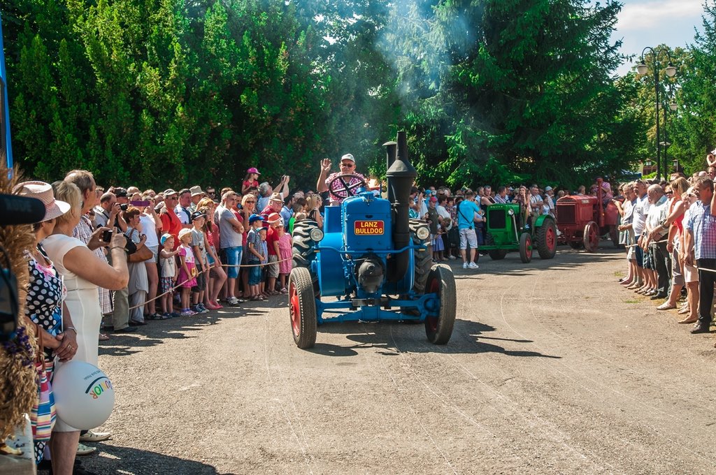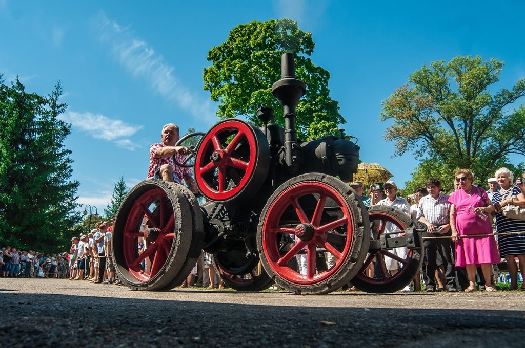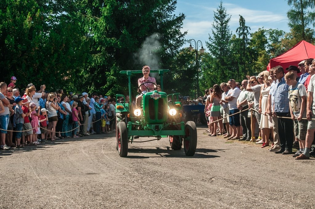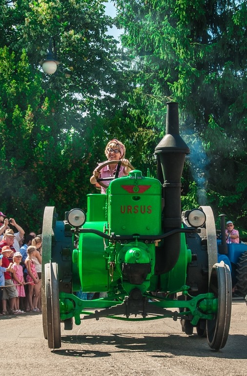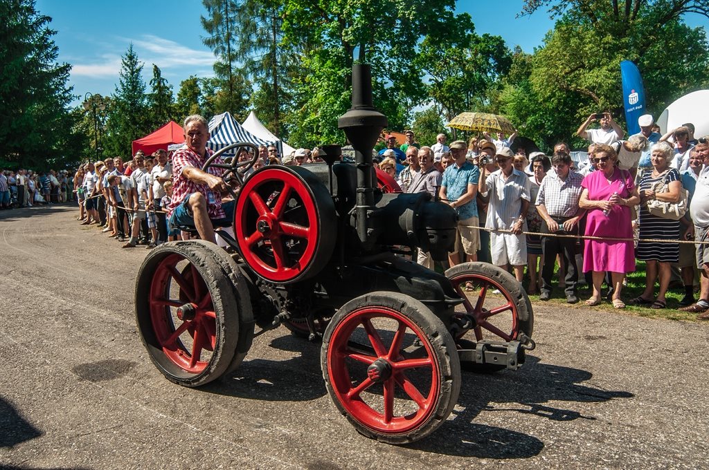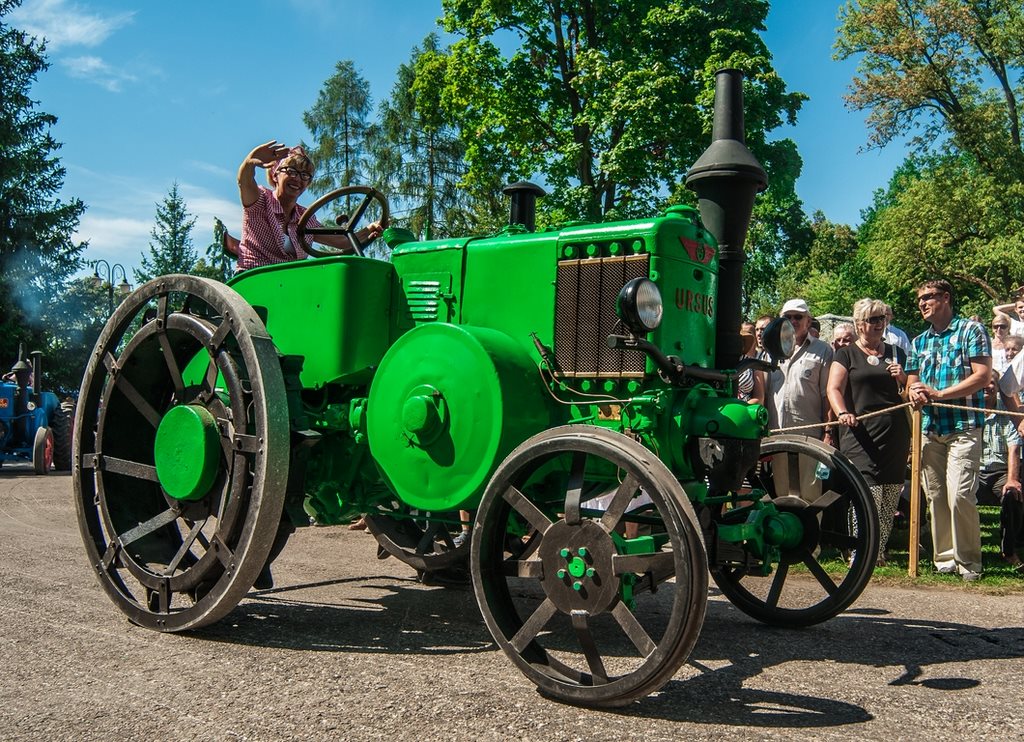 Duży zachwyt i podziw widzów budziła parada maszyn z kolekcji Działu Techniki Rolniczej Muzeum tj. 12 zabytkowych ciągników i 2 lokomobil, za kierownicą których zasiedli pracownicy Muzeum.