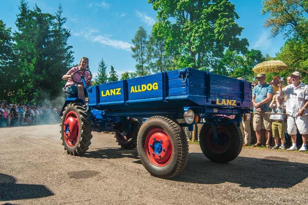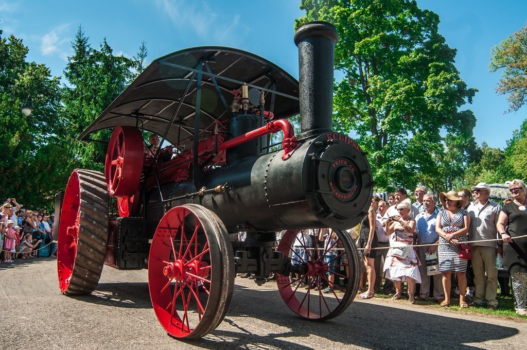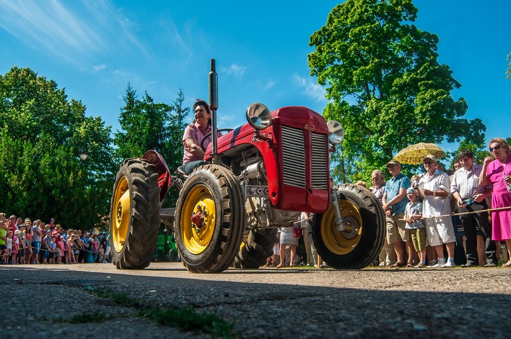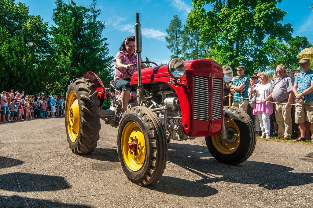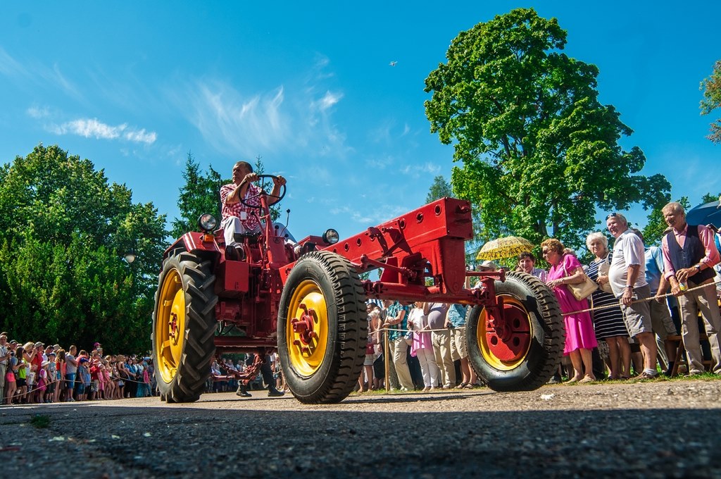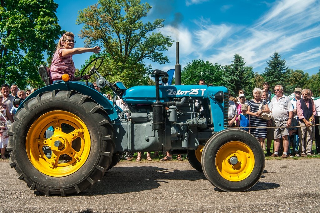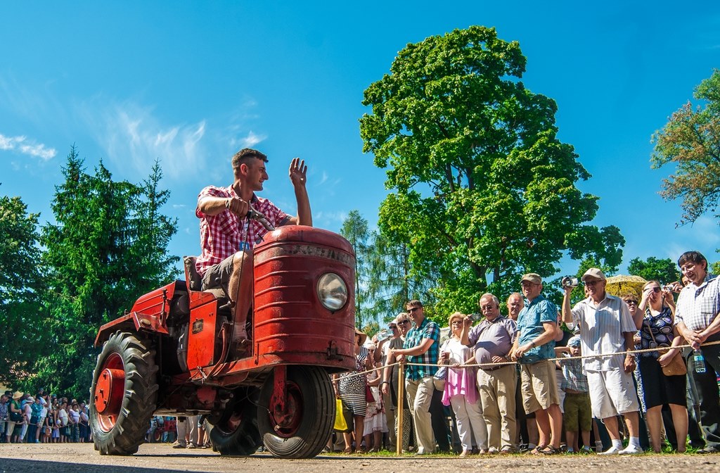 Duży zachwyt i podziw widzów budziła parada maszyn z kolekcji Działu Techniki Rolniczej Muzeum tj. 12 zabytkowych ciągników i 2 lokomobil, za kierownicą których zasiedli pracownicy Muzeum.