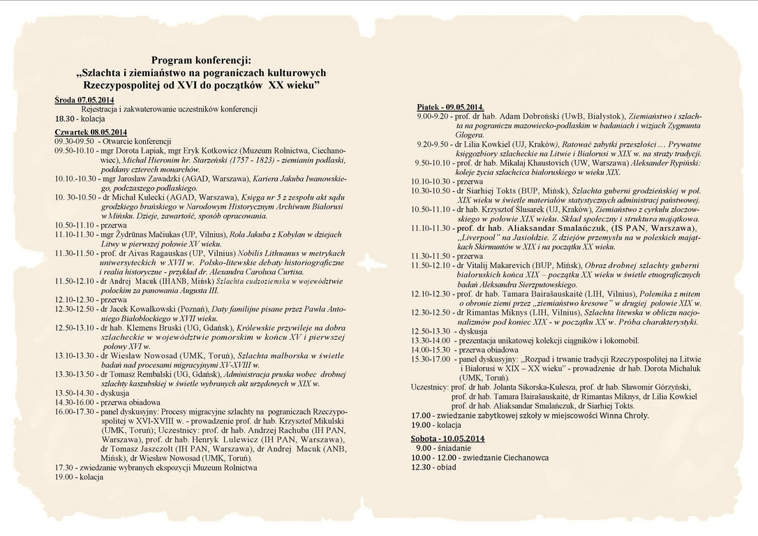 W konferencji udział wzięli historycy, bibliolodzy, archiwiści i historycy literatury z Polski, Białorusi i Litwy, reprezentujący najważniejsze placówki naukowo-badawcze, co gwarantowało wysoki poziom prezentacji oraz szeroki zakres tematyczny.