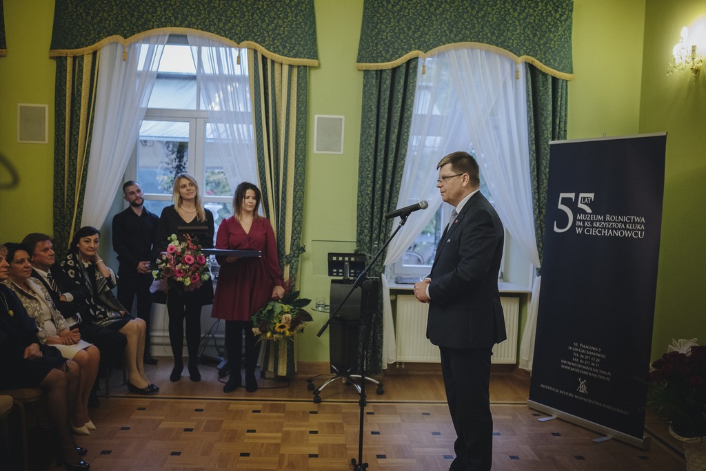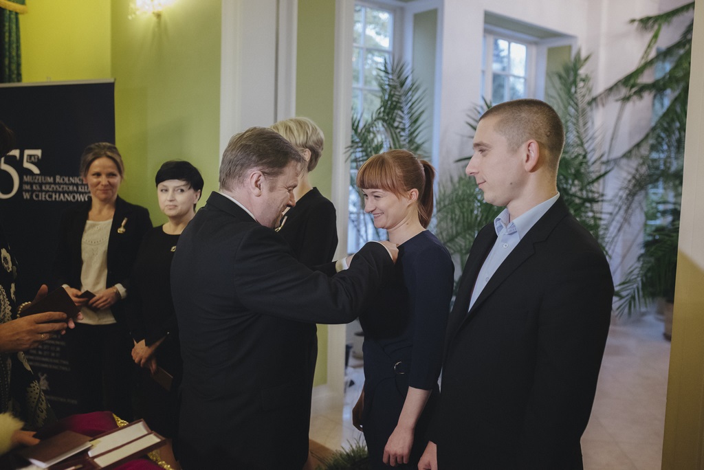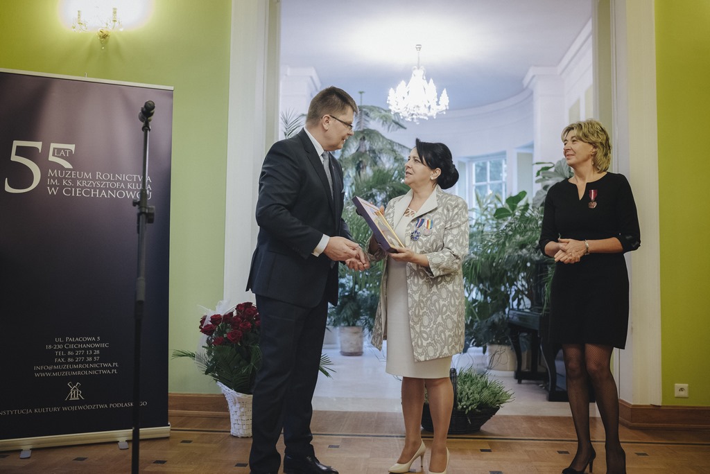 Na wniosek Marszałka Województwa Podlaskiego Jerzego Leszczyńskiego, Minister Kultury i Dziedzictwa Narodowego prof. dr hab. Piotr Gliński z okazji Jubileuszu 55-Lecia Muzeum Rolnictwa im. ks. Krzysztofa Kluka w Ciechanowcu za szczególne zasługi w dziedzinie działalności kulturalnej oraz ochrony kultury i dziedzictwa narodowego nadał Pani Dorocie Łapiak Dyrektor Muzeum Srebrny Medal Zasłużony Kulturze - Gloria Artis oraz Pani Annie Wiśniewskiej Zastępcy Dyrektora Muzeum Brązowy Medal Zasłużony Kulturze Gloria Artis.