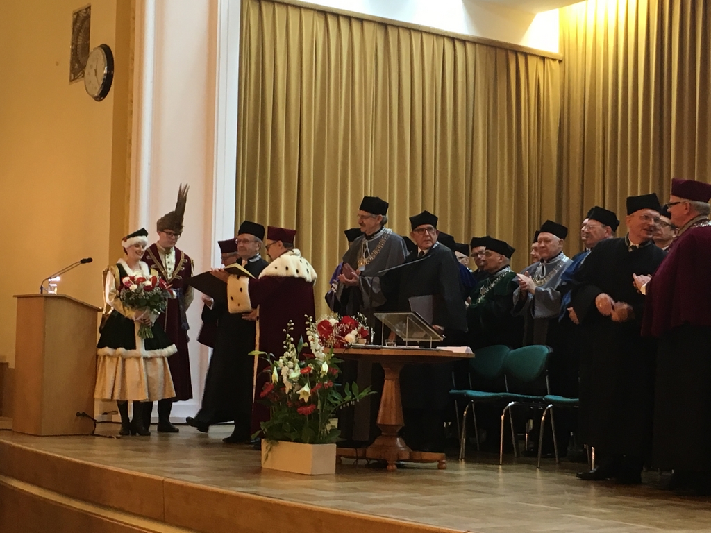 Z wielką radością informujemy, iż w dniu 18 maja 2018 r. w Auli Kryształowej SGGW, Przewodniczący Rady Muzeum prof.dr hab. inż. Czesław Waszkiewicz otrzymał tytuł DOKTORA HONORIS CAUSA. W tej szczególnej uroczystości udział wzięła delegacja pracowników z Muzeum Rolnictwa w Ciechanowcu na czele z Dyrektor Dorotą Łapiak, Starosta Wysokomazowiecki Bogdan Zieliński oraz Nadleśniczy Nadleśnictwa Rudka Grzegorz Godlewski.