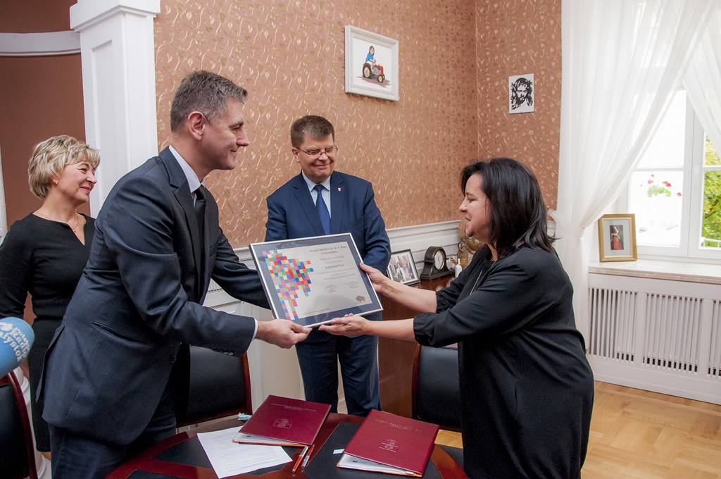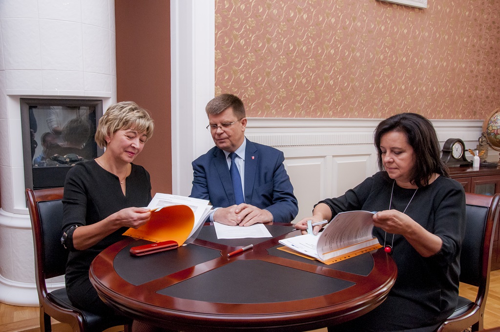 Uroczyste podpisanie umowy na realizację projektu „Restauracja obiektów zespołu pałacowo-parkowego wraz z konserwacją muzealiów Muzeum Rolnictwa im. ks. Krzysztofa Kluka w Ciechanowcu” w ramach Regionalnego Programu Operacyjnego Województwa Podlaskiego na lata 2014-2020