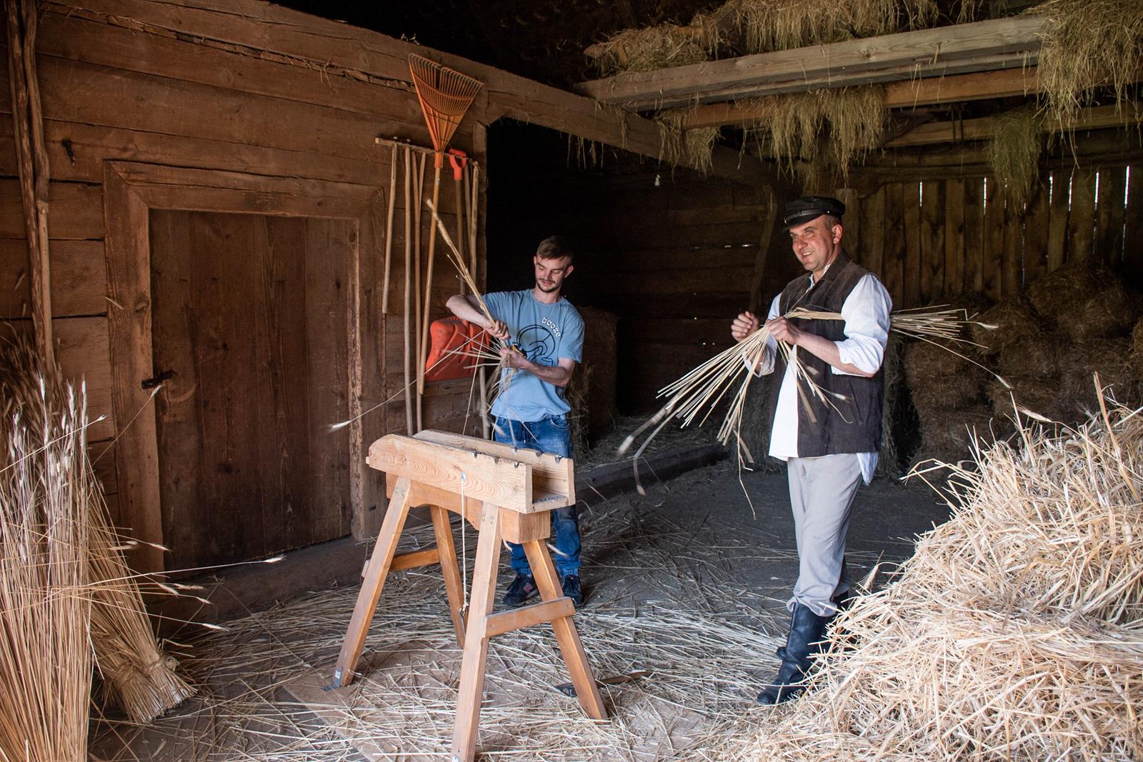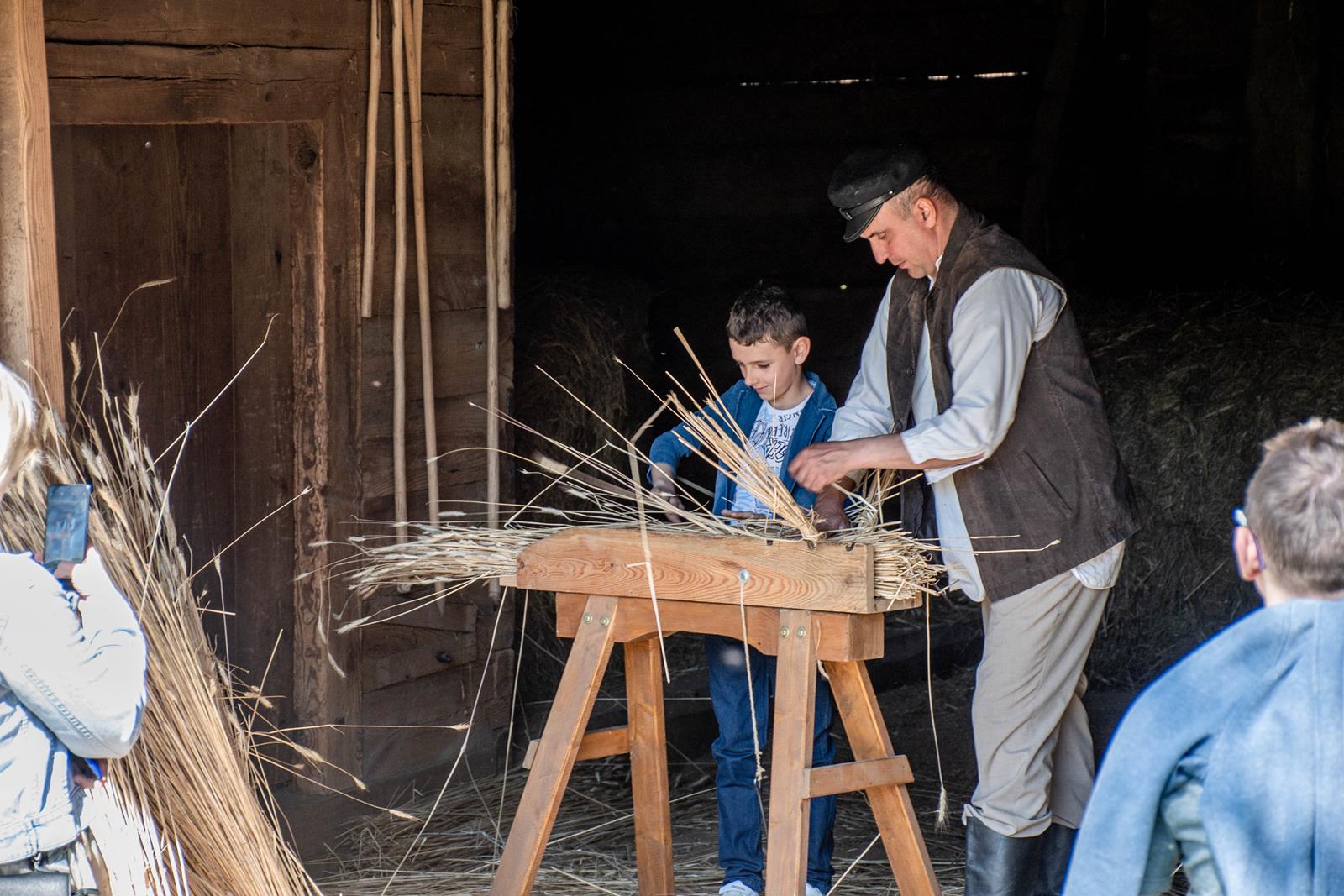 Na terenie skansenu przygotowano wiele ciekawych pokazów, dzięki którym uczestnicy jarmarku mogli poznać arkana tkactwa, przędzenia na kołowrotku i malarstwa na szkle. Chętni mogli obserwować lub czynnie uczestniczyć w obróbce ziarna w stępie lub żarnach oraz dowiedzieć się jak przygotować słomę na poszycie dachu lub nauczyć się wyplatania koszy z gałązek wierzbowych oraz poznać tajniki wplatania płotów leszczynowych i mat trzcinowych.