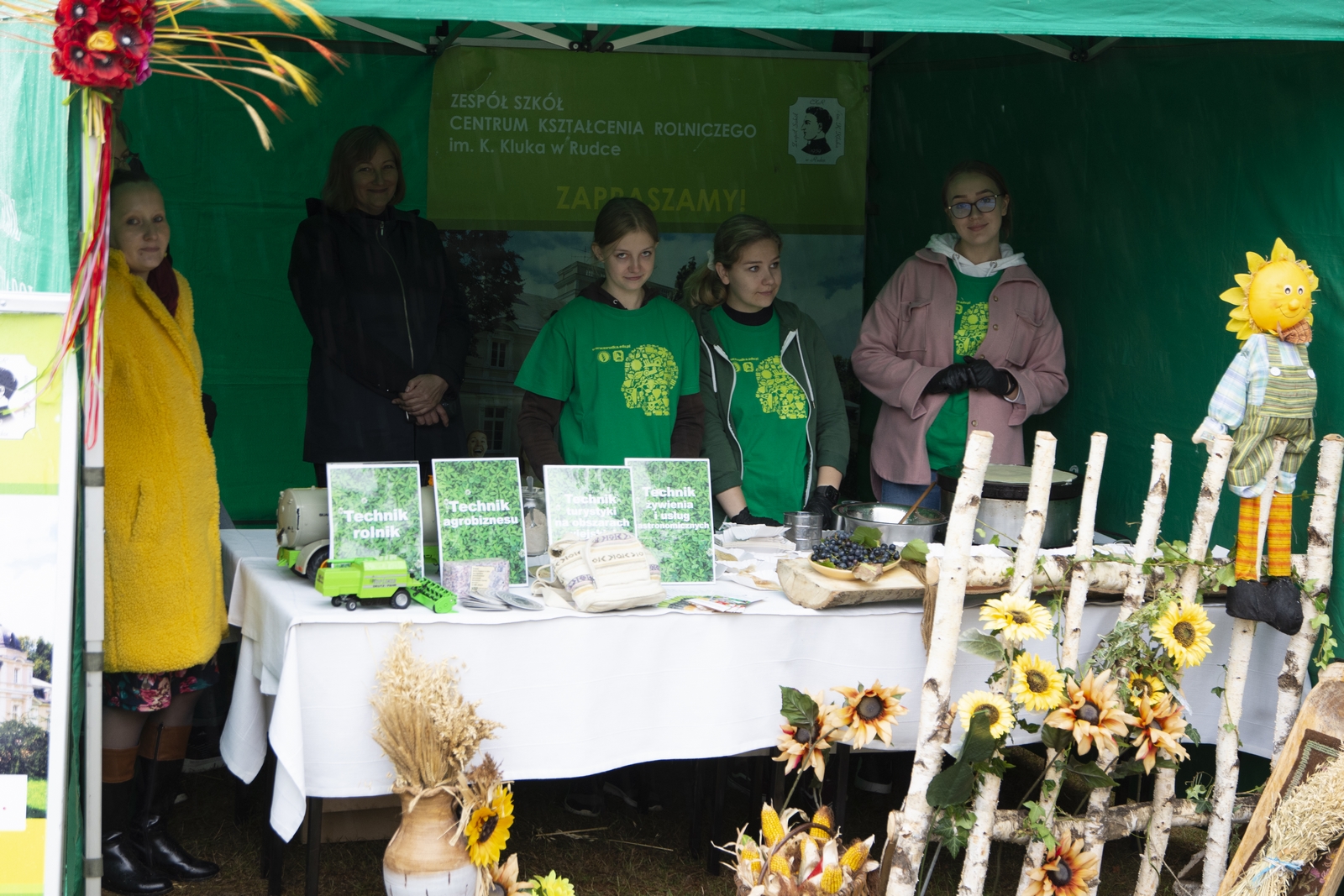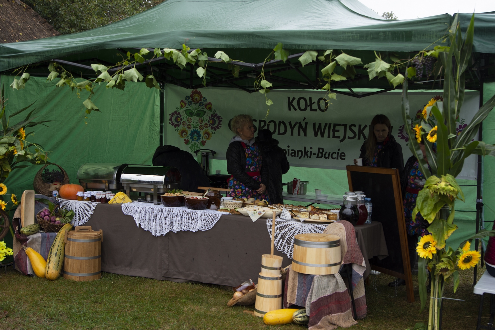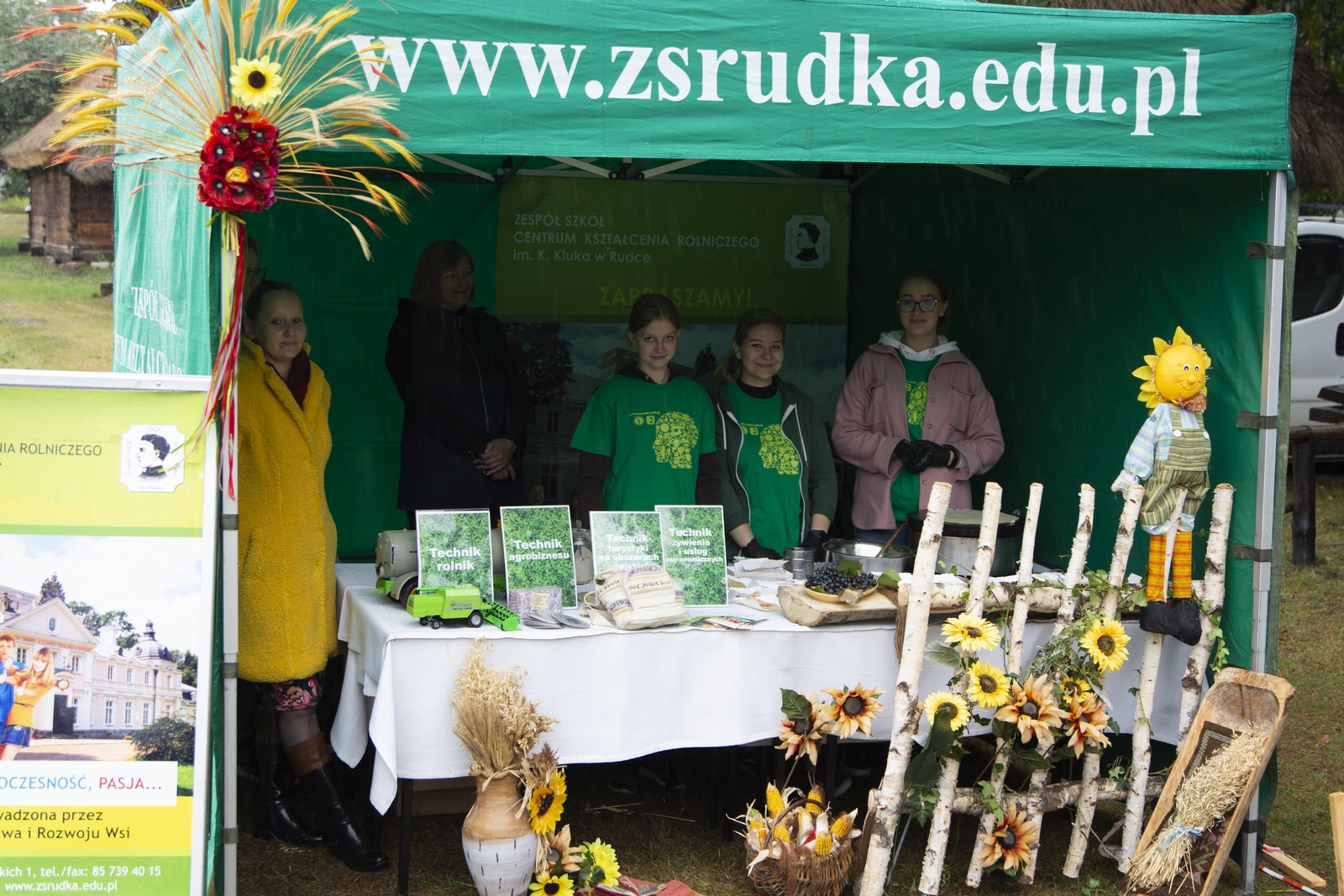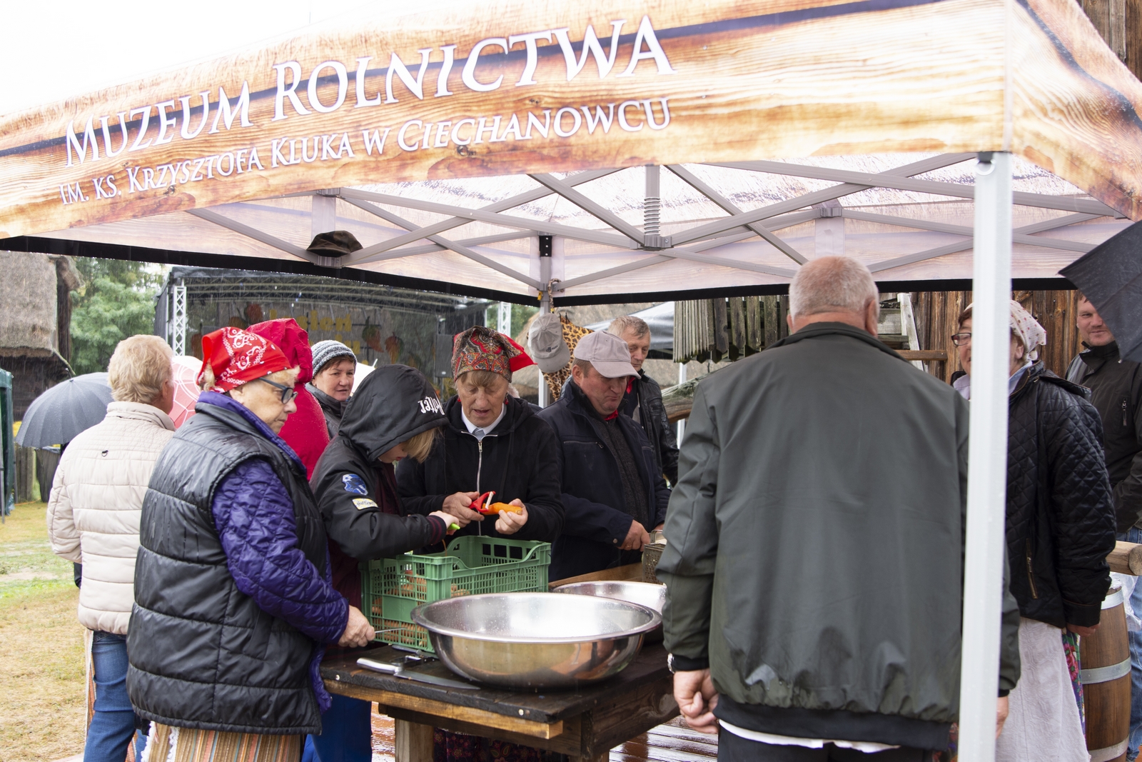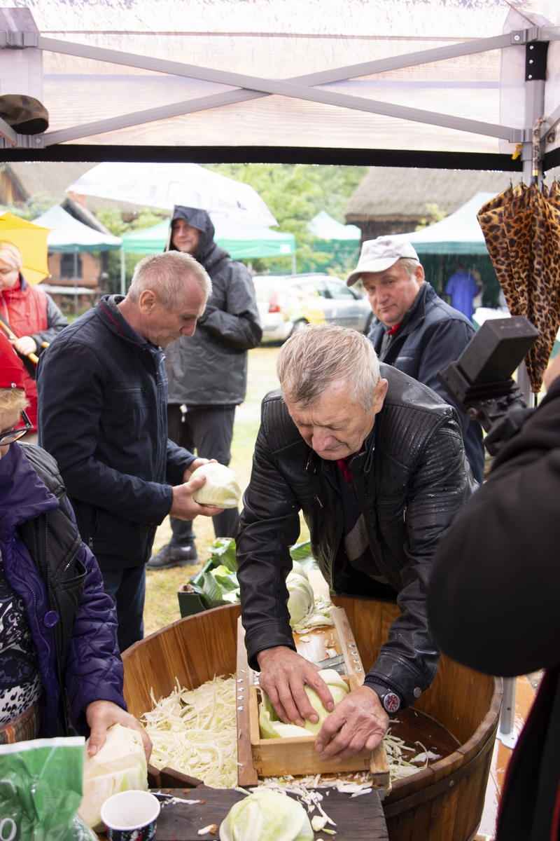 Prezentowaliśmy również pracę sprawnych technicznie zabytkowych ciągników, lokomobil i silników stacjonarnych ze zbiorów Muzeum. Odbyły się również pokazy tłoczenia soków ze świeżych owoców wraz z degustacją, przędzenie na kołowrotku, wyciskanie oleju z siemienia lnianego, wyrób świec woskowych, pokaz tkacki – wytwarzanie dywanów dwuosnowowych, wyplatanie koszy z wikliny, wykonywanie ligawki mazowiecko-podlaskiej (tradycyjnego rogu pasterskiego), wyrób drewnianej zabawki ludowej, pokaz wykonywania krajki, jak również demonstracja pracy garncarza. W zakresie promocji kulinarnej Podlasia przyrządziliśmy – krupnik, zupę ogórkową i placki ziemniaczane. Gospodynie z Kół Gospodyń Wiejskich rywalizowały w konkursie na najciekawsze stoisko promujące tradycyjne potrawy regionalne. Jury konkursu stwierdziło bardzo wysoki poziom prezentacji. Nagrodami rzeczowymi uhonorowano wszystkie Koła zgłoszone do konkursu. Najmłodsi uczestnicy festynu uczestniczyli w konkursie plastycznym pn. ,,Jesień w polu i zagrodzie’’. Przeprowadziliśmy też konkurs sprawnościowy dla najmłodszych - rzut ziemniakami do kosza. Dorośli zaś rywalizowali w konkursie obierania jabłek na szarlotkę (kobiety) i ziemniaków (mężczyźni). Na stoiskach partnerów zadania - instytucji działających w obszarach wiejskich, uczestnicy imprezy zapoznawali się z nowoczesnymi sposobami gospodarowania, możliwościami korzystania z programów pomocowych na rzecz wsi i zakresu ubezpieczeń społecznych rolników. Przy stoisku Zespołu Szkół Centrum Kształcenia Rolniczego w Rudce promowane były kierunki kształcenia w zakresie gastronomii, agroturystyki, ekologii i aktywne zachęcanie młodzieży do podjęcia nauki w danej szkole. Z kolei Stowarzyszenie ,,Zambrowski Produkty Lokalne’’ zorganizowało promocyjne stoisko z regionalnymi, ekologicznymi produktami rolnymi. Członkowie Stowarzyszenia promowali ekouprawę tradycyjnych warzyw i owoców, jak również dzielili się swoimi doświadczeniami z uczestnikami imprezy.