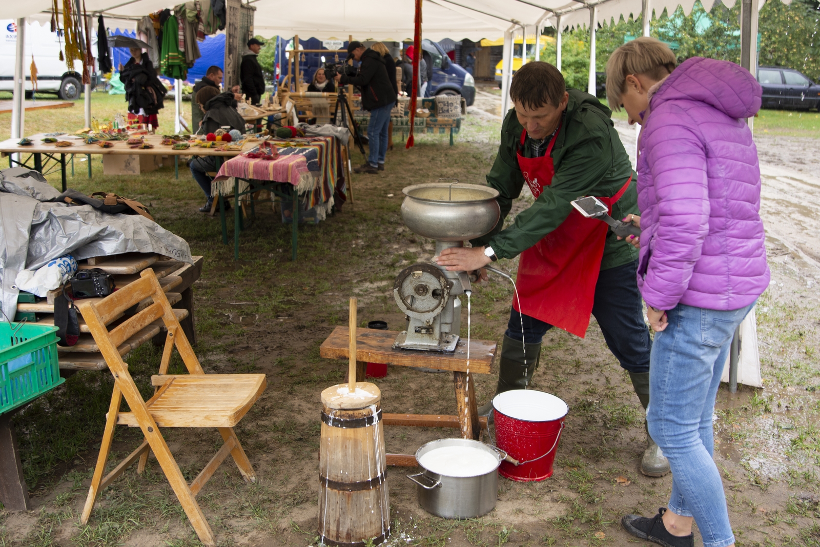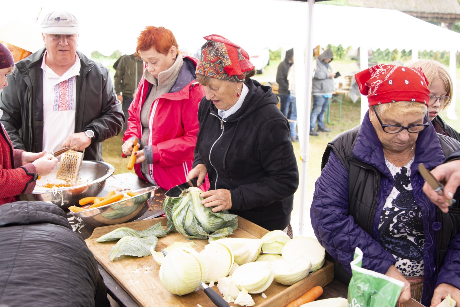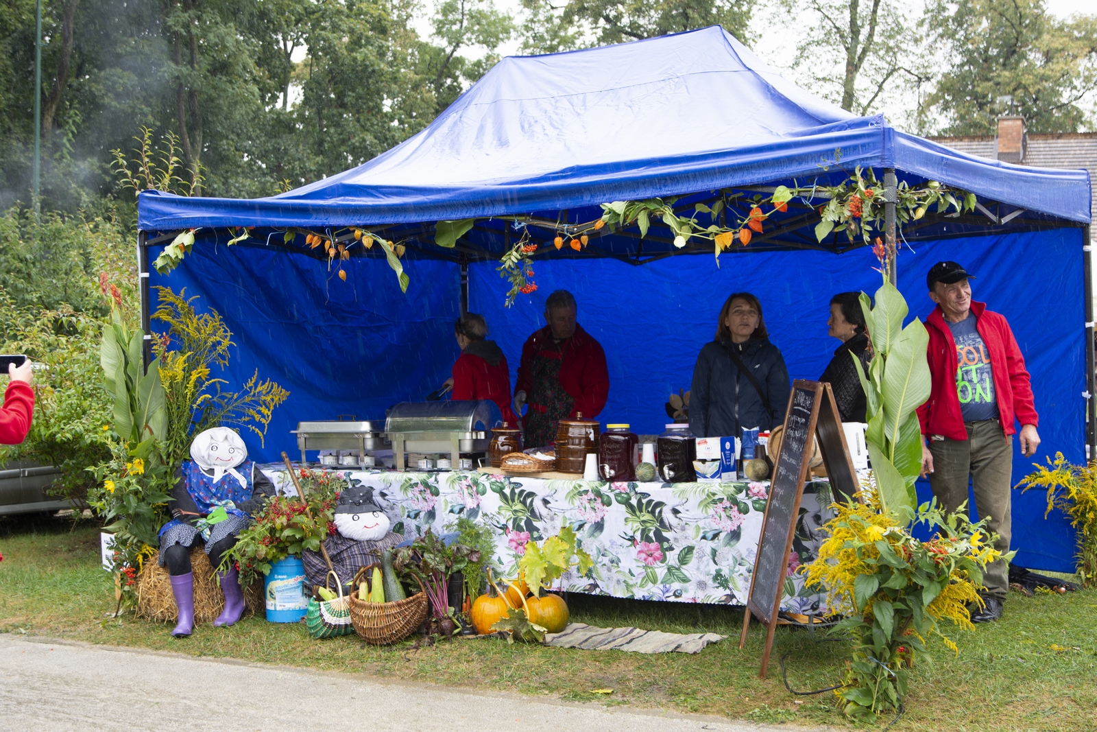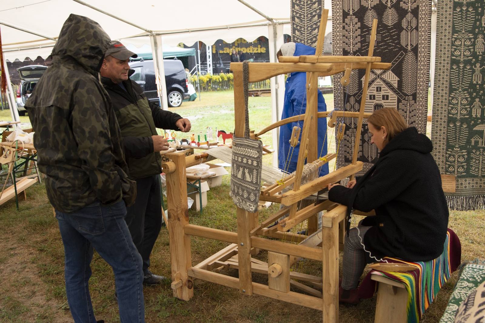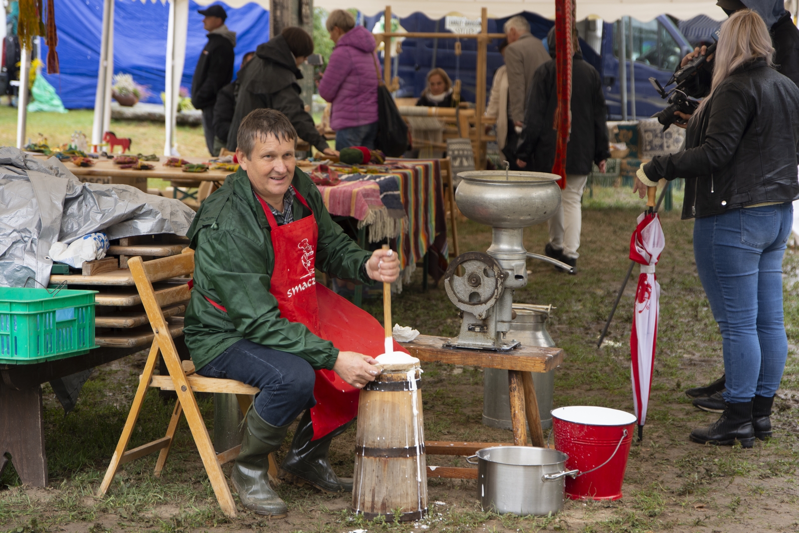 Prezentowaliśmy również pracę sprawnych technicznie zabytkowych ciągników, lokomobil i silników stacjonarnych ze zbiorów Muzeum. Odbyły się również pokazy tłoczenia soków ze świeżych owoców wraz z degustacją, przędzenie na kołowrotku, wyciskanie oleju z siemienia lnianego, wyrób świec woskowych, pokaz tkacki – wytwarzanie dywanów dwuosnowowych, wyplatanie koszy z wikliny, wykonywanie ligawki mazowiecko-podlaskiej (tradycyjnego rogu pasterskiego), wyrób drewnianej zabawki ludowej, pokaz wykonywania krajki, jak również demonstracja pracy garncarza. W zakresie promocji kulinarnej Podlasia przyrządziliśmy – krupnik, zupę ogórkową i placki ziemniaczane. Gospodynie z Kół Gospodyń Wiejskich rywalizowały w konkursie na najciekawsze stoisko promujące tradycyjne potrawy regionalne. Jury konkursu stwierdziło bardzo wysoki poziom prezentacji. Nagrodami rzeczowymi uhonorowano wszystkie Koła zgłoszone do konkursu. Najmłodsi uczestnicy festynu uczestniczyli w konkursie plastycznym pn. ,,Jesień w polu i zagrodzie’’. Przeprowadziliśmy też konkurs sprawnościowy dla najmłodszych - rzut ziemniakami do kosza. Dorośli zaś rywalizowali w konkursie obierania jabłek na szarlotkę (kobiety) i ziemniaków (mężczyźni). Na stoiskach partnerów zadania - instytucji działających w obszarach wiejskich, uczestnicy imprezy zapoznawali się z nowoczesnymi sposobami gospodarowania, możliwościami korzystania z programów pomocowych na rzecz wsi i zakresu ubezpieczeń społecznych rolników. Przy stoisku Zespołu Szkół Centrum Kształcenia Rolniczego w Rudce promowane były kierunki kształcenia w zakresie gastronomii, agroturystyki, ekologii i aktywne zachęcanie młodzieży do podjęcia nauki w danej szkole. Z kolei Stowarzyszenie ,,Zambrowski Produkty Lokalne’’ zorganizowało promocyjne stoisko z regionalnymi, ekologicznymi produktami rolnymi. Członkowie Stowarzyszenia promowali ekouprawę tradycyjnych warzyw i owoców, jak również dzielili się swoimi doświadczeniami z uczestnikami imprezy.