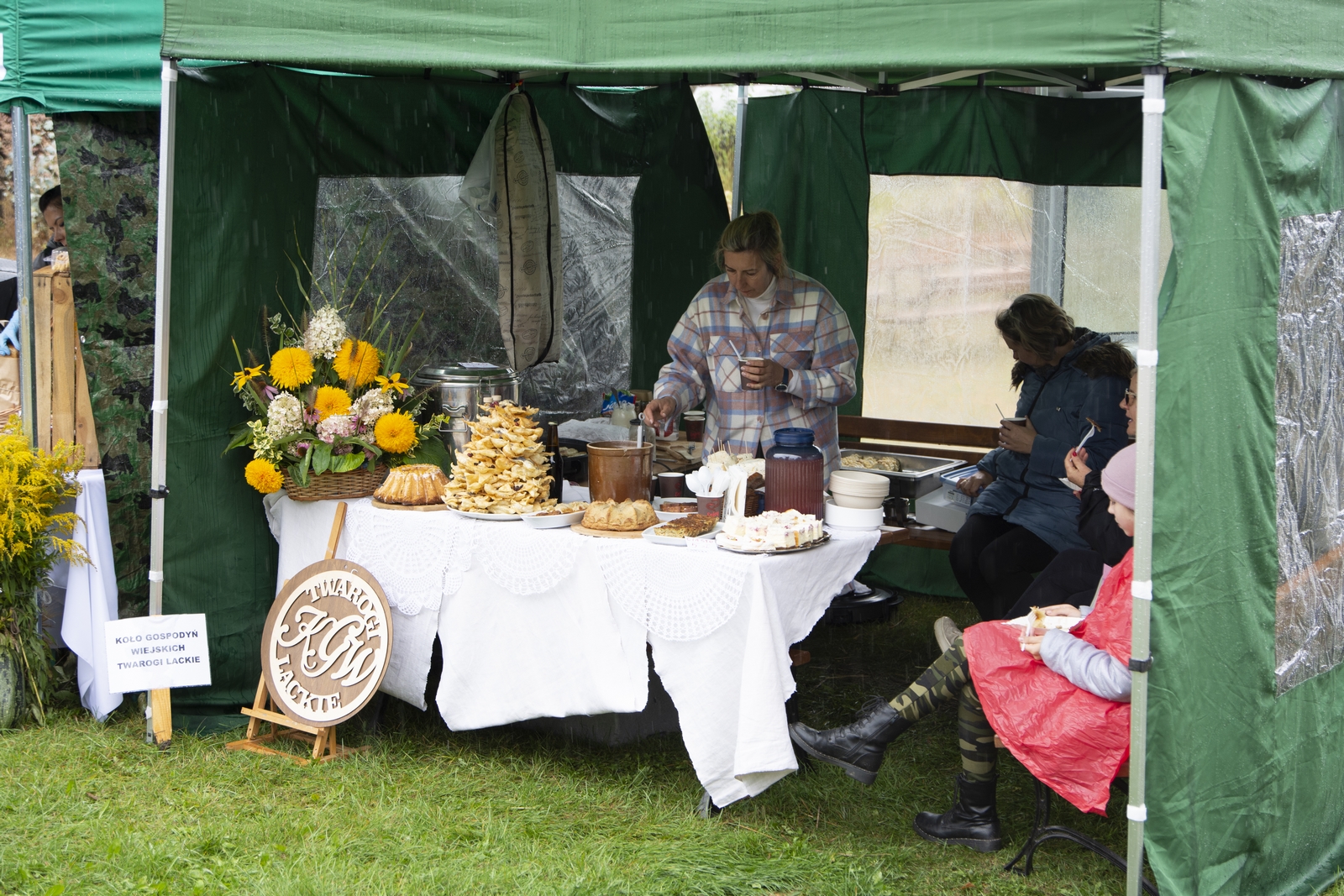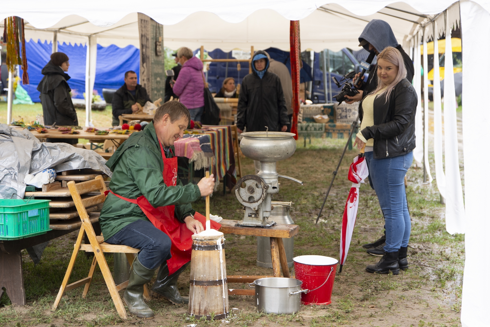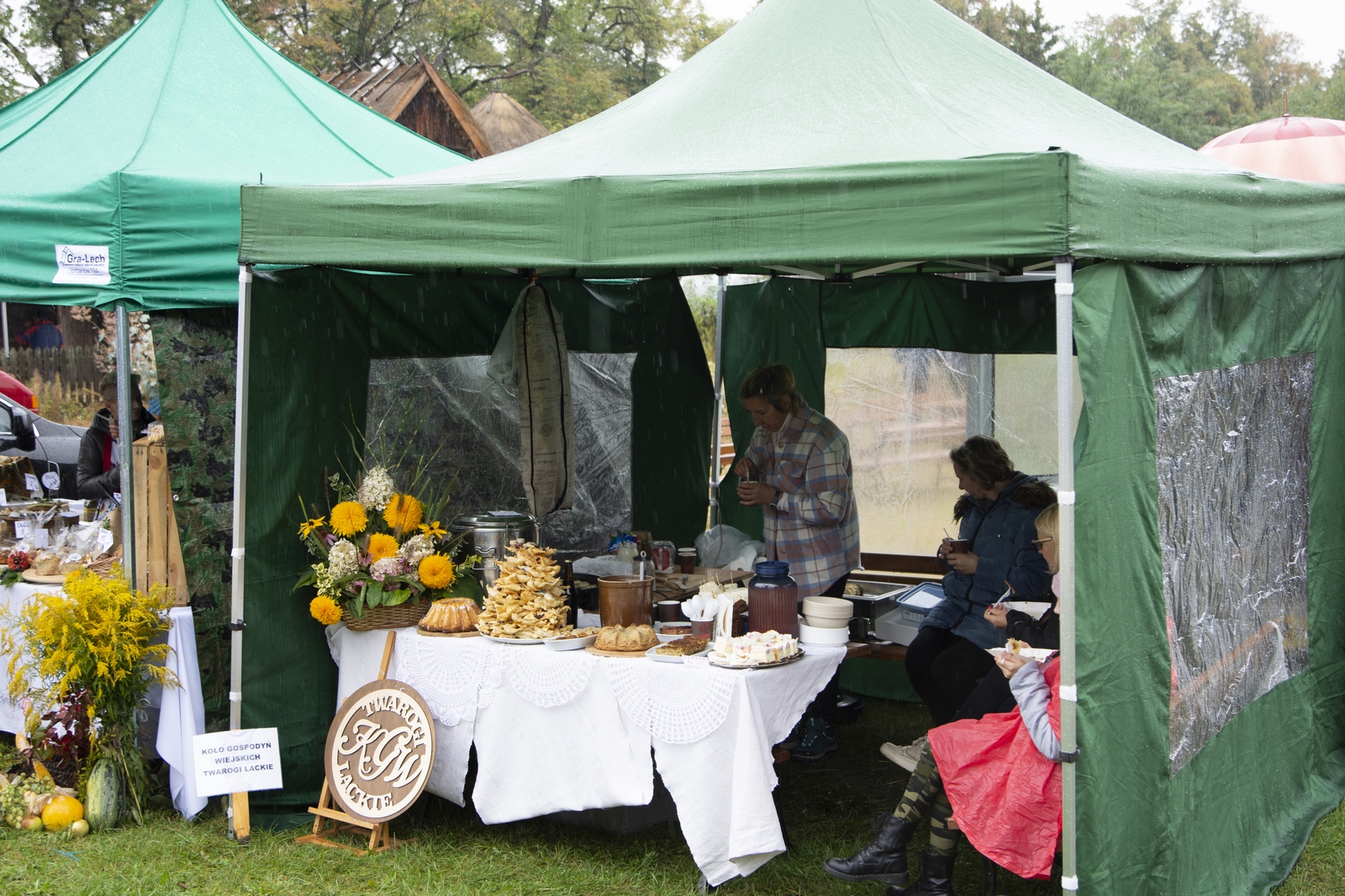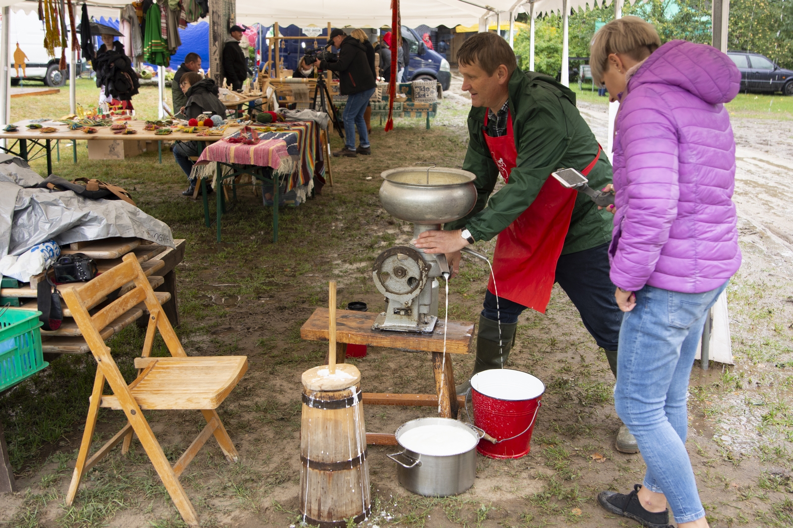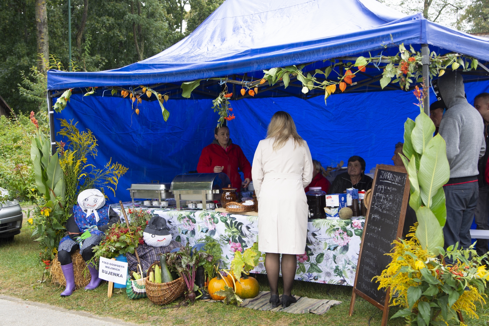 Prezentowaliśmy również pracę sprawnych technicznie zabytkowych ciągników, lokomobil i silników stacjonarnych ze zbiorów Muzeum. Odbyły się również pokazy tłoczenia soków ze świeżych owoców wraz z degustacją, przędzenie na kołowrotku, wyciskanie oleju z siemienia lnianego, wyrób świec woskowych, pokaz tkacki – wytwarzanie dywanów dwuosnowowych, wyplatanie koszy z wikliny, wykonywanie ligawki mazowiecko-podlaskiej (tradycyjnego rogu pasterskiego), wyrób drewnianej zabawki ludowej, pokaz wykonywania krajki, jak również demonstracja pracy garncarza. W zakresie promocji kulinarnej Podlasia przyrządziliśmy – krupnik, zupę ogórkową i placki ziemniaczane. Gospodynie z Kół Gospodyń Wiejskich rywalizowały w konkursie na najciekawsze stoisko promujące tradycyjne potrawy regionalne. Jury konkursu stwierdziło bardzo wysoki poziom prezentacji. Nagrodami rzeczowymi uhonorowano wszystkie Koła zgłoszone do konkursu. Najmłodsi uczestnicy festynu uczestniczyli w konkursie plastycznym pn. ,,Jesień w polu i zagrodzie’’. Przeprowadziliśmy też konkurs sprawnościowy dla najmłodszych - rzut ziemniakami do kosza. Dorośli zaś rywalizowali w konkursie obierania jabłek na szarlotkę (kobiety) i ziemniaków (mężczyźni). Na stoiskach partnerów zadania - instytucji działających w obszarach wiejskich, uczestnicy imprezy zapoznawali się z nowoczesnymi sposobami gospodarowania, możliwościami korzystania z programów pomocowych na rzecz wsi i zakresu ubezpieczeń społecznych rolników. Przy stoisku Zespołu Szkół Centrum Kształcenia Rolniczego w Rudce promowane były kierunki kształcenia w zakresie gastronomii, agroturystyki, ekologii i aktywne zachęcanie młodzieży do podjęcia nauki w danej szkole. Z kolei Stowarzyszenie ,,Zambrowski Produkty Lokalne’’ zorganizowało promocyjne stoisko z regionalnymi, ekologicznymi produktami rolnymi. Członkowie Stowarzyszenia promowali ekouprawę tradycyjnych warzyw i owoców, jak również dzielili się swoimi doświadczeniami z uczestnikami imprezy.