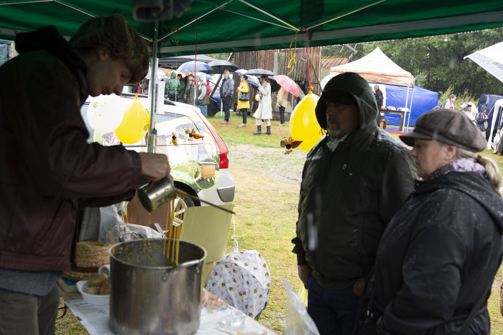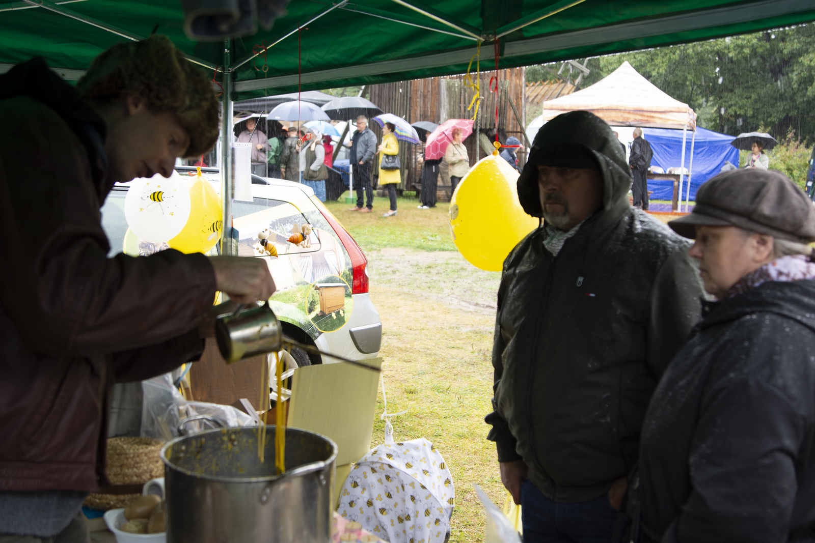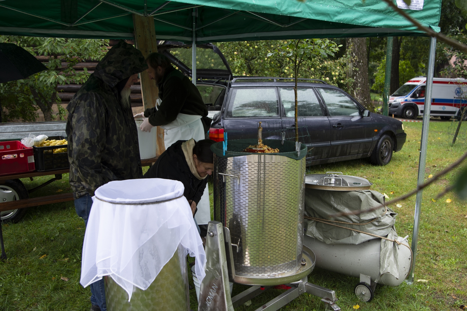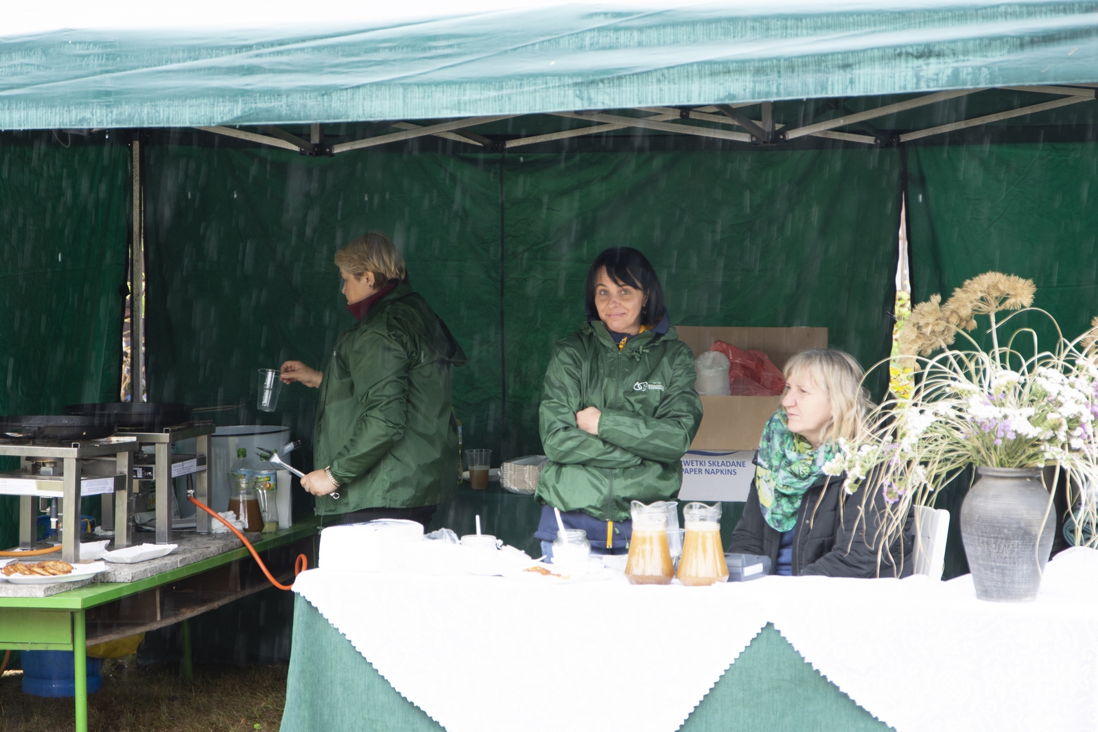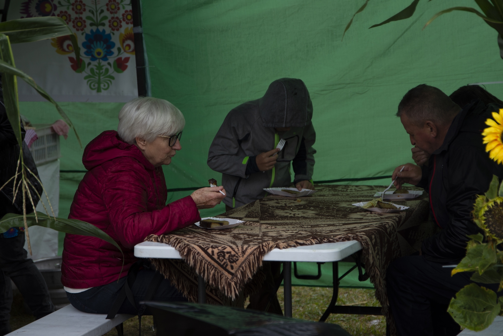 Prezentowaliśmy również pracę sprawnych technicznie zabytkowych ciągników, lokomobil i silników stacjonarnych ze zbiorów Muzeum. Odbyły się również pokazy tłoczenia soków ze świeżych owoców wraz z degustacją, przędzenie na kołowrotku, wyciskanie oleju z siemienia lnianego, wyrób świec woskowych, pokaz tkacki – wytwarzanie dywanów dwuosnowowych, wyplatanie koszy z wikliny, wykonywanie ligawki mazowiecko-podlaskiej (tradycyjnego rogu pasterskiego), wyrób drewnianej zabawki ludowej, pokaz wykonywania krajki, jak również demonstracja pracy garncarza. W zakresie promocji kulinarnej Podlasia przyrządziliśmy – krupnik, zupę ogórkową i placki ziemniaczane. Gospodynie z Kół Gospodyń Wiejskich rywalizowały w konkursie na najciekawsze stoisko promujące tradycyjne potrawy regionalne. Jury konkursu stwierdziło bardzo wysoki poziom prezentacji. Nagrodami rzeczowymi uhonorowano wszystkie Koła zgłoszone do konkursu. Najmłodsi uczestnicy festynu uczestniczyli w konkursie plastycznym pn. ,,Jesień w polu i zagrodzie’’. Przeprowadziliśmy też konkurs sprawnościowy dla najmłodszych - rzut ziemniakami do kosza. Dorośli zaś rywalizowali w konkursie obierania jabłek na szarlotkę (kobiety) i ziemniaków (mężczyźni). Na stoiskach partnerów zadania - instytucji działających w obszarach wiejskich, uczestnicy imprezy zapoznawali się z nowoczesnymi sposobami gospodarowania, możliwościami korzystania z programów pomocowych na rzecz wsi i zakresu ubezpieczeń społecznych rolników. Przy stoisku Zespołu Szkół Centrum Kształcenia Rolniczego w Rudce promowane były kierunki kształcenia w zakresie gastronomii, agroturystyki, ekologii i aktywne zachęcanie młodzieży do podjęcia nauki w danej szkole. Z kolei Stowarzyszenie ,,Zambrowski Produkty Lokalne’’ zorganizowało promocyjne stoisko z regionalnymi, ekologicznymi produktami rolnymi. Członkowie Stowarzyszenia promowali ekouprawę tradycyjnych warzyw i owoców, jak również dzielili się swoimi doświadczeniami z uczestnikami imprezy.