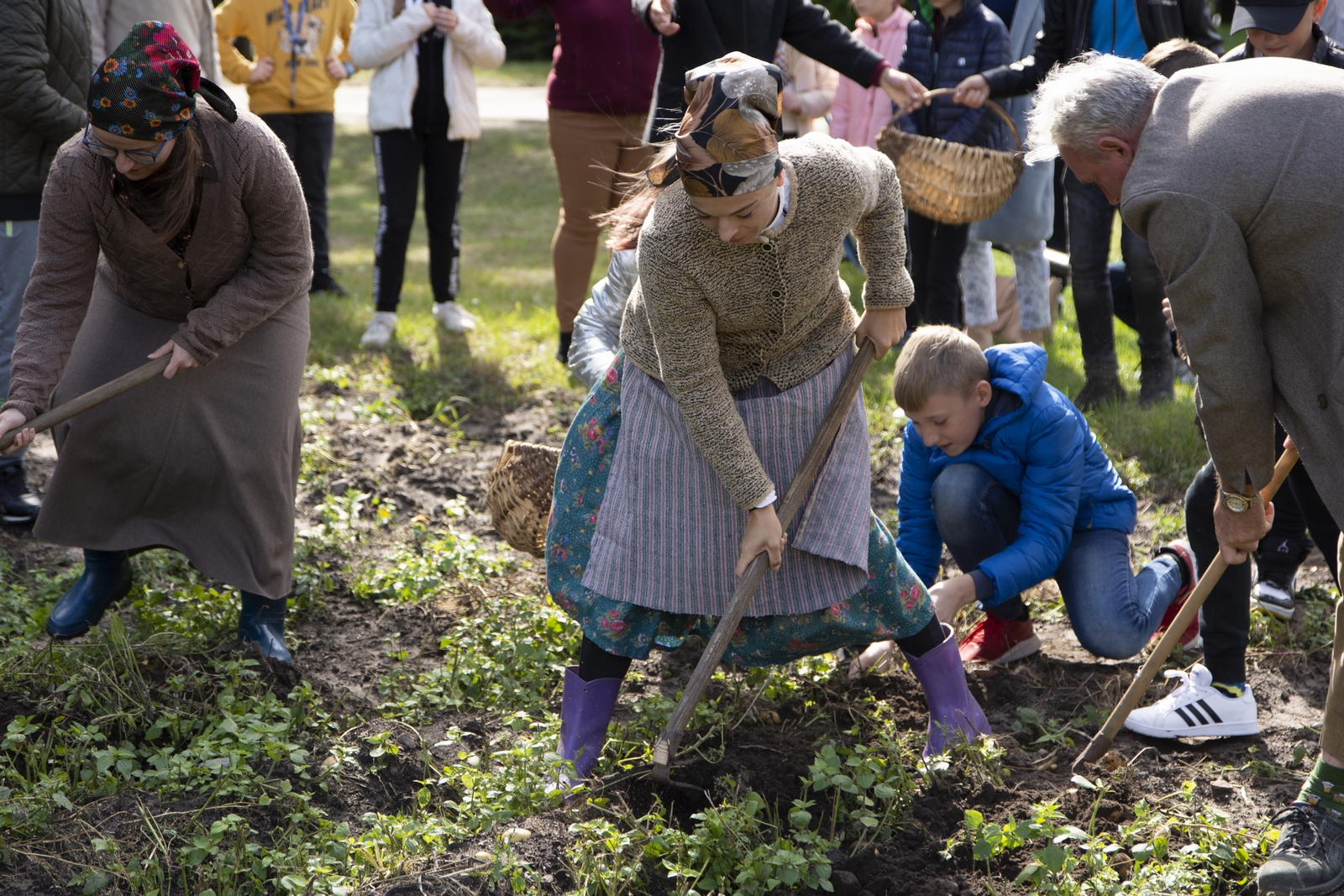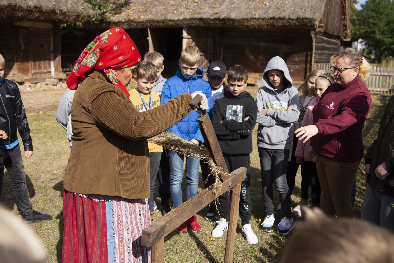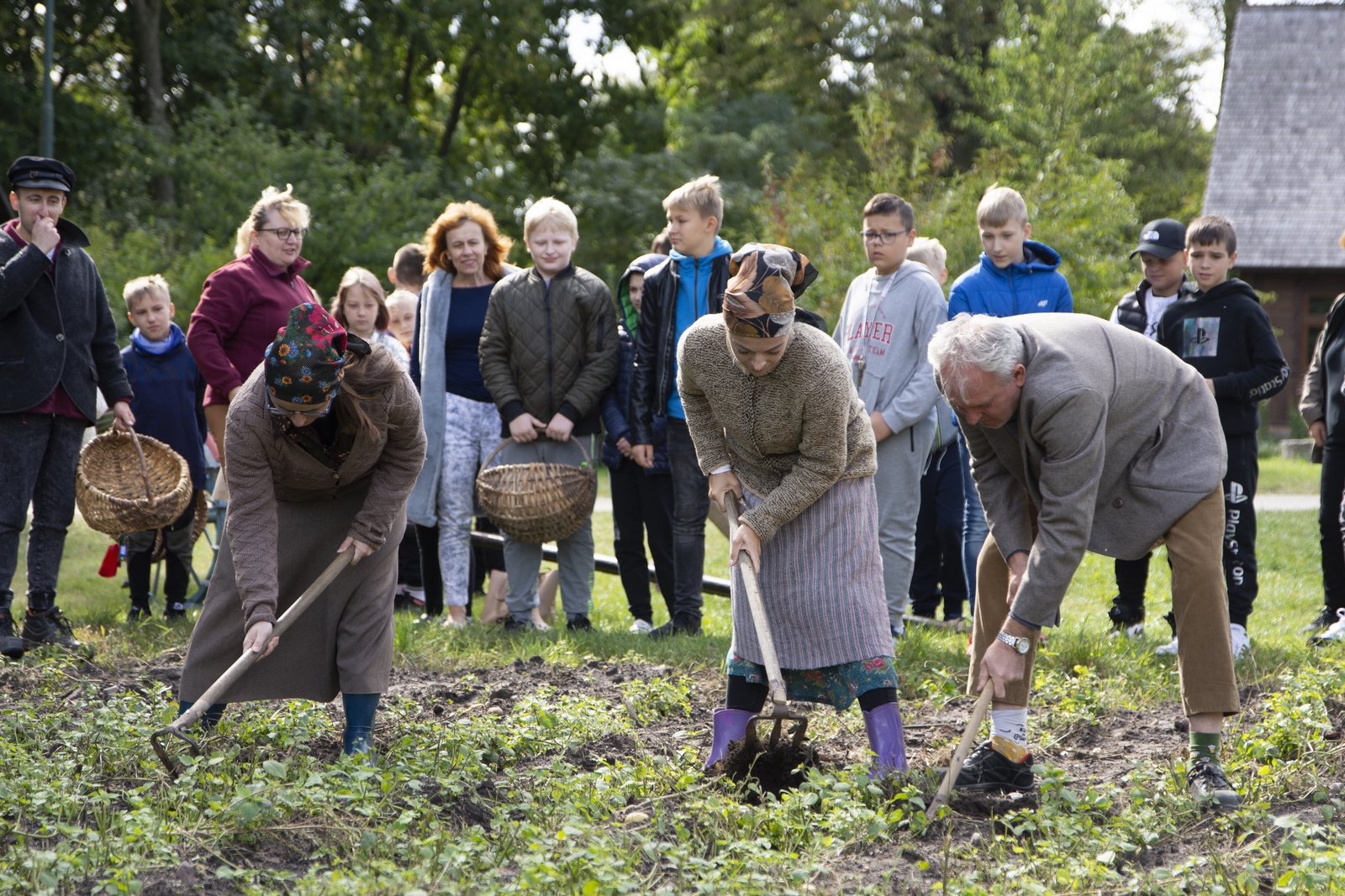 11 września na terenie skansenu w Ciechanowcu odbyła się impreza folklorystyczna, której celem było popularyzowanie bogactwa podlaskiej kultury ludowej. Każdy kto pojawił się tego dnia na naszym polu pod wiatrakiem, mógł obejrzeć liczne i ciekawe pokazy takie jak: pracę kowala w zabytkowej kuźni, obróbkę ziarna w żarnie ręcznym i wyrabianie kaszy w stępie, kręcenie snopków na strzechę, wirowanie mleka i wyrób masła w tradycyjnej maselnicy połączone z degustacją, pokaz obróbki lnu, darcie pierza przeznaczonego na poduszki i pierzyny, wypiek chleba w tradycyjnym piecu wraz z degustacją, szatkowanie i kiszenie kapusty, kopanie ziemniaków motykami oraz kopaczką konną - z aktywnym udziałem uczestników festynu, pokaz przygotowania zebranych ziemniaków w parowniku na polu. Widzowie zajadając ciepłe pyry niejednokrotnie z rozrzewnieniem wspominali dawne czasy.