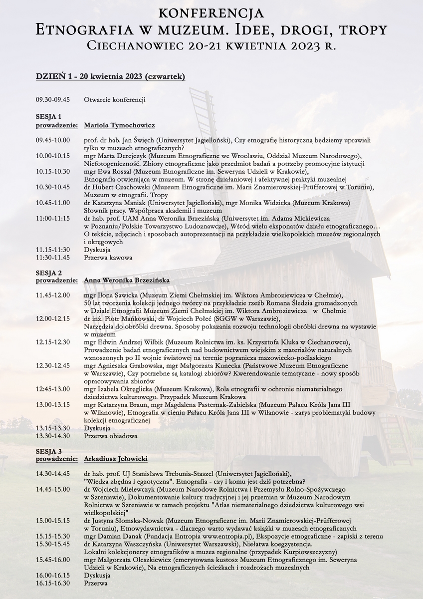 Konferencja etnograficzna "Etnografia w muzeum. Idee, drogi, tropy" - program