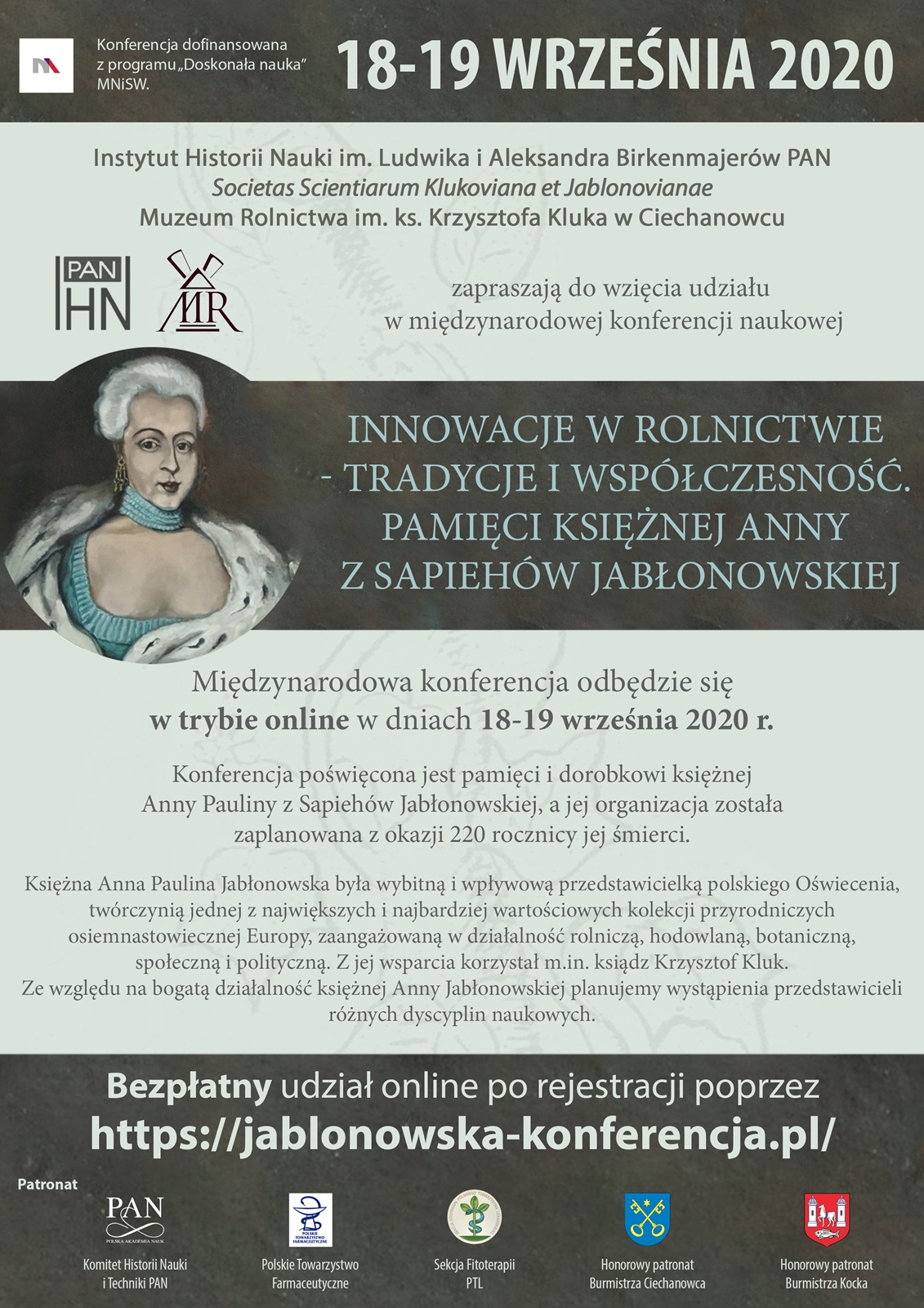 Sie Sind auf: Międzynarodowa konferencja "Innowacje w rolnictwie - tradycje i współczesność. Pamięci Księżnej Anny z Sapiehów Jabłonowskiej"