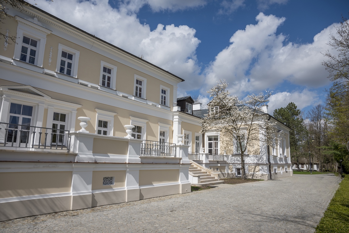Wiosną, kiedy przyroda budzi się do życia, w dawnej siedzibie rodziny Starzeńskich robi się wyjątkowo pięknie. Oczy cieszą wielobarwne kobierce wiosennych kwiatów, zieleniące się korony starych, majestatycznych drzew, malowniczy staw, gdzie można podglądać życie dzikich mieszkańców parku. W części skansenowskiej wyjątkowego uroku nabierają wiejskie ogrody. Za sprawą rozkwieconych rabatek i zamieszkujących zagrody zwierząt skansen już teraz tętni życiem.