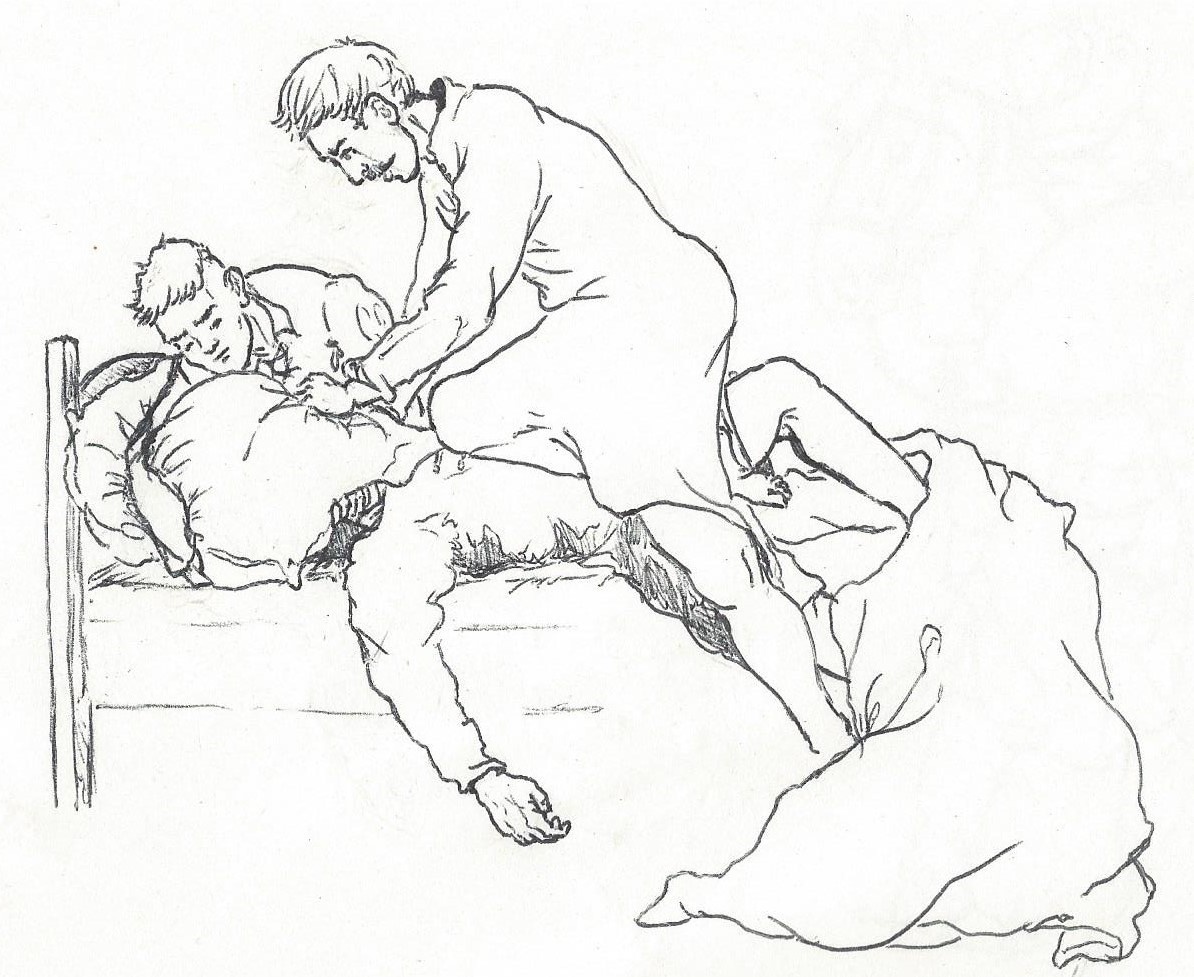 Rys. Śmierć Macieja Białego – rys. E. Kotkowicz.