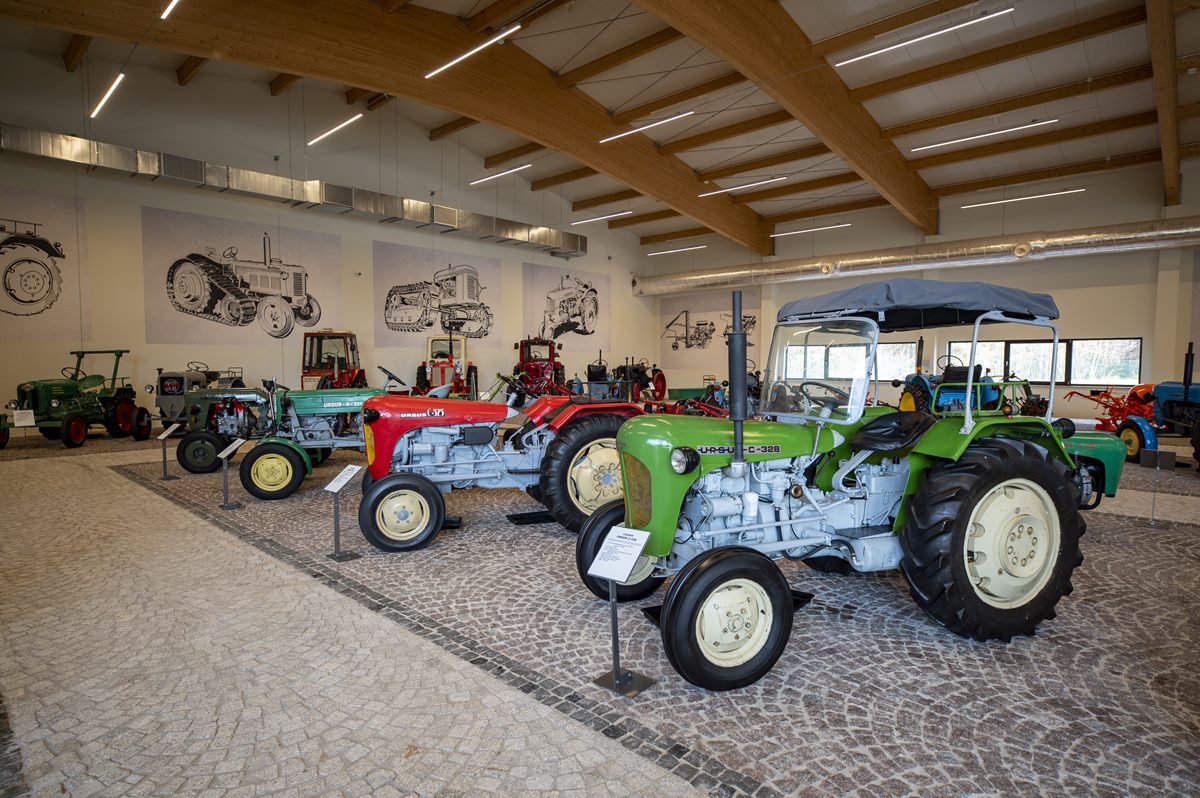 Największa w Polsce muzealna kolekcja 65 sprawnych technicznie ciągników, wyprodukowanych w Polsce i zagranicą w latach 1917-1990. W kolekcji znajdują się najstarsze zachowane egzemplarze ciągników z terenu naszego kraju, np. Titan 10-20 z 1917 r., Fordson F z 1918 r., różne modele przedwojennych ciągników Lanz. Wśród polskich ciągników, m. in. kilka egzemplarzy kultowego Ursusa C-45, trzykołowy ciągnik Jaromka z 1968 r. i również trzykołowy Ursus C 308 z 1959 r.