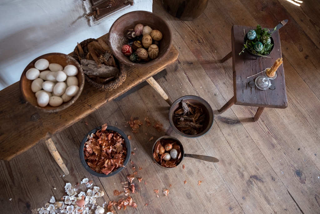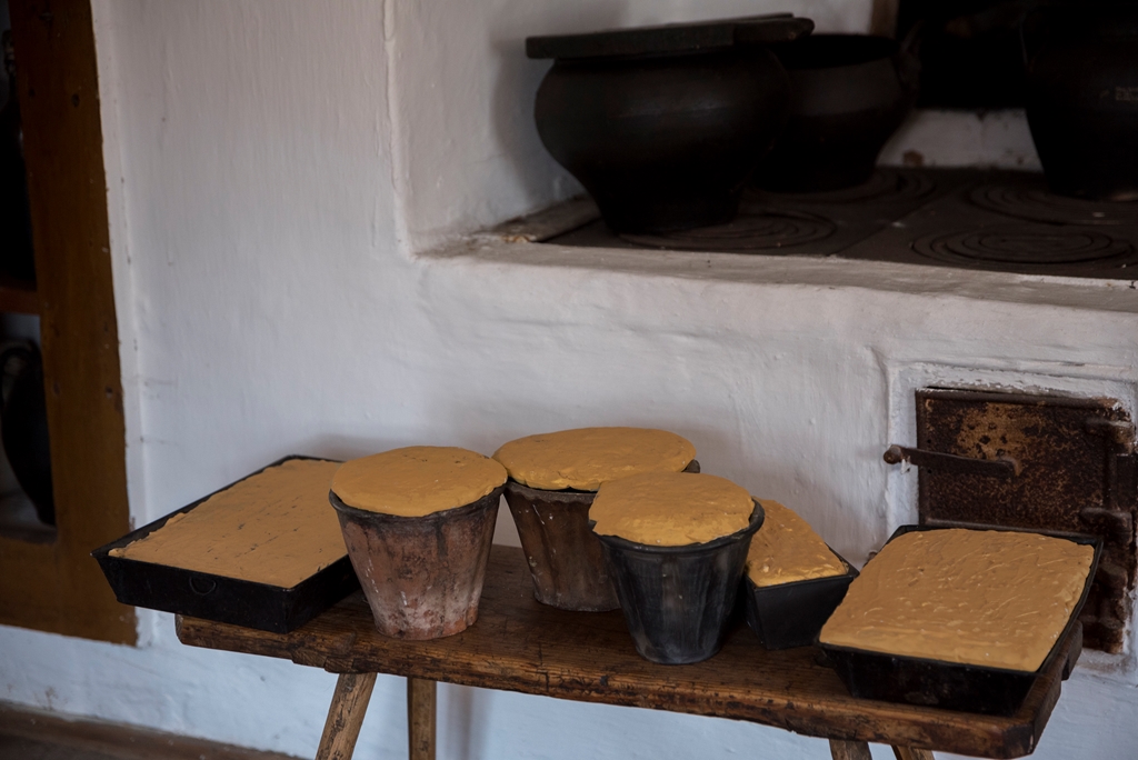 Gospodynie przygotowywały wypieki: palono w piecu chlebowym, do którego wkładano formy gliniane wypełnione ciastem z rodzynkami – pieczono baby wielkanocne, które następnie dekorowano lukrem. Słodkie pięknie zdobione mazurki, pierogi z makiem (tak nazywano ciasto drożdżowe nadziewane makiem i rodzynkami), rozłożone na ławie w komorze oczekiwały na podanie na stół podczas świątecznych posiłków.