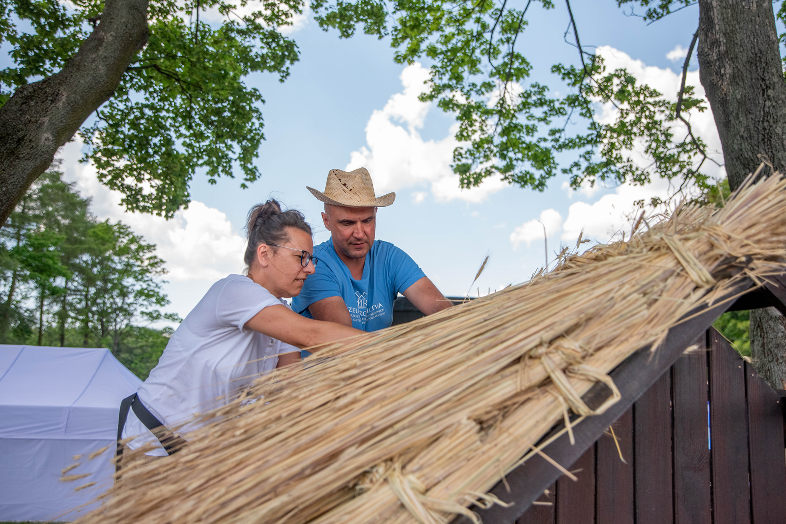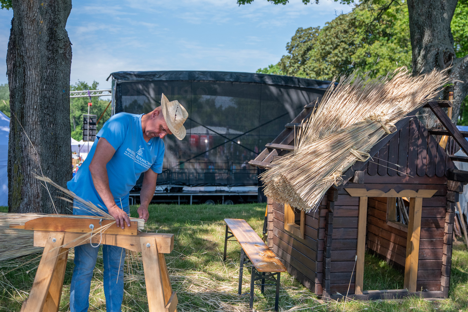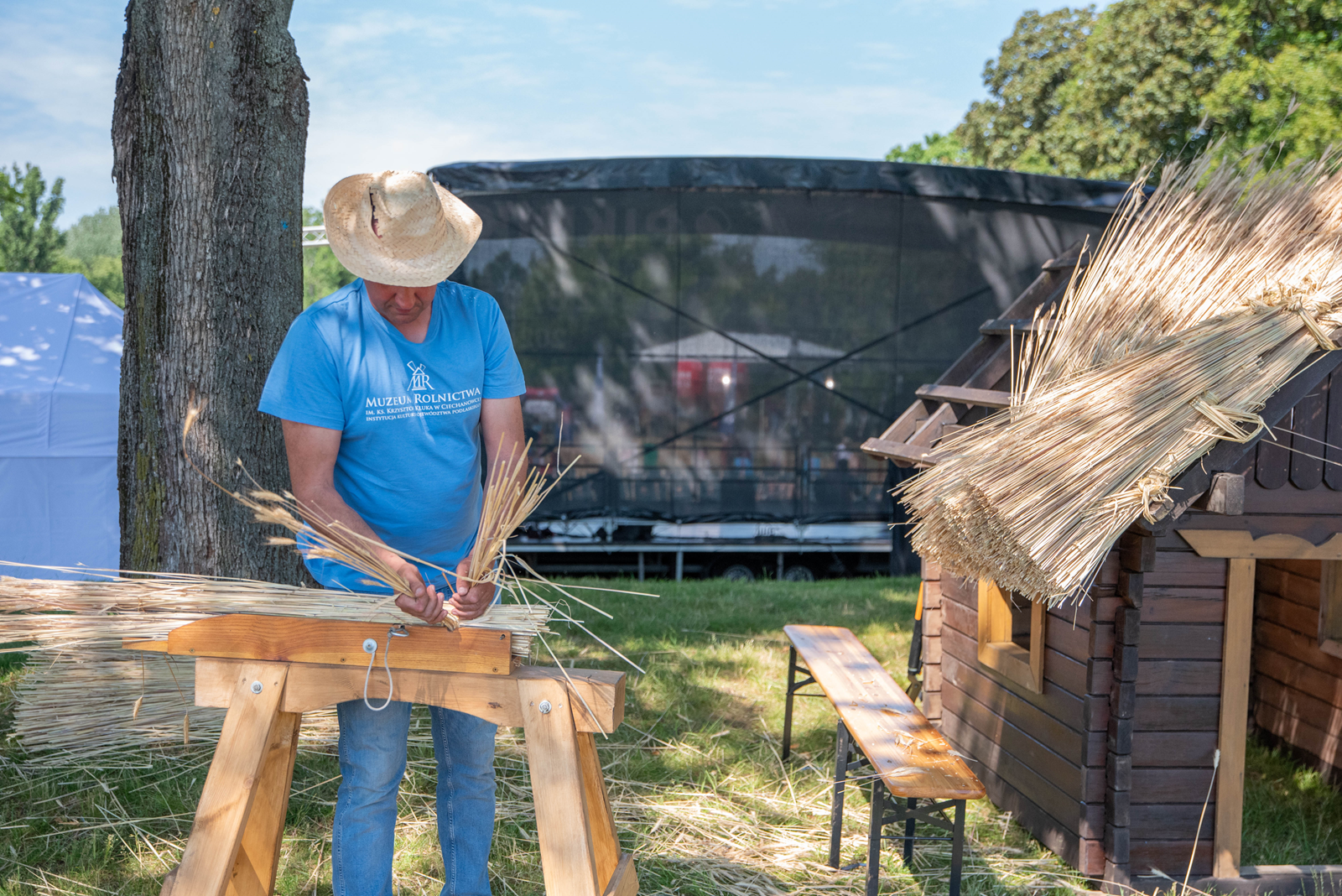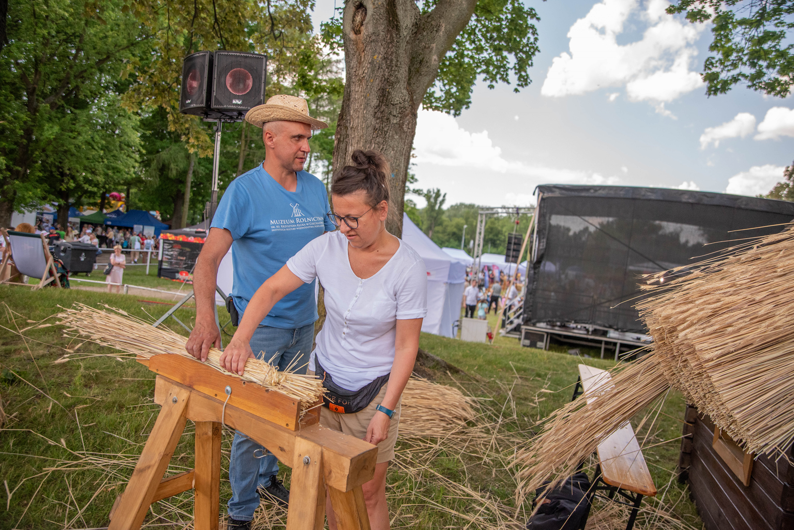 Dodatkowo na naszych stoiskach odbywały się warsztaty, których uczestnicy mogli spróbować sił w układaniu strzechy lub własnoręcznym wyrobie świec woskowych.