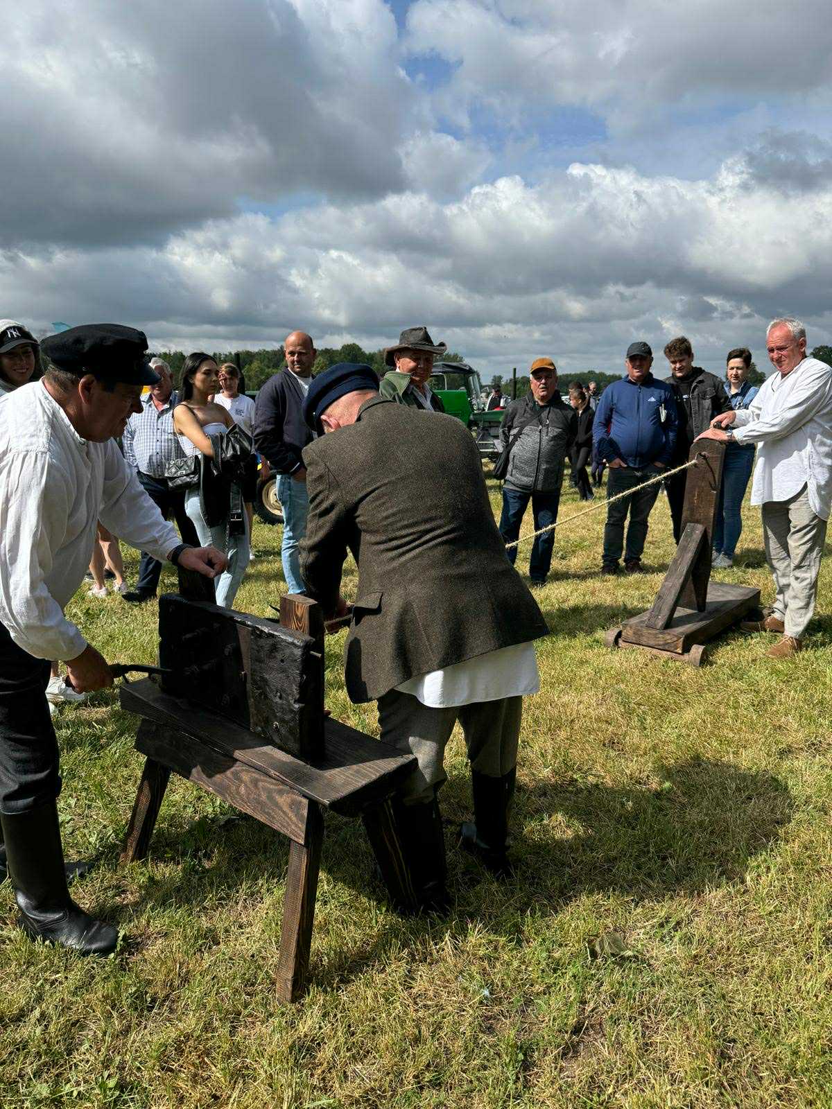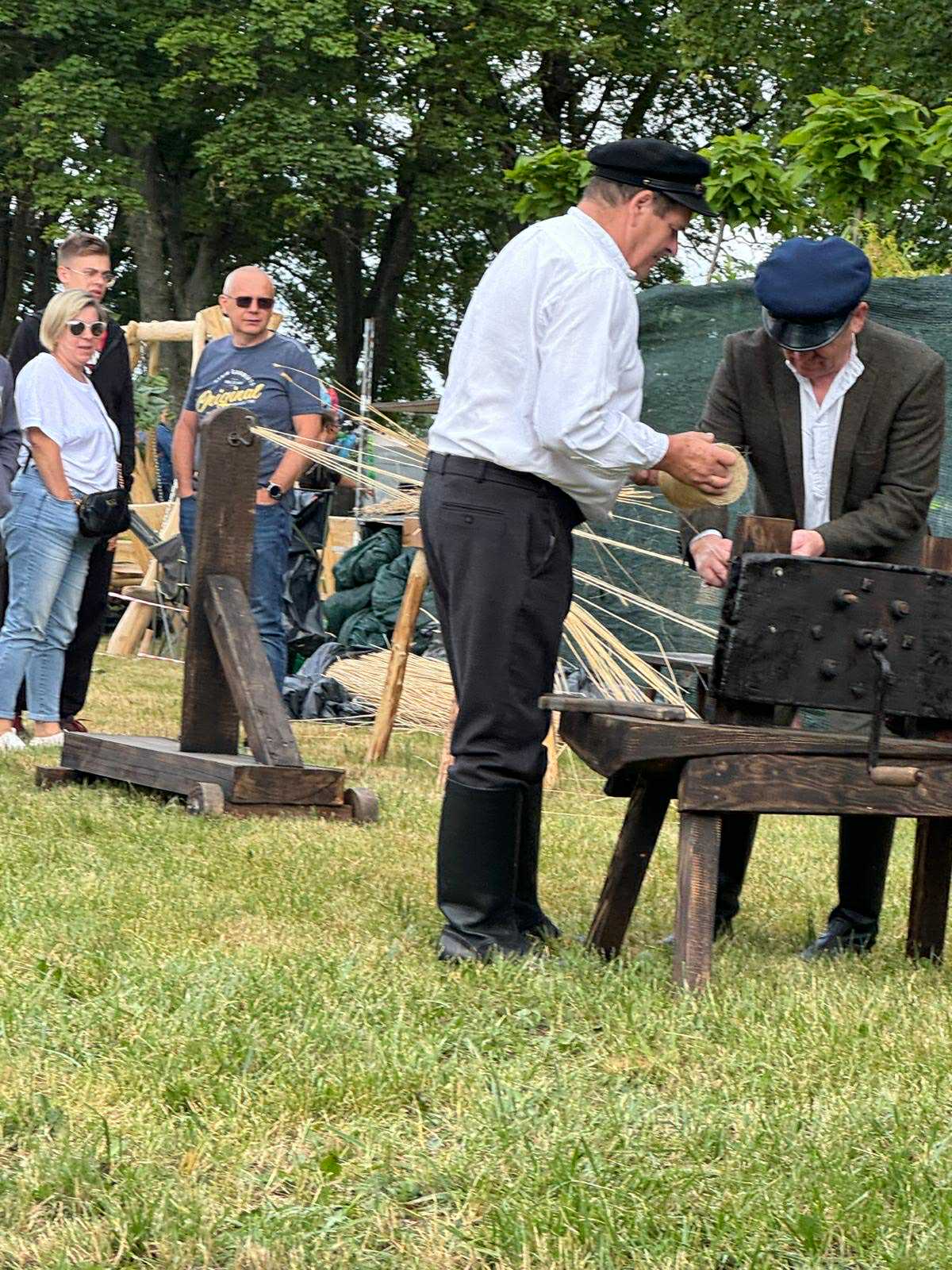 W miniony weekend (28-29.06.) na zaproszenie Dyrekcji Podlaskiego Ośrodka Doradztwa Rolniczego w Szepietowie braliśmy udział w XXXI Regionalnej Wystawie Zwierząt Hodowlanych i Dni z Doradztwem Rolniczym w PODR Szepietowo. Na naszym stoisku zaprezentowaliśmy 7 zabytkowych ciągników i 2 silniki stacjonarne, które zwiedzający mogli obejrzeć w ruchu. Najstarszy z prezentowanych ciągników w tym roku obchodzi swe 100. urodziny. Jest to ciągówka Lanz HL 12 Verkehrsbulldog. Nie mogło oczywiście zabraknąć naszych polskich Ursusów, np. Ursusa C-325 czy Ursusa C-328. Spośród silników zwiedzający mogli zobaczyć polski silnik stacjonarny S-231 z 1973 r. oraz czechosłowacki silnik Slavia D 5 z połowy lat 50. XX w. Odwiedzających nasze stoisko częstowaliśmy chlebem razowym ze smalcem i ogórkiem małosolnym. A jako napój serwowaliśmy regionalne piwo jałowcowe, które od 2023 r. jest wpisane na listę produktów tradycyjnych Ministra Rolnictwa i Rozwoju Wsi. Przygotowane przez nas interaktywne pokazy etnograficzne (obróbka ziarna w żarnach na mąkę i w stępie na kaszę, kręcenie snopków i słomianych warkoczy, wyplatanie koszyków, wyplatanie lin i sznurów) również znalazły uznanie w oczach odwiedzających. Starsi z nostalgią wspominali swoje dzieciństwo, a młodsi mieli niepowtarzalną okazję doświadczenia czegoś dla nich nowego. Oczywiście nie mogło zabraknąć na naszym stoisku wydawnictw muzealnych.