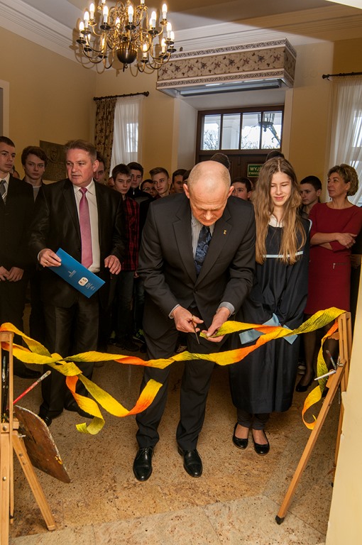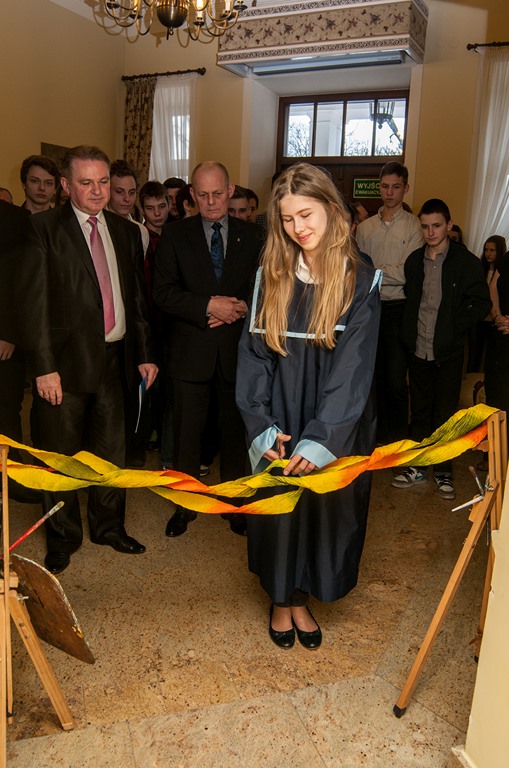 Symbolicznego otwarcia wystawy, poprzez przecięcie wstęgi, dokonali: Leszek Gruchała - wicestarosta wysokomazowiecki, Eugeniusz Święcki - dyrektor Zespołu Szkół Ogólnokształcących i Zawodowych w Ciechanowcu oraz Zuzanna Ilczuk - uczennica klasy I Ogólnokształcącej Szkoły Sztuk Pięknych w Ciechanowcu.