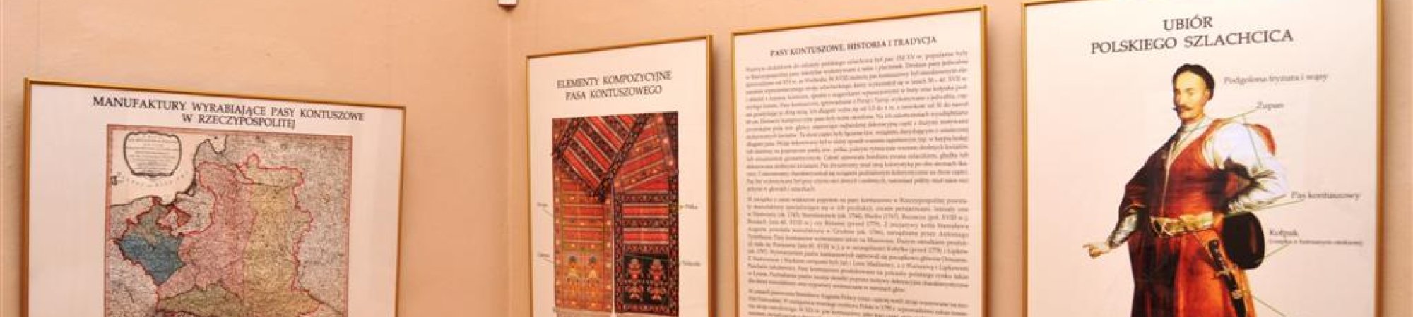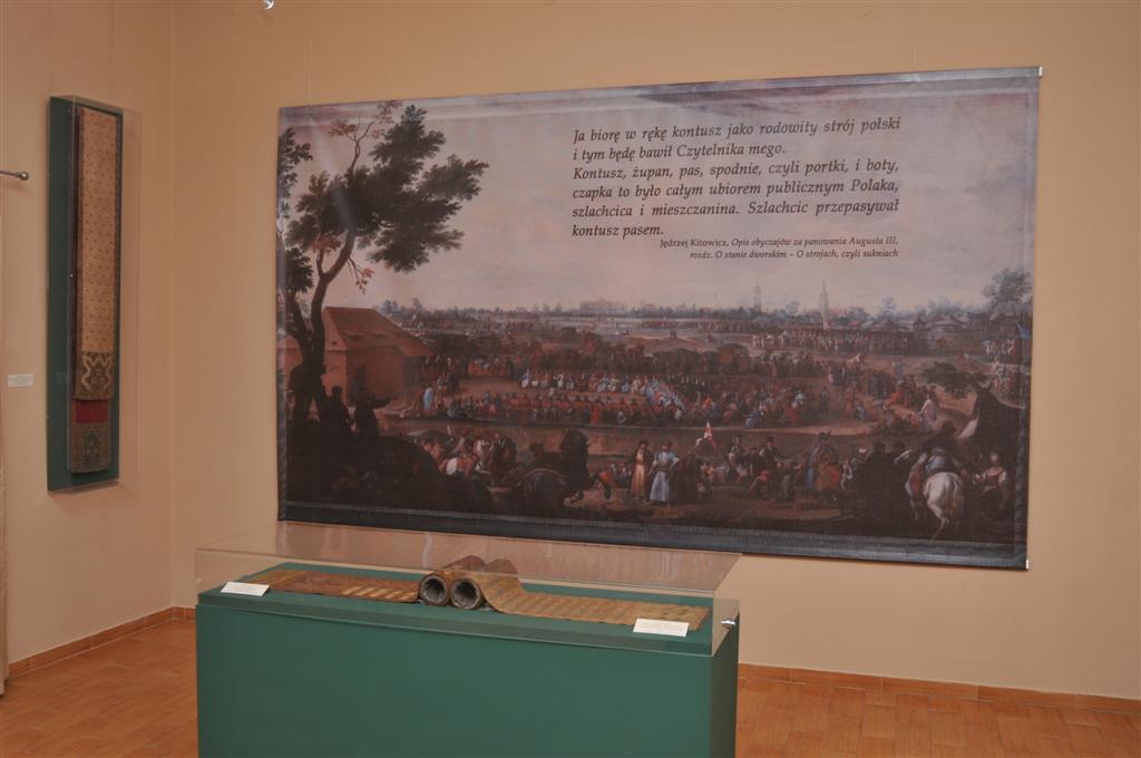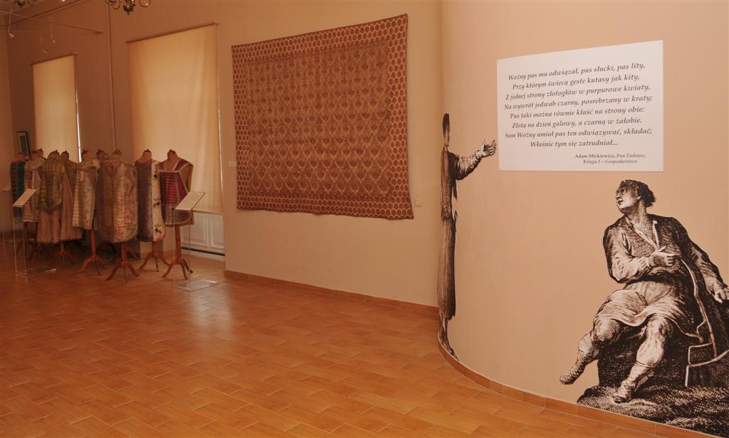 Na wystawie prezentowane są cenne pasy kontuszowe z kolekcji Zamku Królewskiego w Warszawie, Fundacji Zbiorów im. Ciechanowieckich oraz Fundacji Teresy Sahakian. Ekspozycję uzupełniają wizerunki malarskie i graficzne osób ubranych w pas kontuszowy lub związanych z manufakturami je wytwarzającymi. W części obejmującej wieki XIX i XX pokazano niezwykle interesujące makaty buczackie i fotografię odwołującą się do modnego wówczas portretowania się w stroju narodowym. Zobaczymy tutaj również unikalny zbiór ornatów wykonanych z użyciem pasów kontuszowych, pochodzących z kolekcji Muzeum Diecezjalnego im. Jana Pawła II w Drohiczynie.