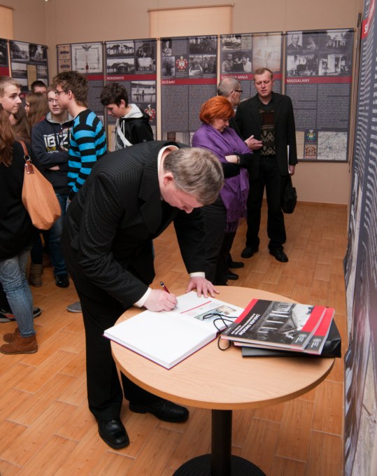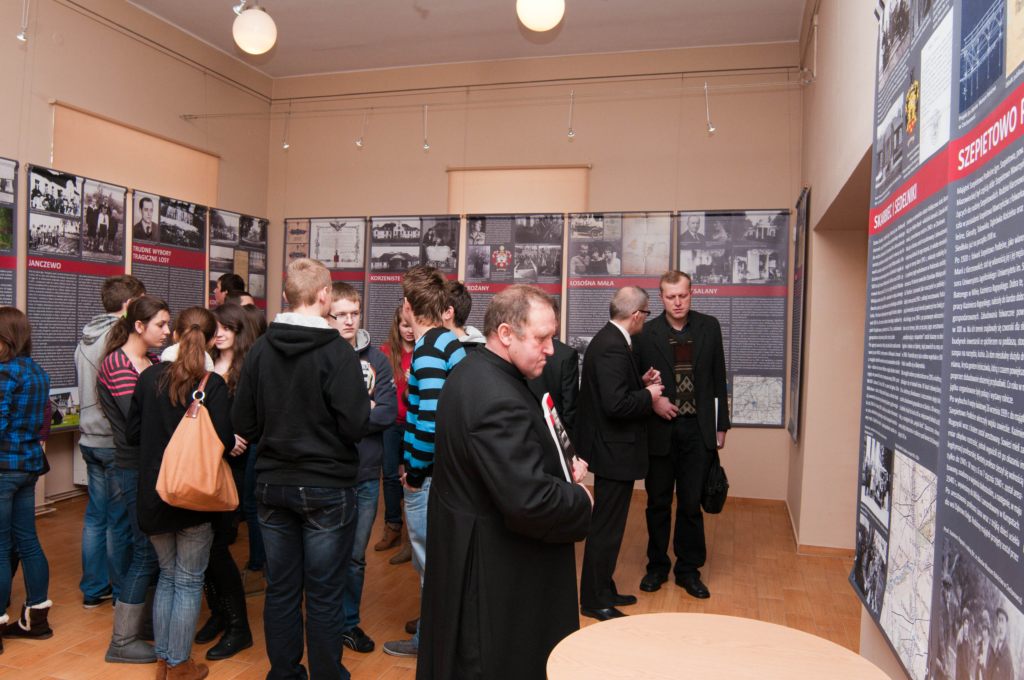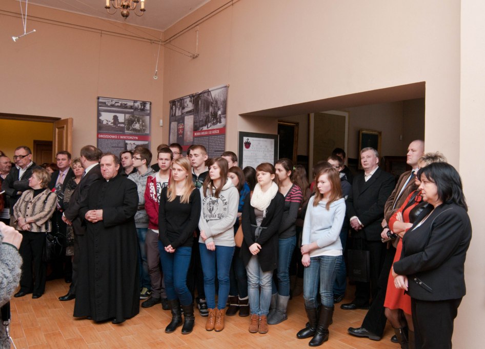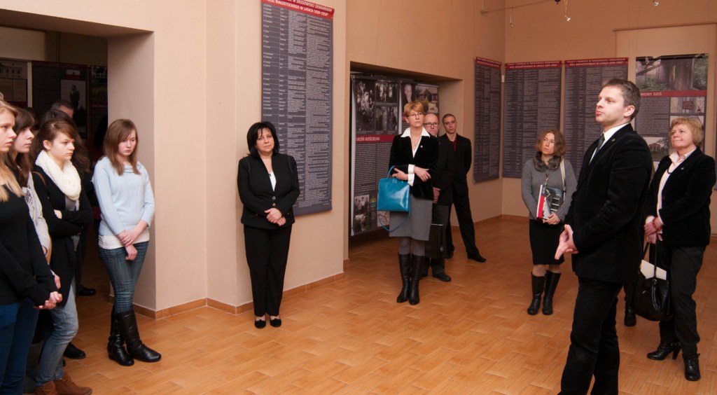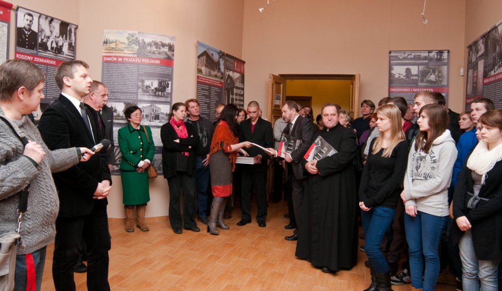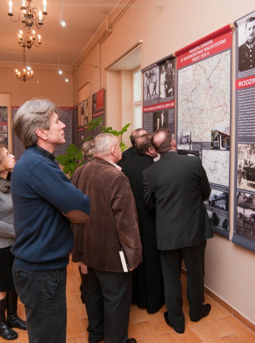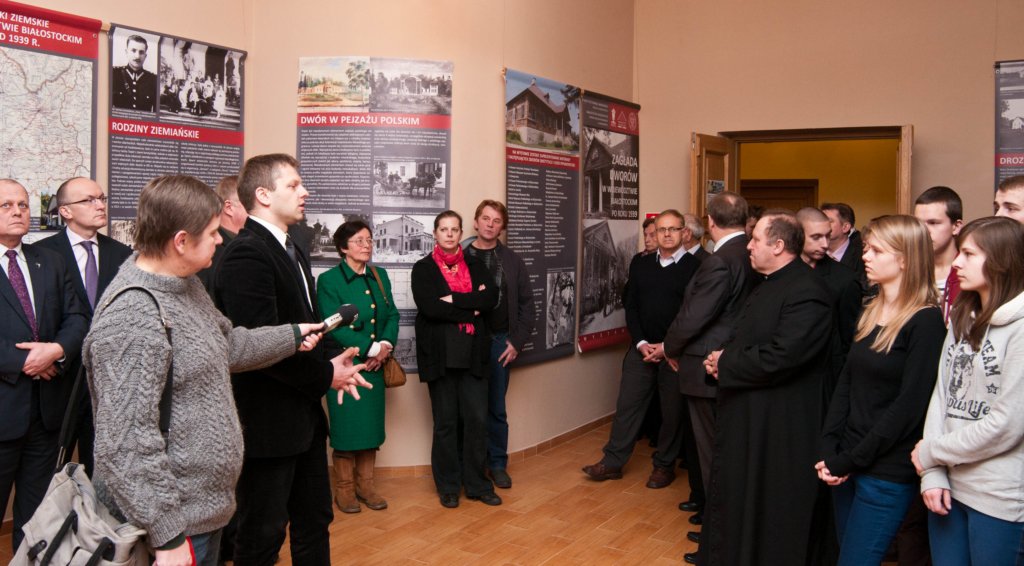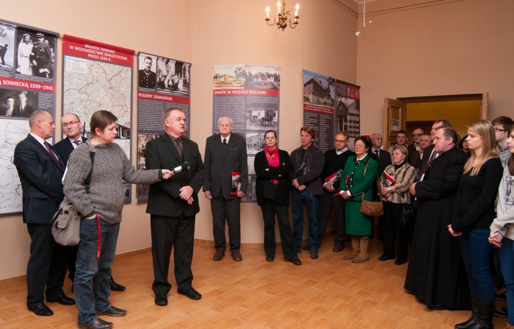 Na wernisażu wystawy obecne było kierownictwo Instytutu Pamięci Narodowej - pani Agnieszka Rudzińska, wiceprezes IPN, dr Barbara Bojaryn-Kazberuk - dyrektor Oddziału IPN w Białymstoku, dr Waldemar Wilczewski - naczelnik Oddziałowego Biura Edukacji Publicznej IPN, a także komisarz wystawy - dr Ewa Rogalewska. Po ekspozycji znakomicie oprowadził zwiedzających dr Łukasz Lubicz-Łapinski. W "kąciku regionalnym", poświęconym dobrom Ciechanowiec-Nowodwory, które zniszczone w latach II wojny światowej cudem powróciły do dawnej świetności, głos zabrał mgr Norbert Tomaszewski. Przybliżył on zwiedzającym powojenne dzieje zespołu pałacowo-parkowego w Ciechanowcu-Nowodworach, zwrócił uwagę na nieliczne zachowane z przedwojennego pałacu artefakty, które na przekór burzliwym wydarzeniom zachowały się do dnia dzisiejszego.