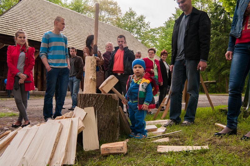 Pokazy obróbki drewna prowadzone przez pracowników Muzeum Rolnictwa i Nadleśnictwa Rudka, tkanie na krosnach, praca na żarnach i stępie, wyrób kwiatów z bibuły, czy zdobienie jaj wielkanocnych - to tylko niektóre z atrakcji serwowanych w skansenie. Dla osób głodnych nie tylko wrażeń estetycznych interesującą propozycją były placki ziemniaczane przygotowywane na oczach turystów i zarazem konsumentów. Rywalizowały one skutecznie chociażby z "tatarskim jadłem", które bardzo smaczne ze swojej natury, przegrywało ze swojskością i prostotą tej lokalnej potrawy.