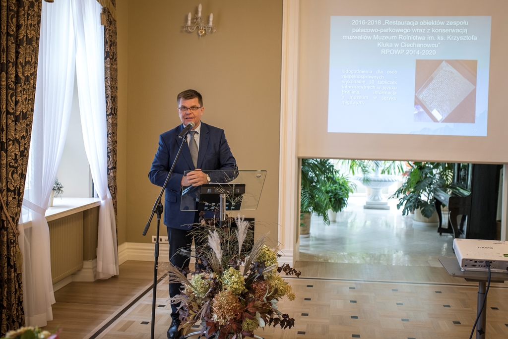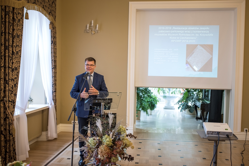 Podsumowanie i prezentacja projektu "Restauracja obiektów zespołu pałacowo-parkowego wraz z konserwacją muzealiów Muzeum Rolnictwa im. ks. Krzysztofa Kluka w Ciechanowcu"