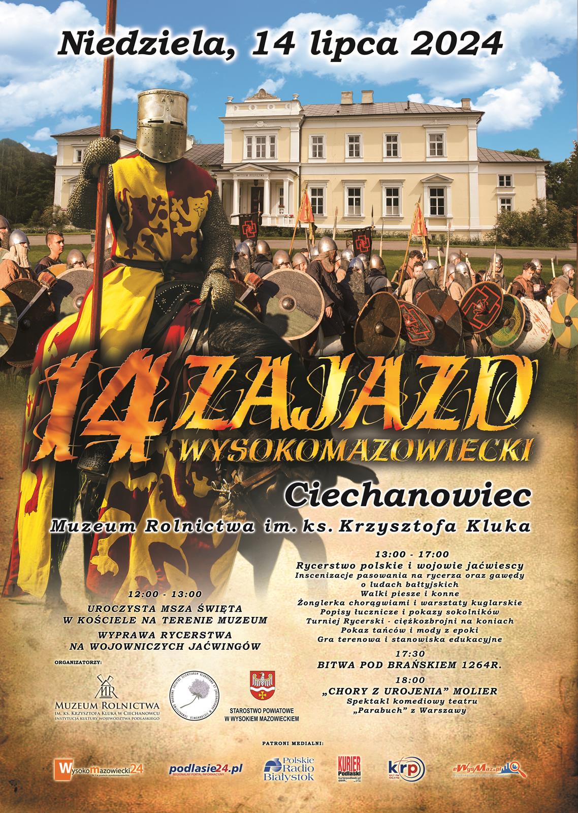 W niedzielę 14 lipca 2024 r. od. 12.00 do. 20.00 w towarzystwie rycerzy, koni i szczęku żelaza przeniesiemy się do czasów średniowiecznych. Nie może Was zabraknąć!
