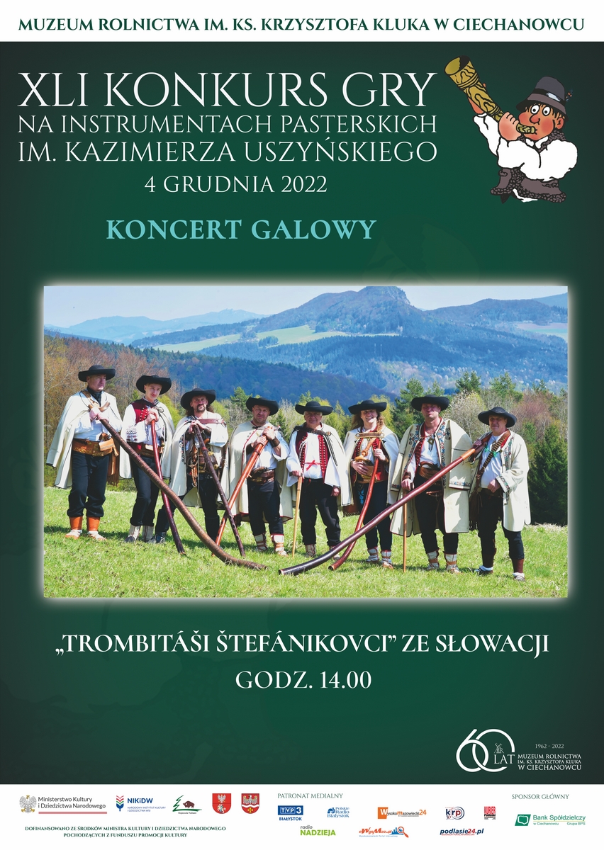 W niedzielę 4 grudnia o godzinie 14:00 zapraszamy na Koncert Galowy Zespołu „Trombitáši Štefánikovci” ze Słowacji, który będzie zwieńczeniem drugiego dnia 41. Konkursu Gry na Instrumentach Pasterskich im. Kazimierza Uszyńskiego.