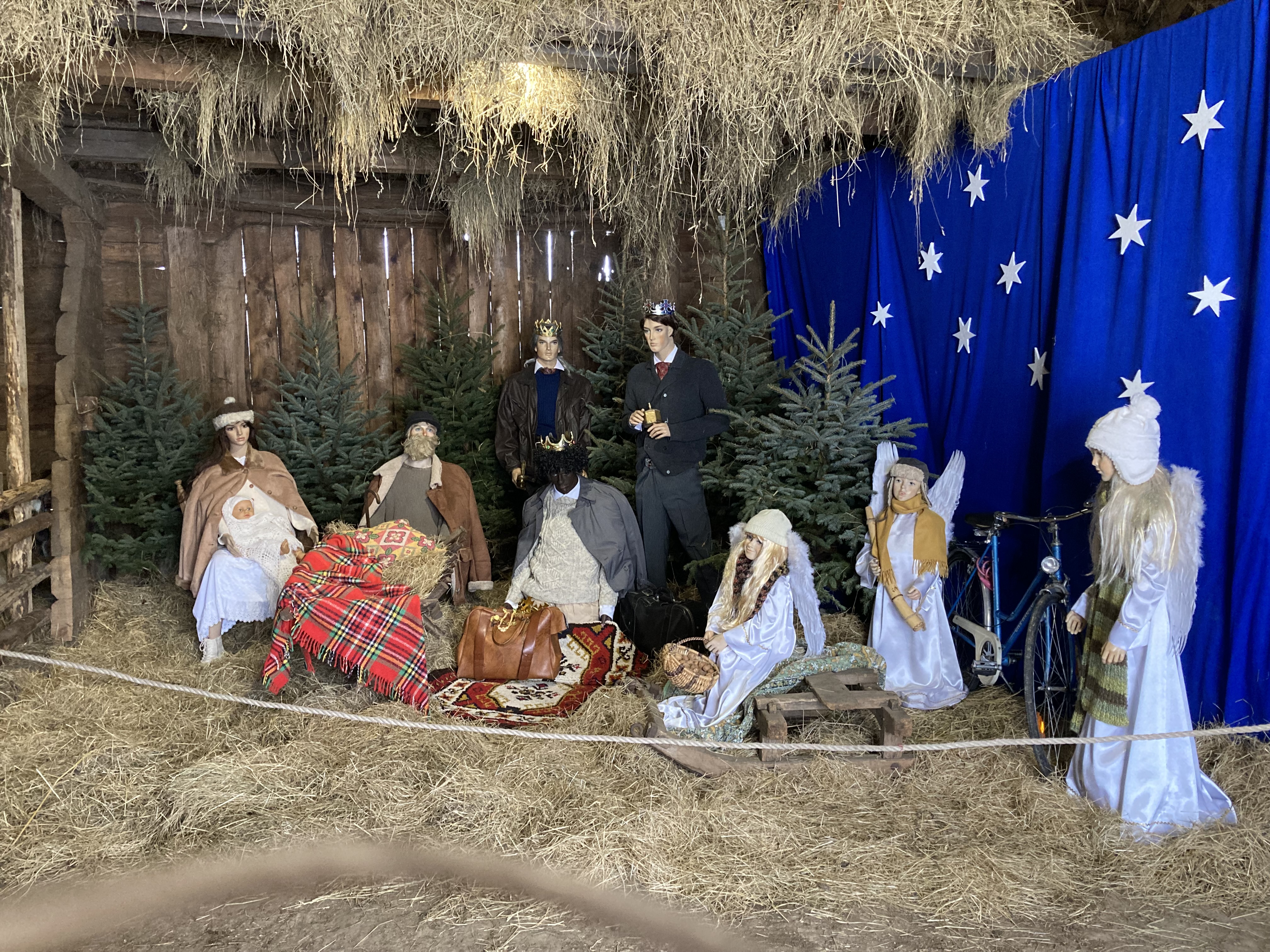 Tegoroczny wygląd szopki uświadamia nam, że każdy z nas jest świadkiem narodzenia Chrystusa. Tradycyjne postaci są ubrane w sposób niekonwencjonalny – Maryja w kożuszku i ciepłej baraniej czapce, tuląca małe dziecko do snu przypomina Matkę Polkę…