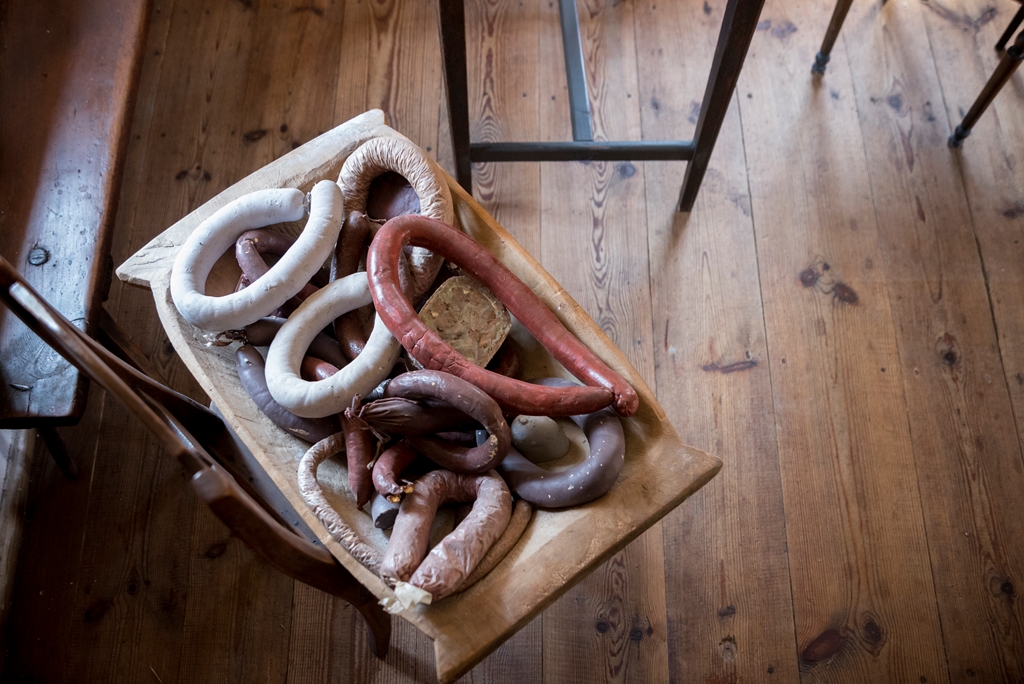 Głowę wieprzową marynuje się zwykle ze szynkami, dodając soli, saletry i korzeni w tym samym stosunku według wagi. Przeciąć głowę z pod spodu, nadrębując kości w ten sposób, aby skóry nie uszkodzić, a głowa dala się rozłożyć na płasko, a po trzytygodniowym nasoleniu, można ją już użyć. Obmyć w kilku wodach, wyjąć ostrożnie wszystkie kości, zaszyć dziury oczne i napełnić ja następującym farszem: Przepuścić przez maszynkę ½ kg mięsa cielęcego i jedną namoczoną i wyciśniętą bułkę. Wątróbkę cielęcą naszpikować słoniną i udusić z cebulą na maśle, uważając, aby się zbyt nie przyrumieniła. Gdy przestygnie utrzeć ją na tarku i przefasować przez sito; potem wymieszać z mięsem, posolić, opieprzyć, dać trochę gałki muszkatołowej, wbić całe cztery jaja i utrzeć w donicy na masę, aby była gładka; w końcu wymieszać z ćwierć kilograma słoniny gotowanej pokrajanej w drobną kostkę i smarować tym farszem rozłożoną głowę. Ugotować cztery do pięć jaj na twardo, które pokrajać w talarki, a w paski kilka większych korniszonów i ułożyć obok siebie na farszu, potem znów posmarować farszem i tak na przemian układać, aż wszystek farsz i dodatki wyjdą. Wtedy złożyć głowę nadając jej pierwotny kształt i włożyć do wysokiego garnka uszami do góry, gotować z włoszczyzną i korzeniami przez 3 – 4 godziny, stosownie czy głowa mniejsza czy większa. Zostawić w smaku niech wystygnie, a jeżeli ma być podana do święconego w całości na stół, oblać ją zastygającym smalcem lub lukrem, a zafarbowanym burakiem i szafranem smalec na różowy i żółty kolor, gdy zastygnie, wycisnąć nim przez papierowy lejek zygzaki na głowie. W pyszczek włożyć kawałek oskrobanego chrzanu, a półmisek ubrać rzeżuchą i rzodkiewką. Potem krajać w plastry i podać majonez lub sos tatarski.